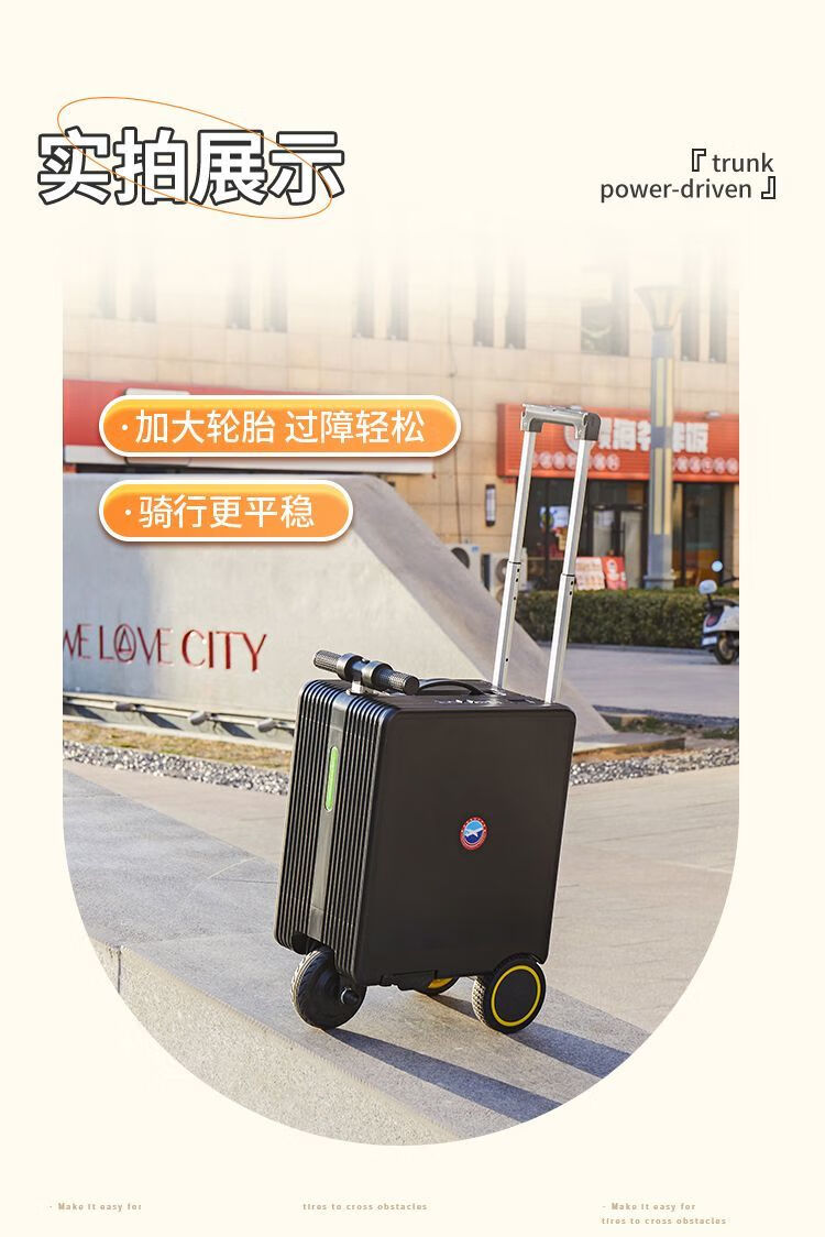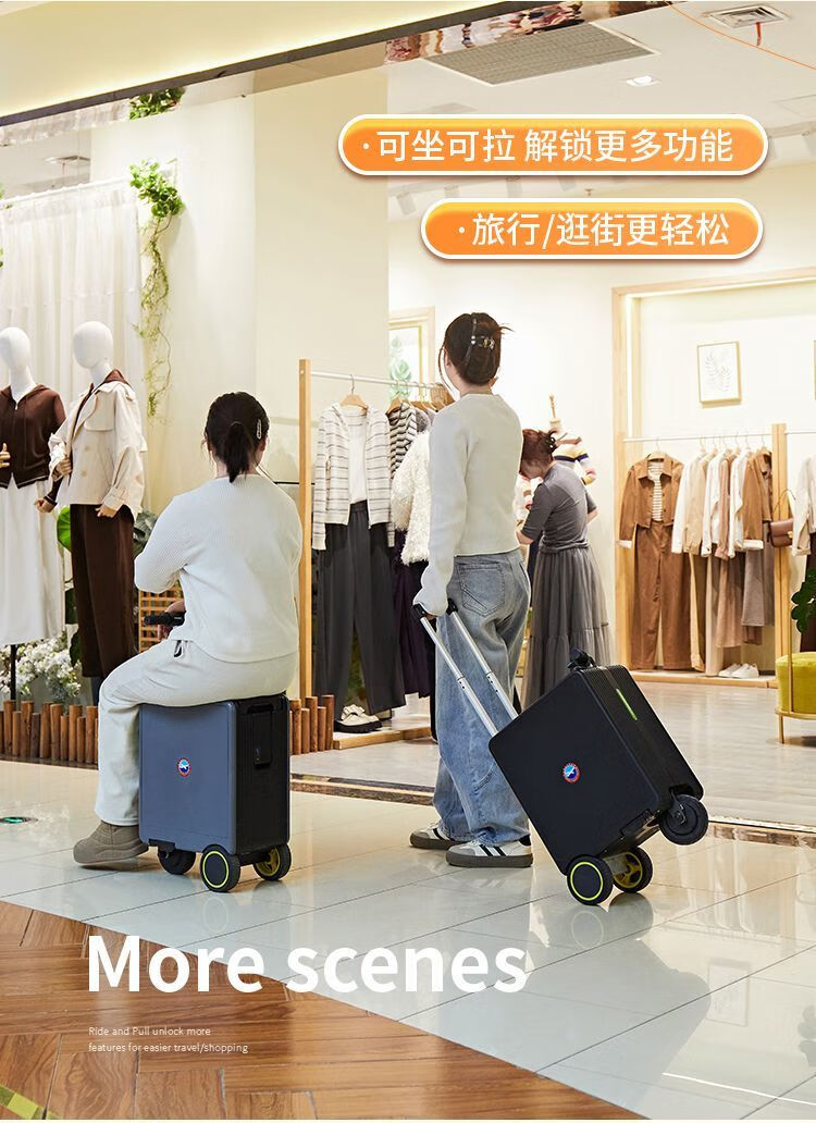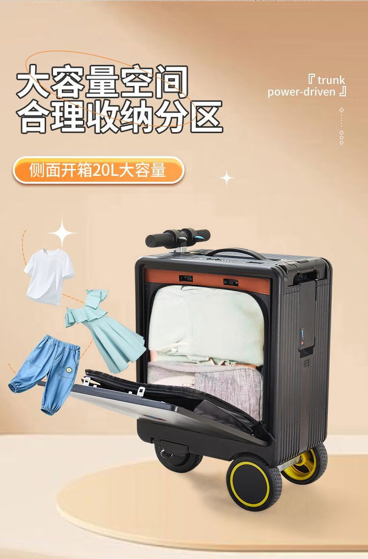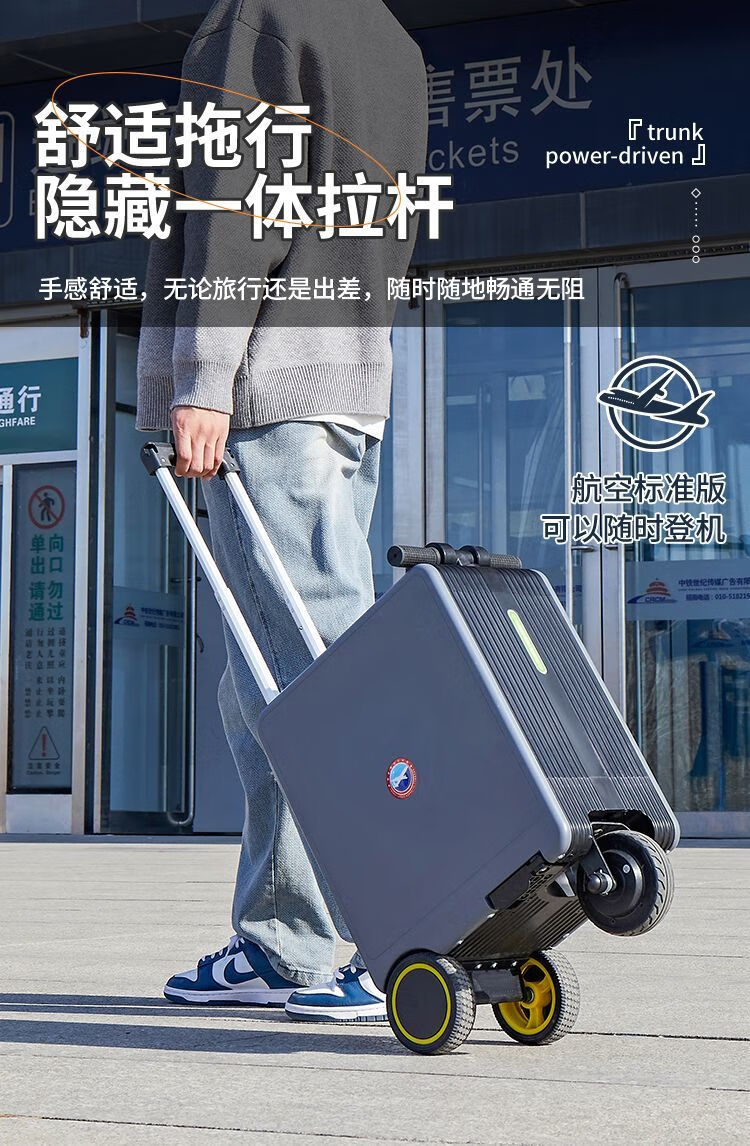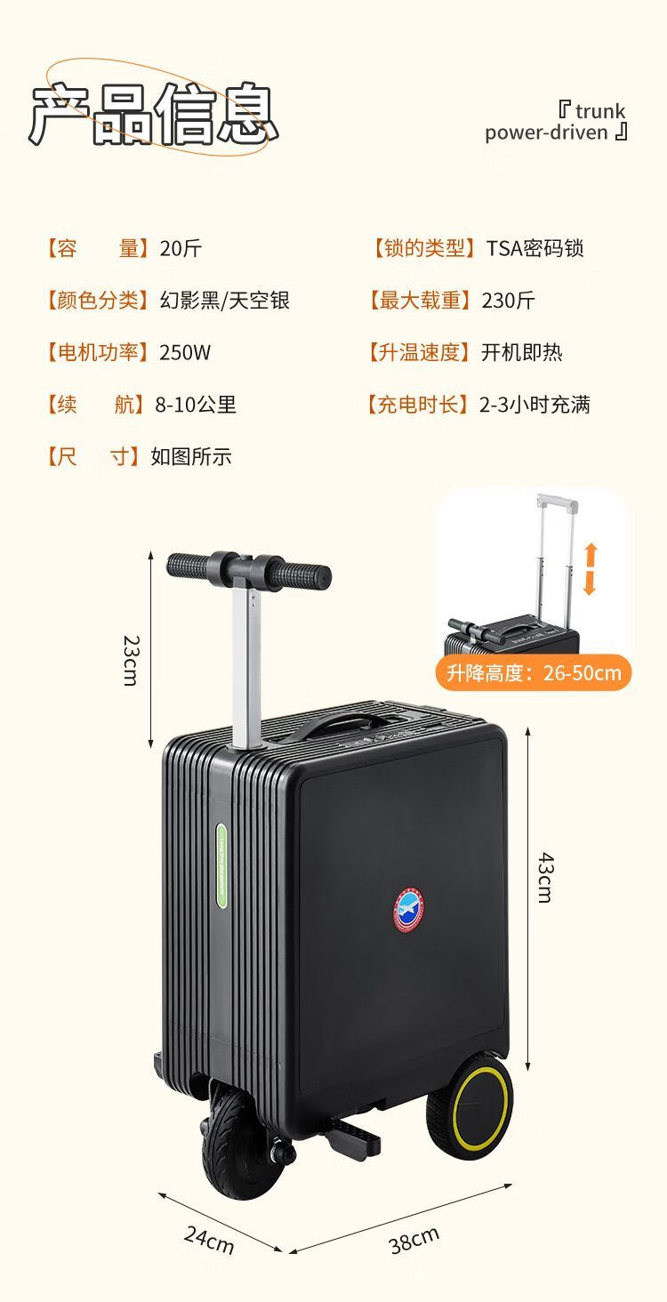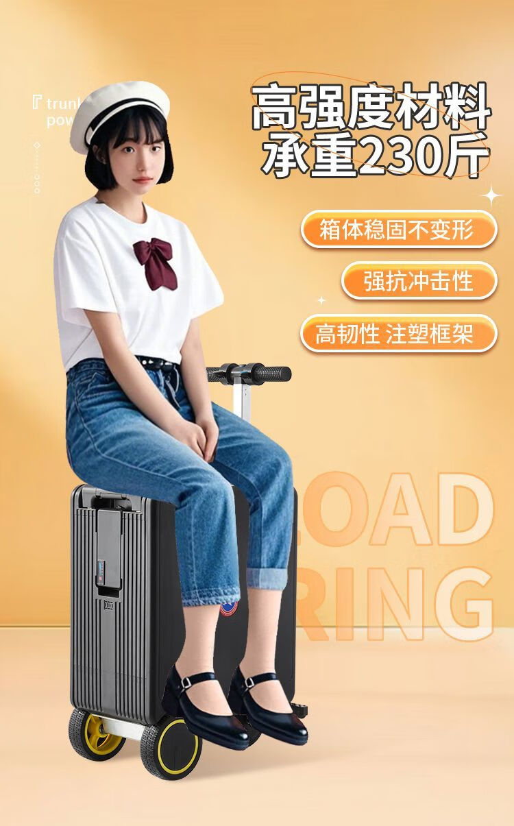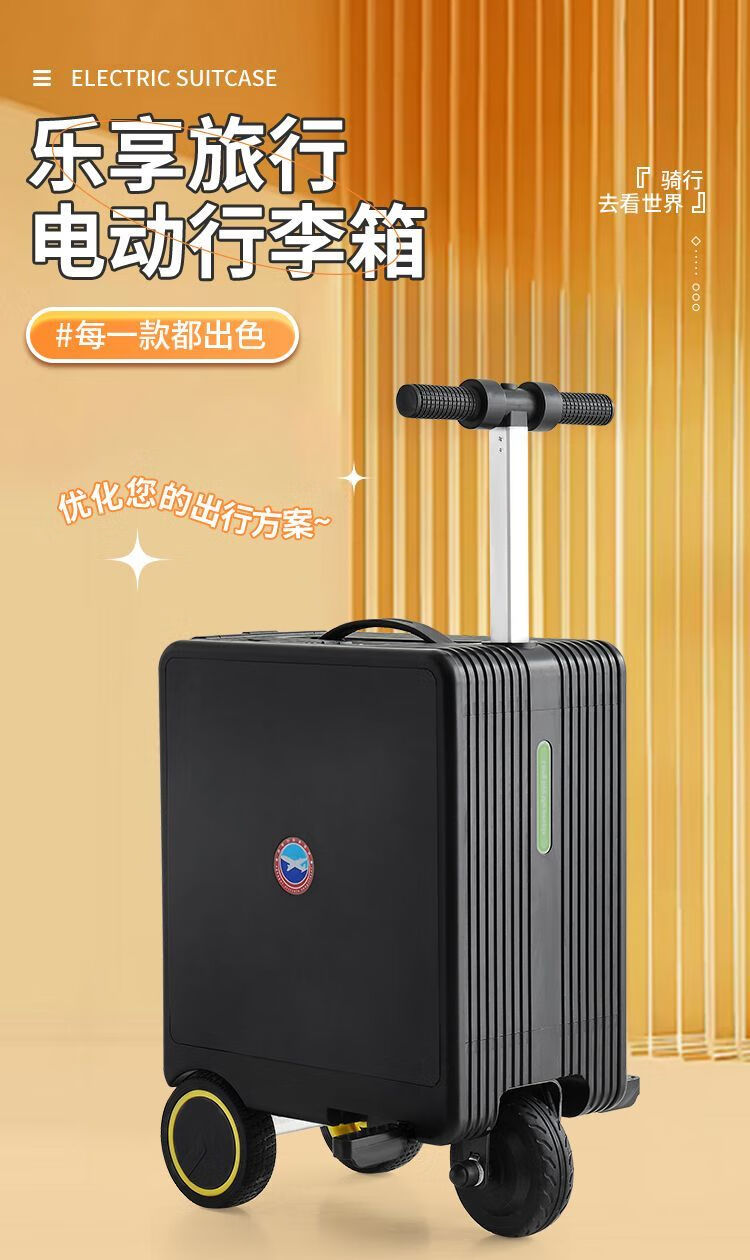 National 3C certified electric suitcase that can be ridden and seated for adults, 20-inch electric trolley suitcase for direct boarding, Phantom Black, upgraded to 24 liters capacity + 10KM battery life, 20-inch boarding + high-speed rail, battery life 8-10 kilometers