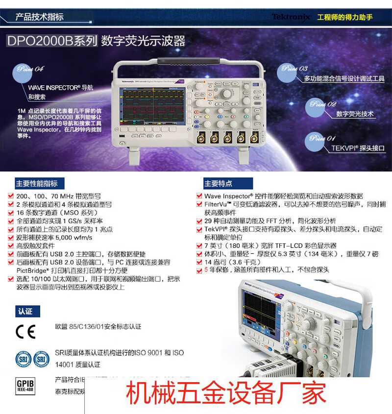 Tektronix DPO2024B 4-channel/200MHz/1GS/s hybrid digital phosphor oscilloscope