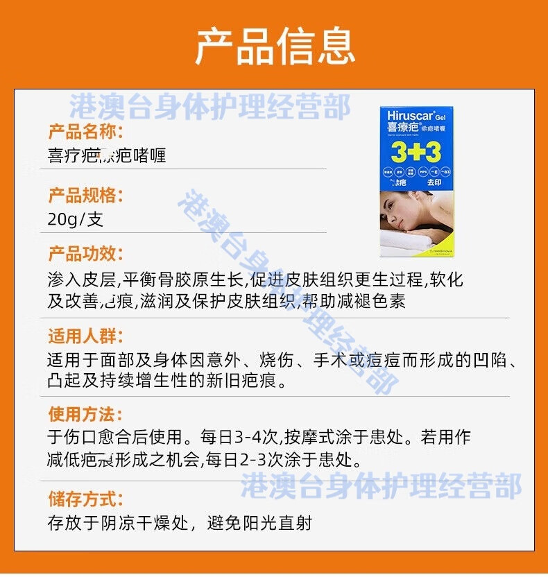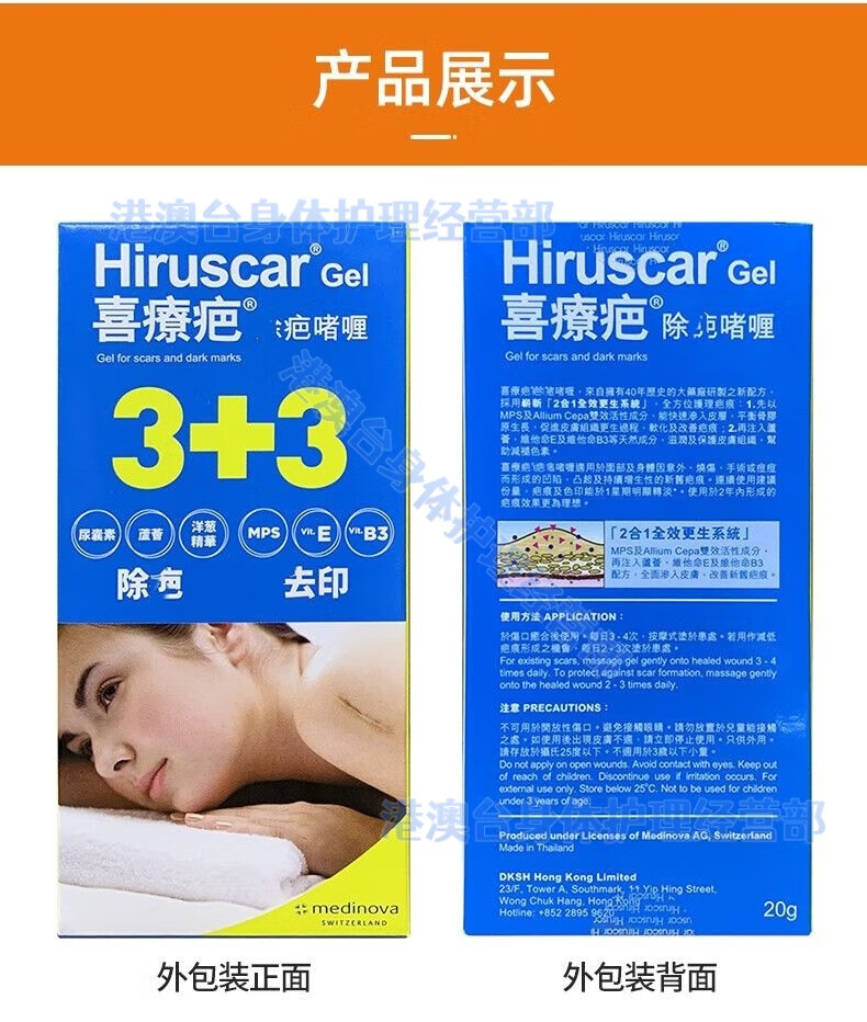 Hiruscar scar cream imported from Hong Kong, Hiruscar scar gel, Swiss Hiruscar scar gel care set, Swiss Hiruscar scar gel, 20g/2 boxes, consolidated pack