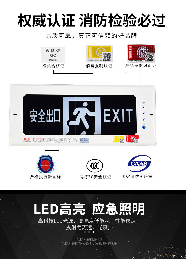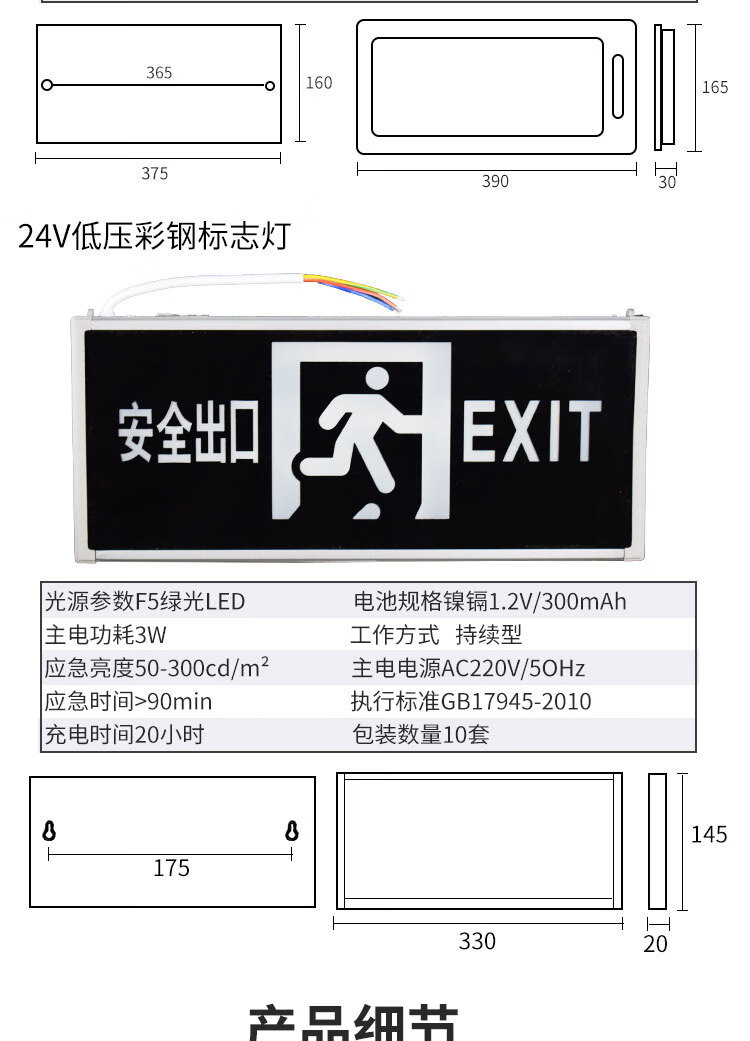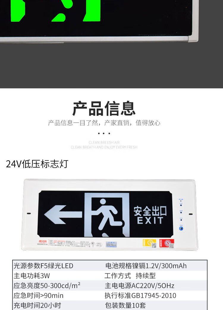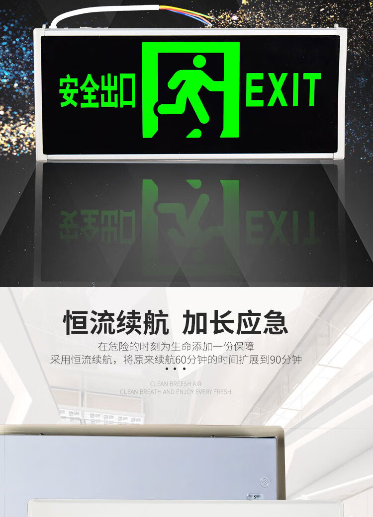 Yue Changsheng new national standard 24V low voltage safety exit 36V fire emergency indicator light concealed embedded sparse low voltage DC24V-36V double-sided safety exit