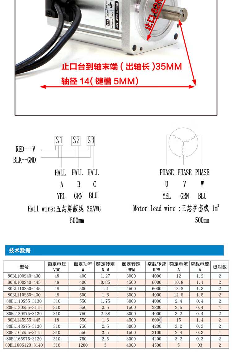 Yue Changsheng era superior 48V DC brushless motor set 250W400W500W driver motor 400W3000 single-turn motor