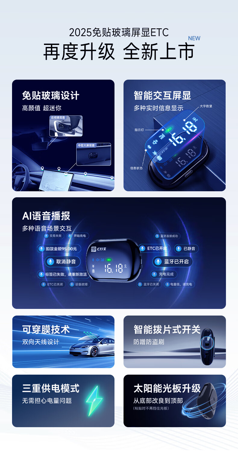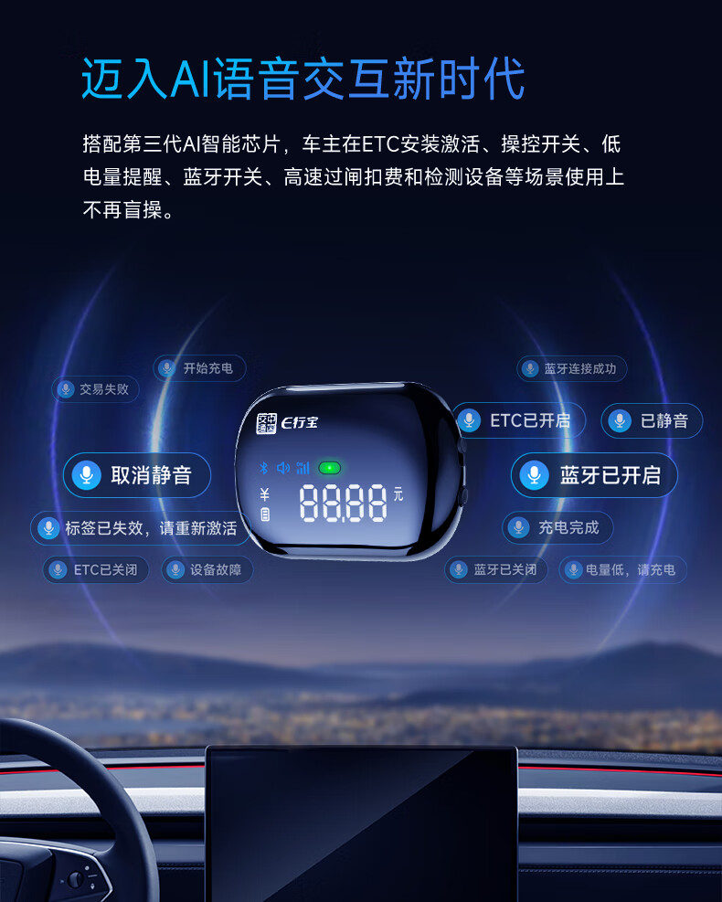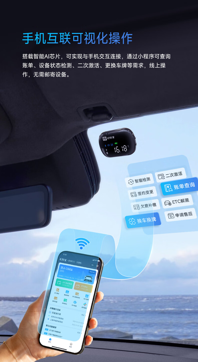 EXingbao 2025 new etc. handle national communication voice screen display card-free ETC hidden etc equipment tolls 95% off AI voice screen display ETC free glass installation