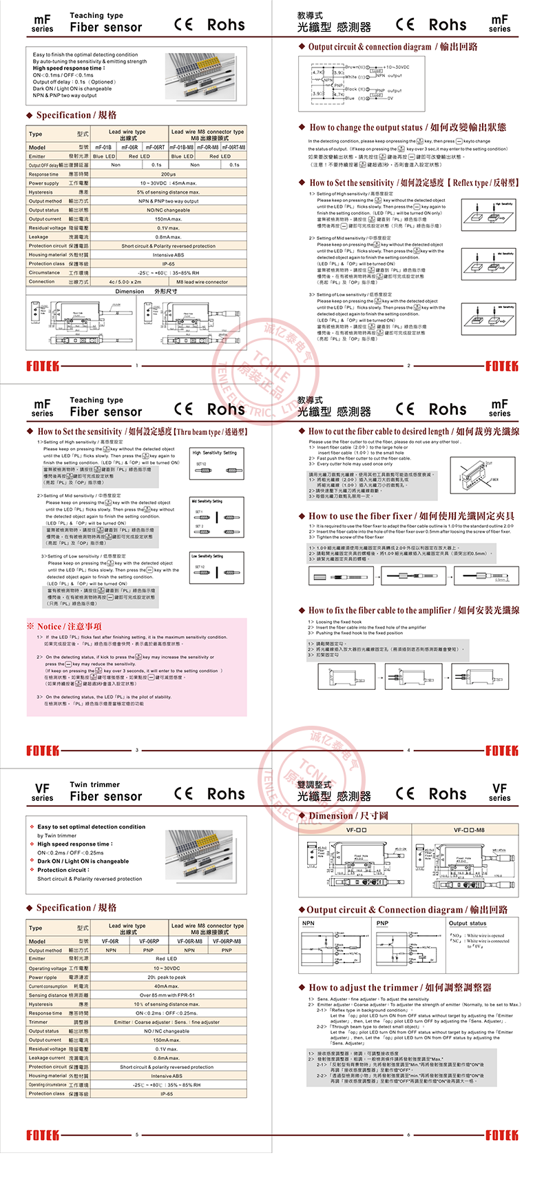 Yue Changsheng FOTEK Yangming NPN fiber amplifier VF-06R induction photoelectric switch sensor MF-06R-M8