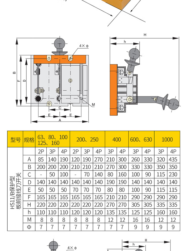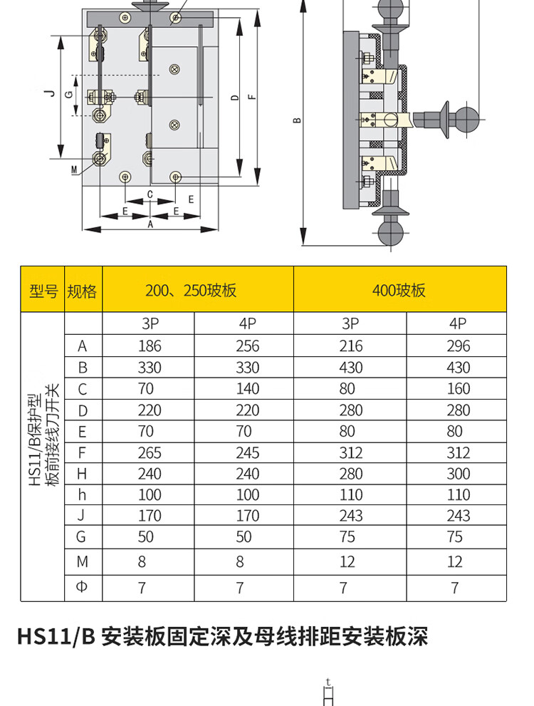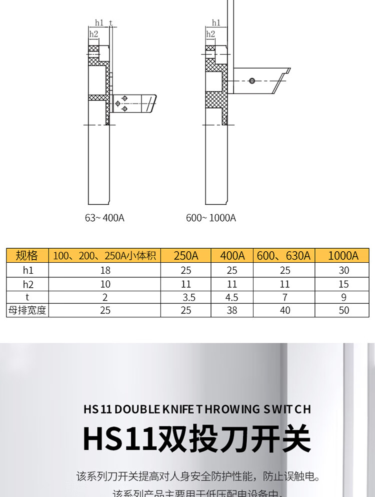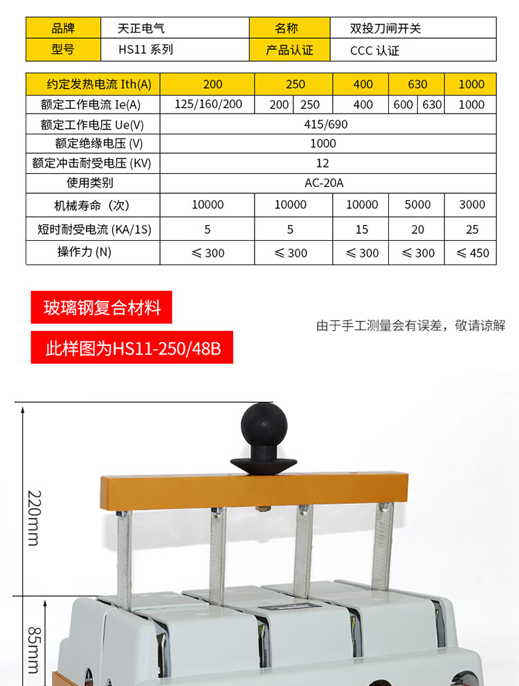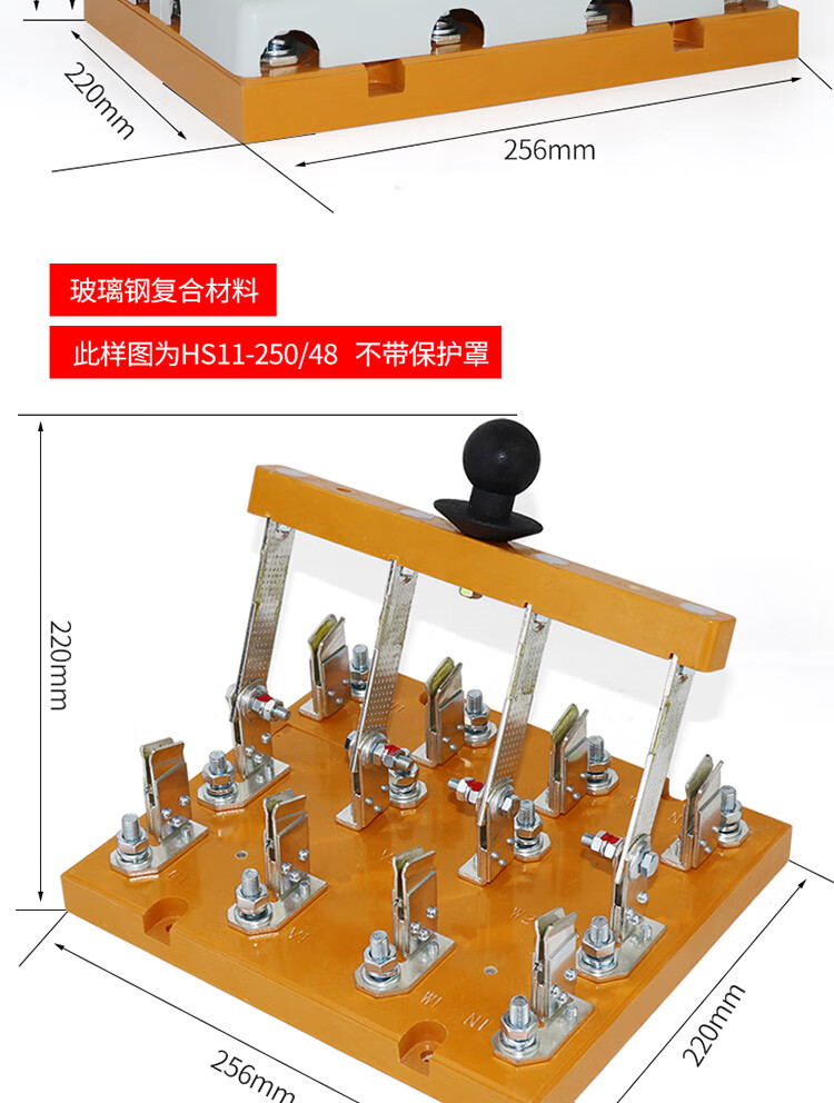 Yue Changsheng HS11 double-throw gate knife 4P generator dual power switch transfer switch 380V three-phase four-wire 25 HS11-250A/48B glass plate full plate front wiring 4P