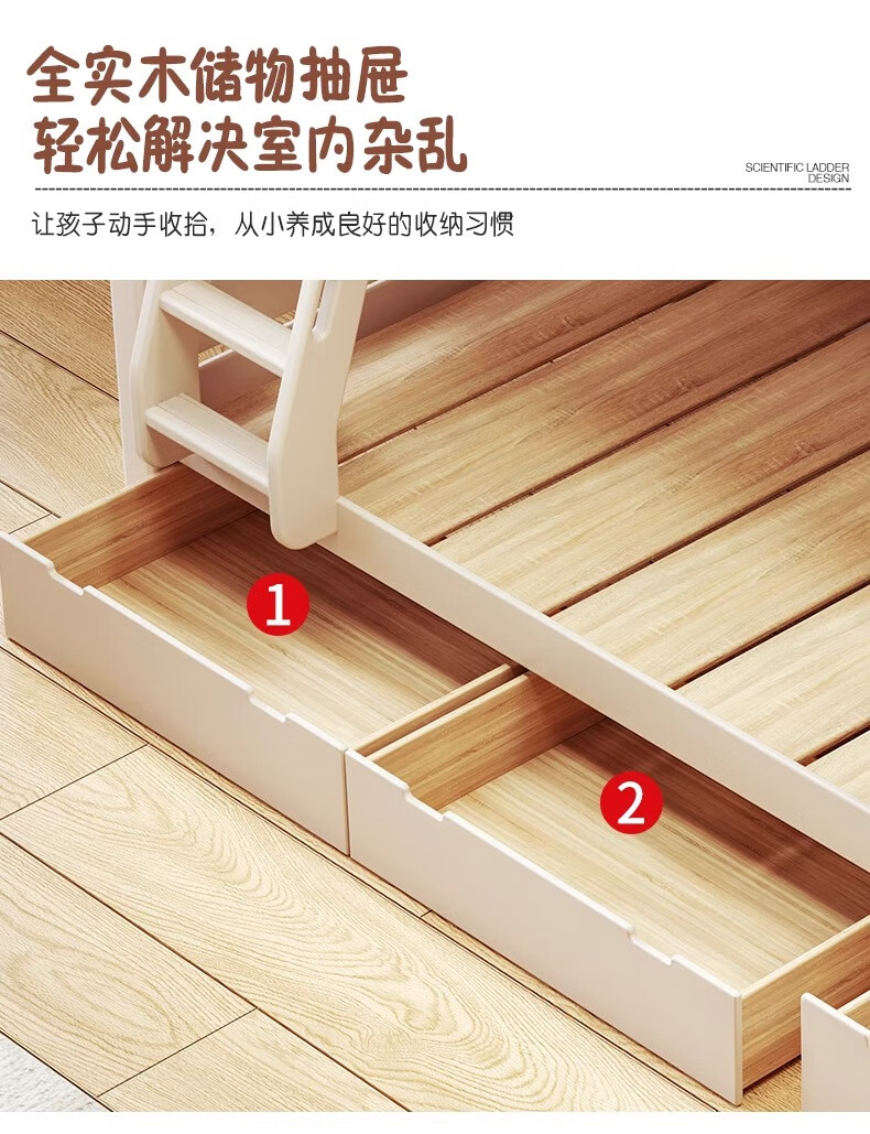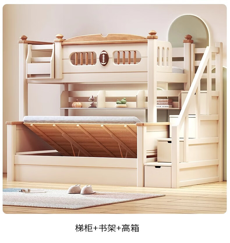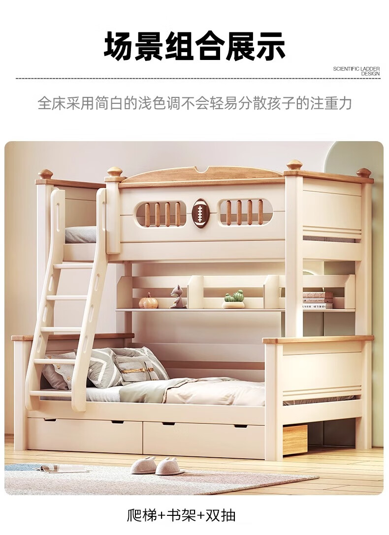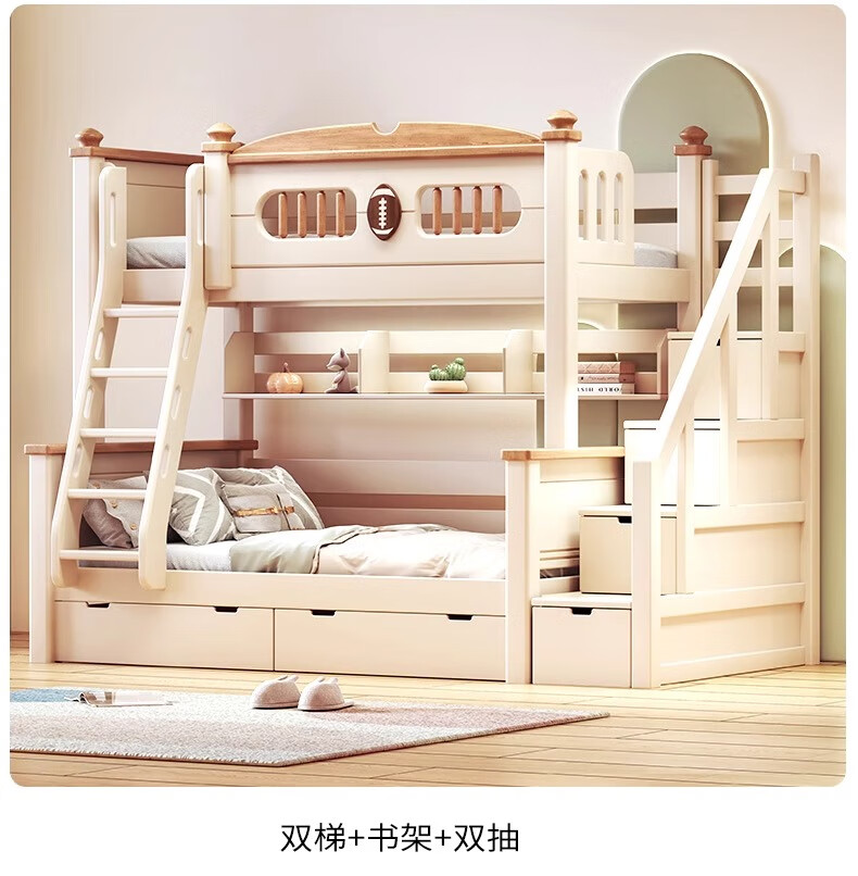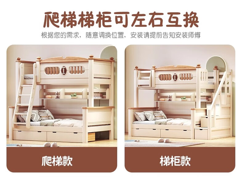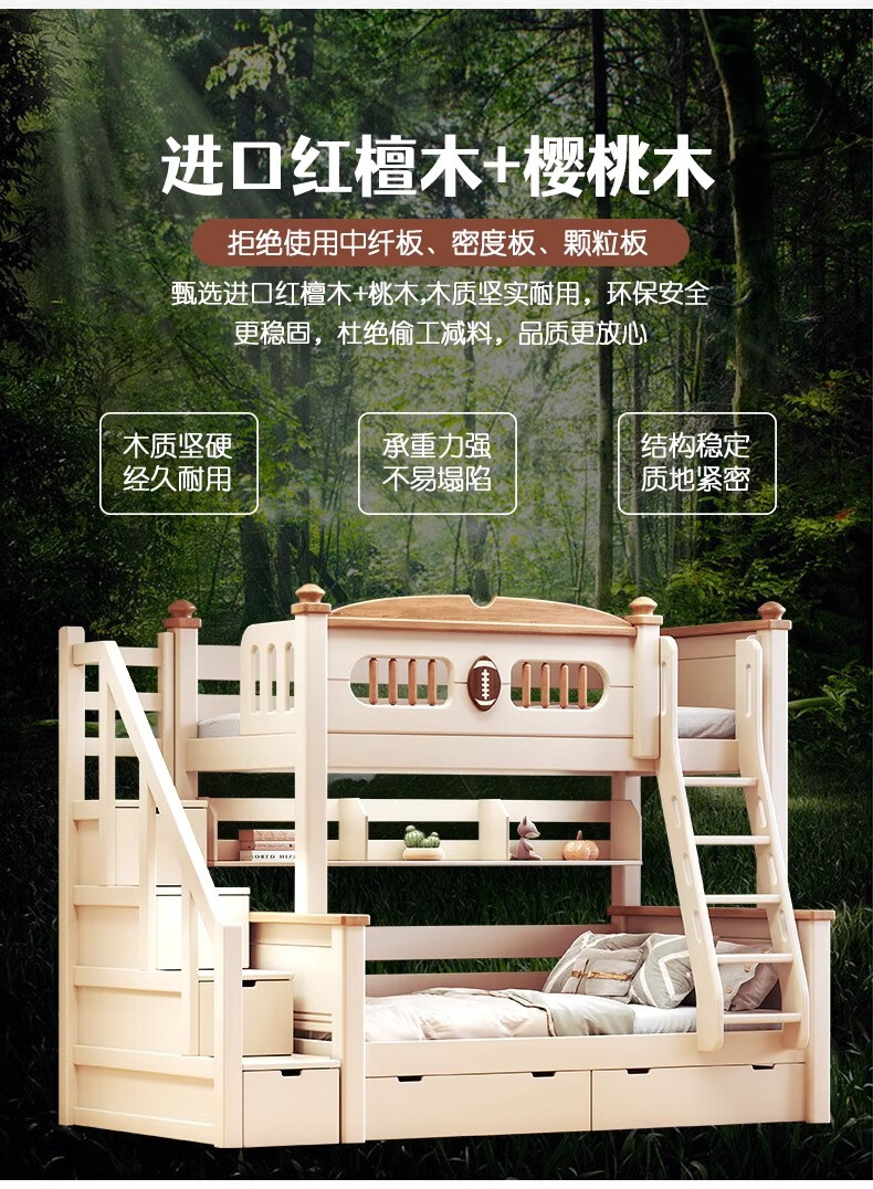 Lixubao Spot Sparkling Cherry Wood Children's Bed All Solid Wood Upper and Lower Bunks Double-layer Bunk Bed High and Low Bed Ladder Style + Double Drawer + Mattress*2 1600mmx2000mm