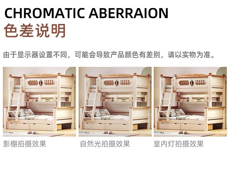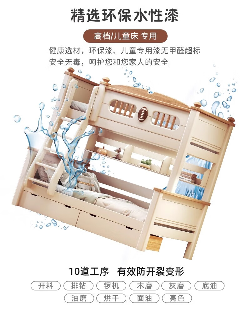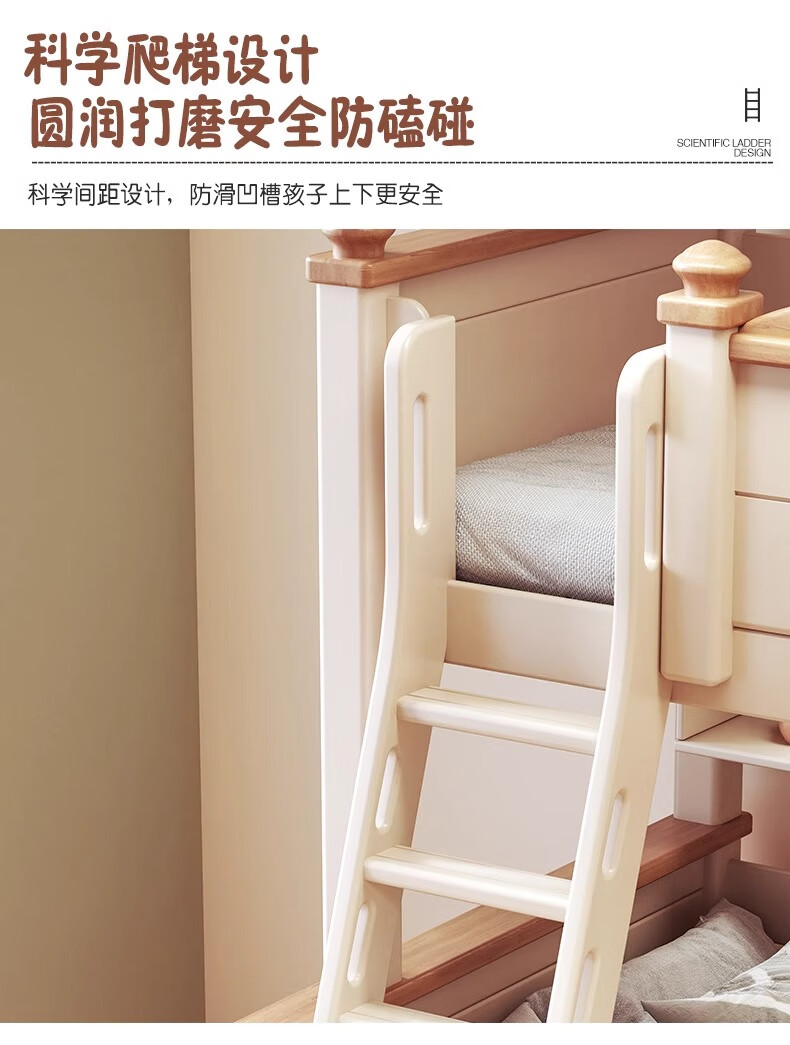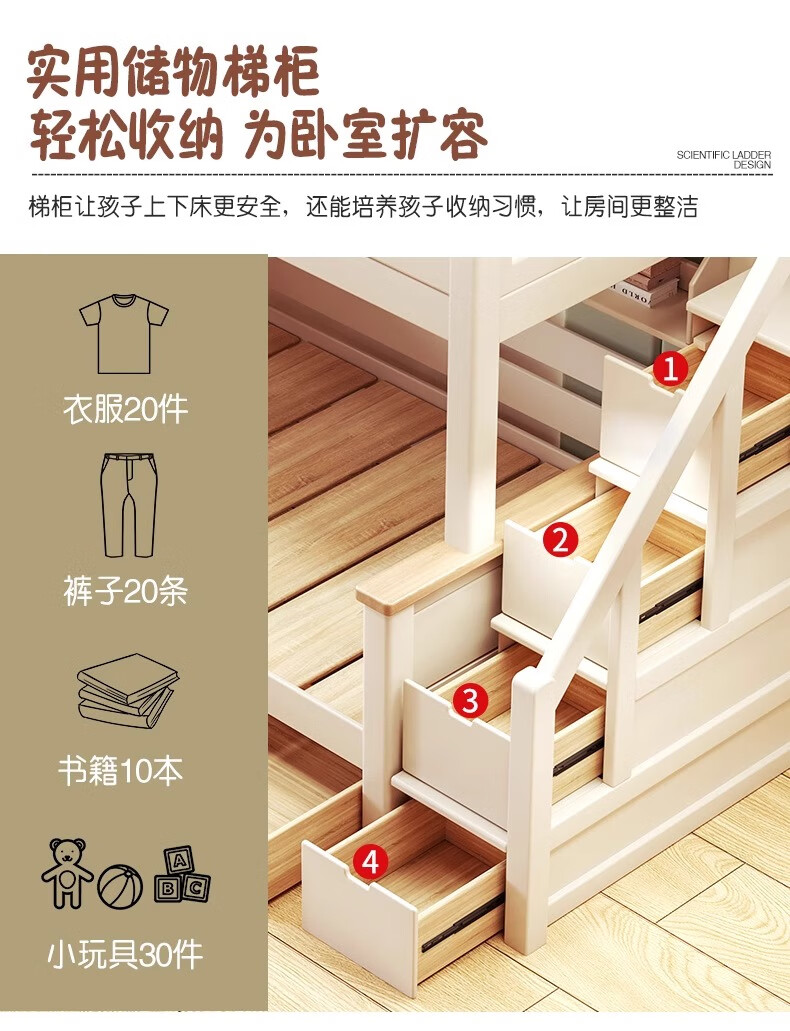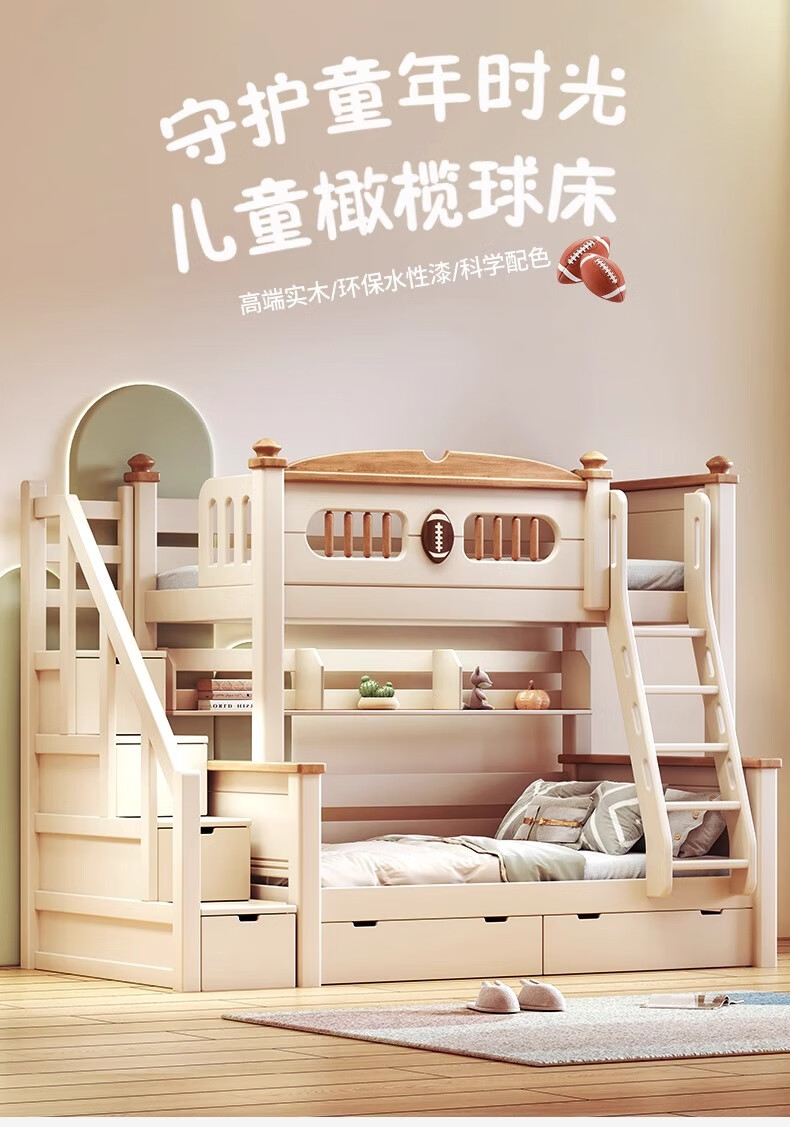 Lixubao Spot Sparkling Cherry Wood Children's Bed All Solid Wood Upper and Lower Bunks Double-layer Bunk Bed High and Low Bed Ladder Style + Double Drawer + Mattress*2 1600mmx2000mm