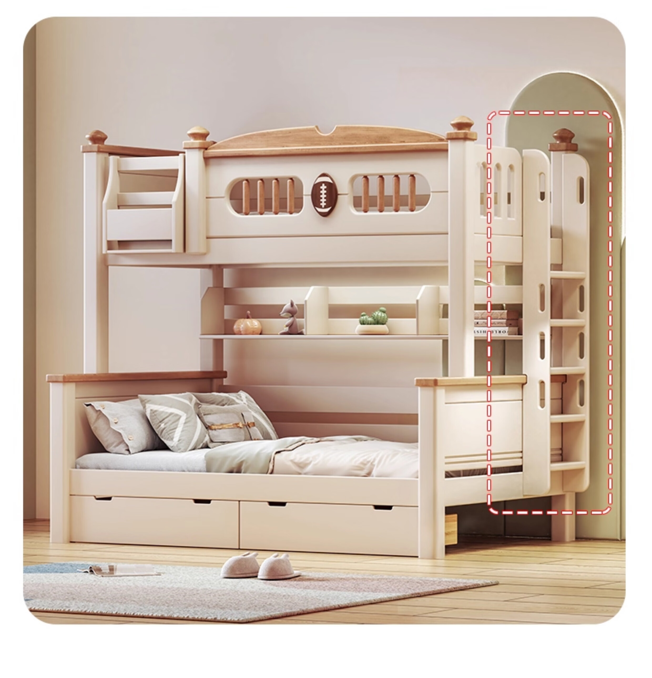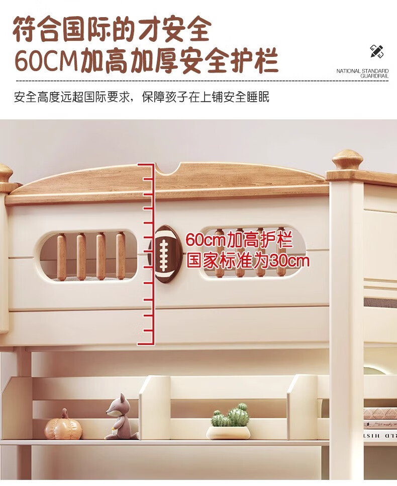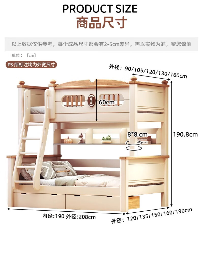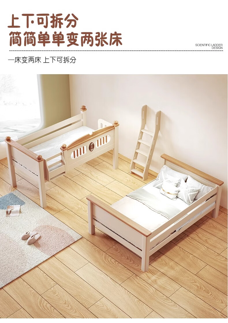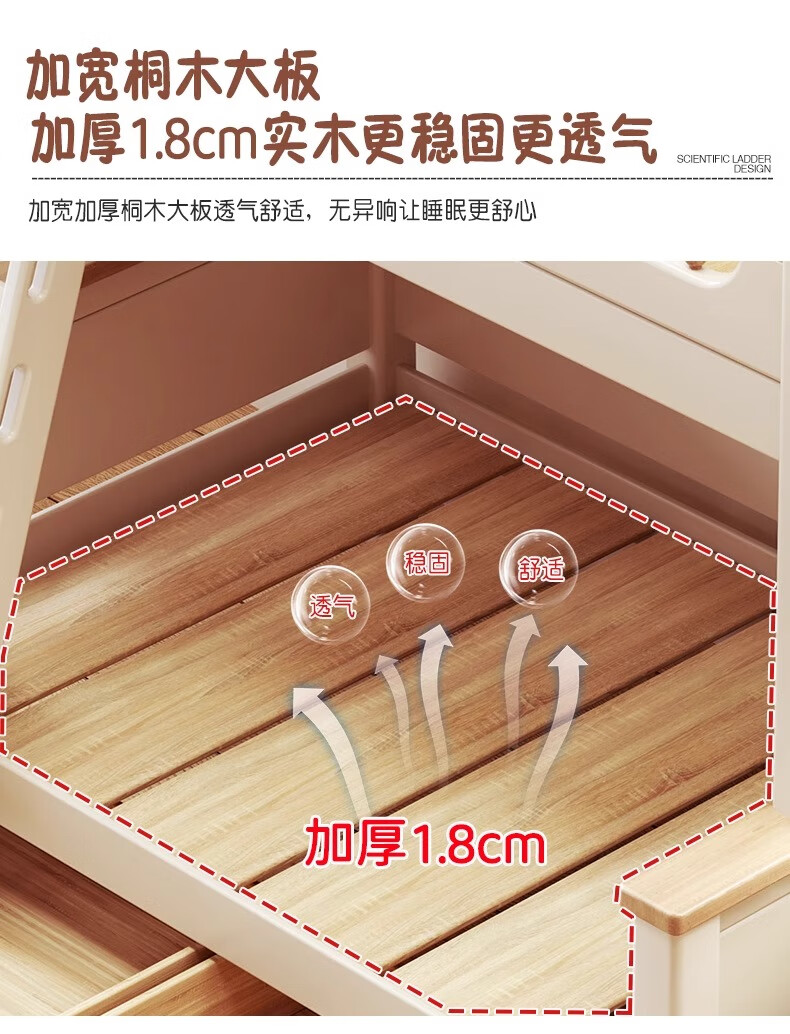 Lixubao Spot Sparkling Cherry Wood Children's Bed All Solid Wood Upper and Lower Bunks Double-layer Bunk Bed High and Low Bed Ladder Style + Double Drawer + Mattress*2 1600mmx2000mm
