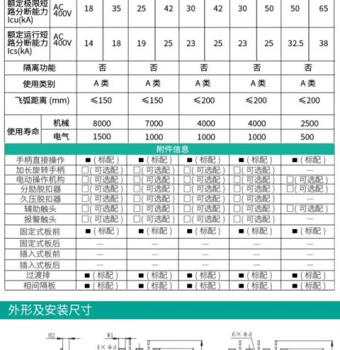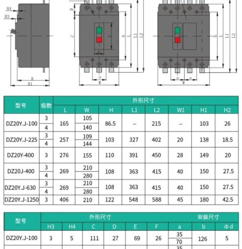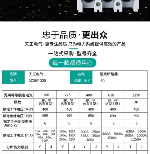 Yue Changsheng DZ20Y-225/3300 plastic case circuit breaker air switch 225A DZ20Y-225/3300 125A