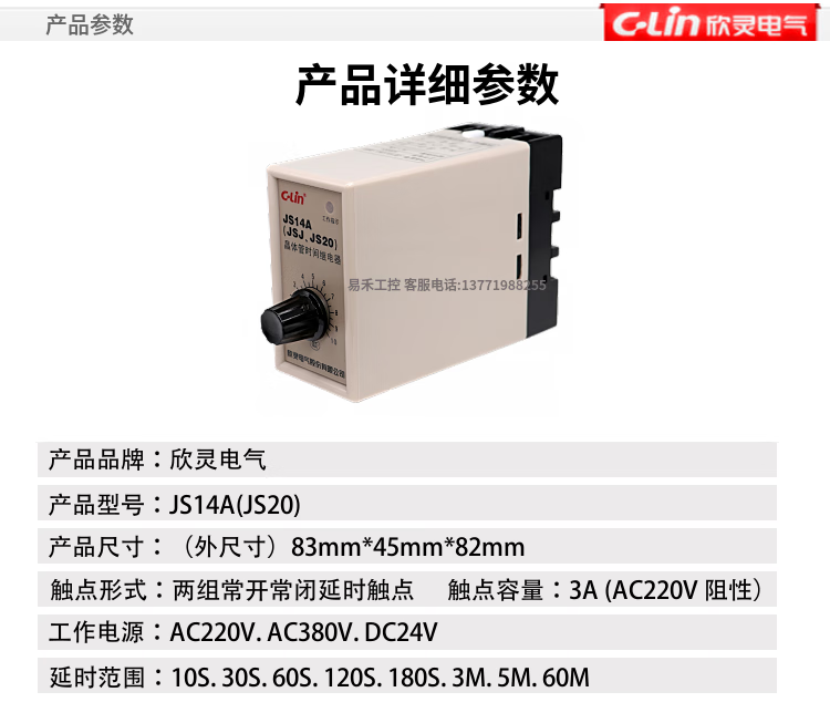 Yuechangsheng Xinling brand time relay JS14A (JS20) old type 10S/30S/60S/120S JS14A10SAC380V