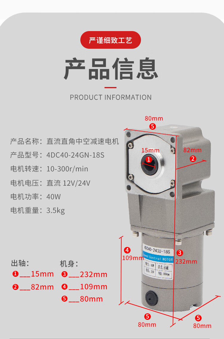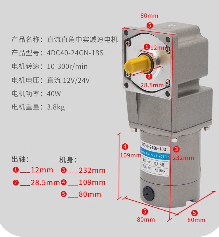 Yue Changsheng 12V24V DC right angle reduction motor 40W medium solid small motor micro motor slow speed reduction ratio 50K (36 revolutions per minute) right angle medium solid (12V) motor + brake