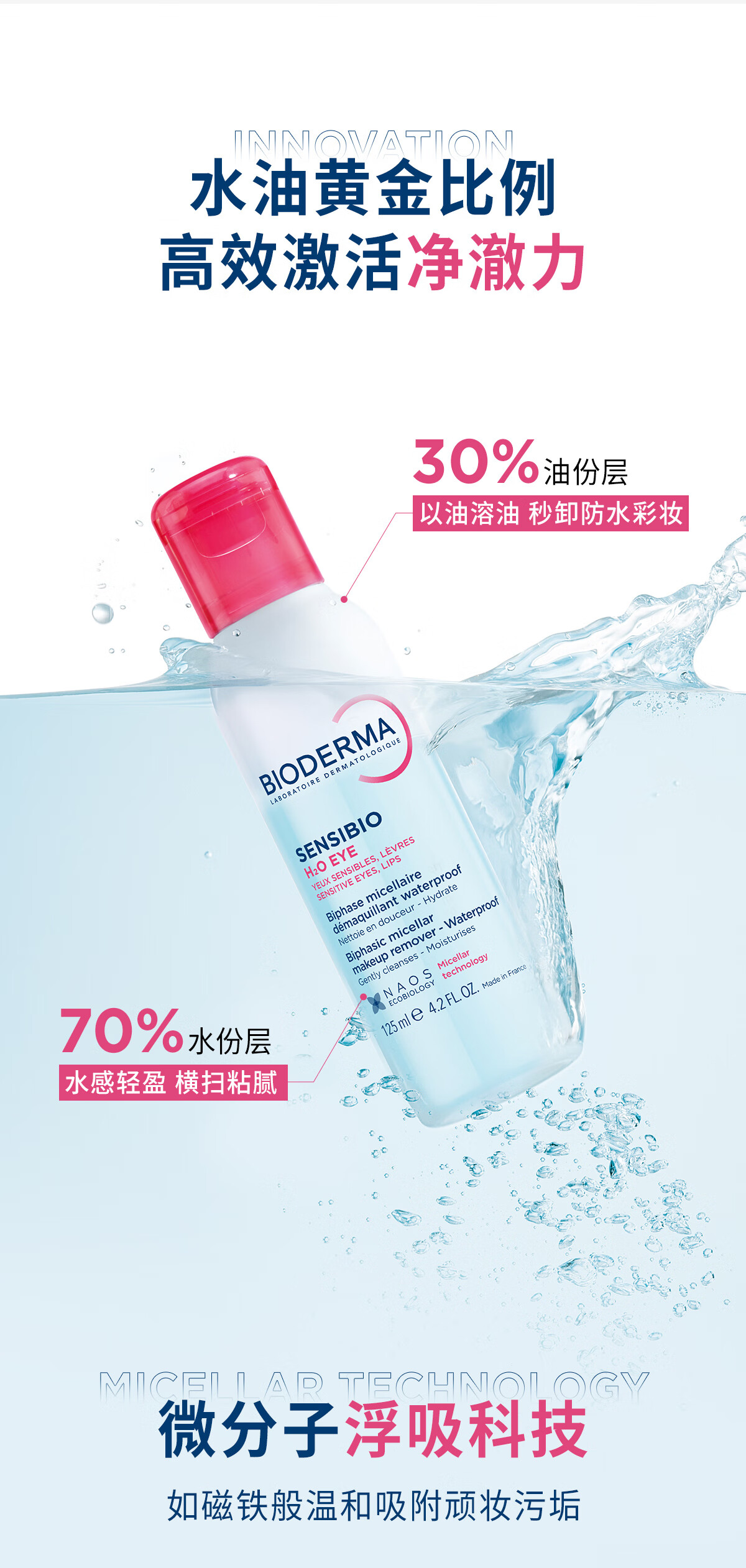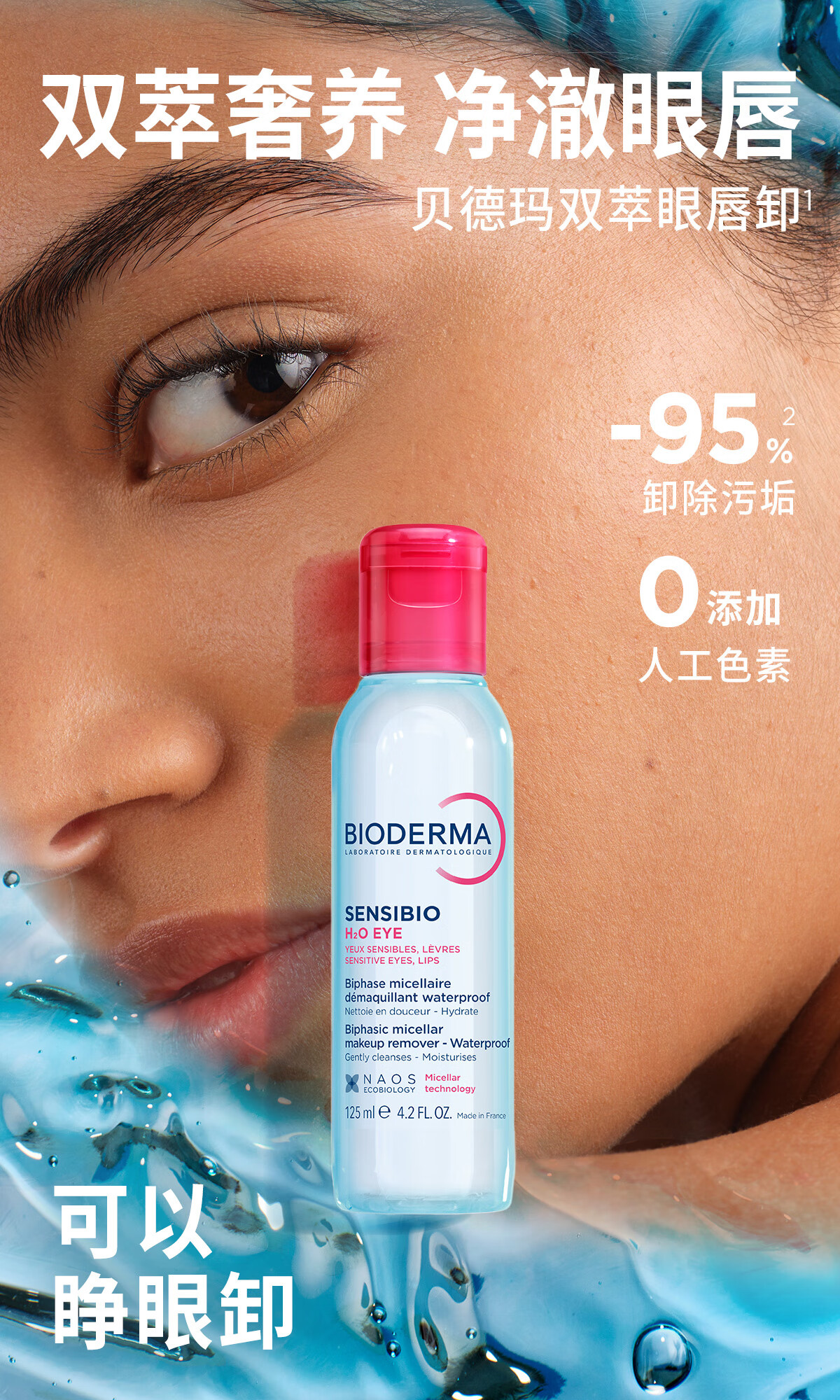 BIODERMA Double Extract Eye and Lip Remover Oil Separation B5 Nourishes Sensitive Eyelashes Trial Size 8ml (4ml*2)