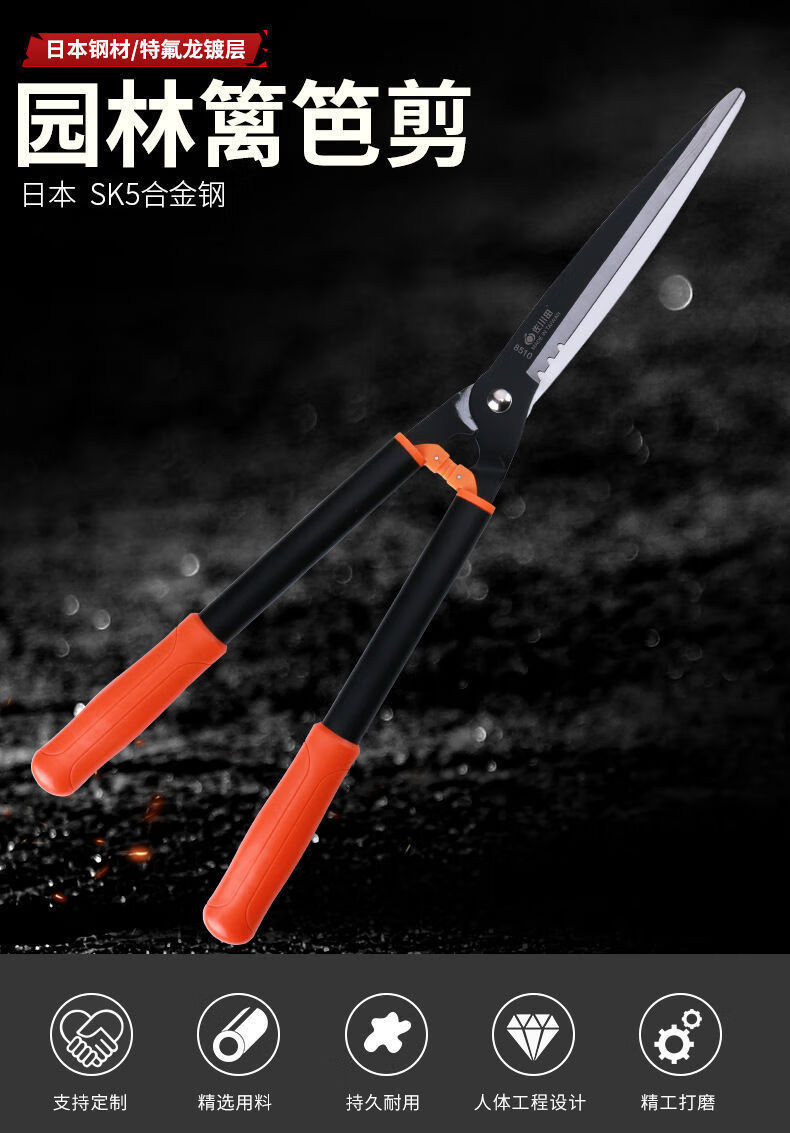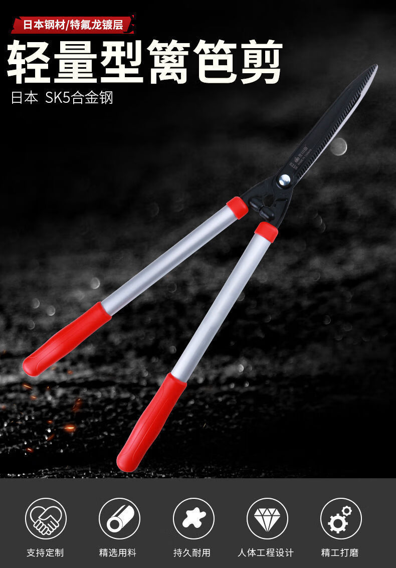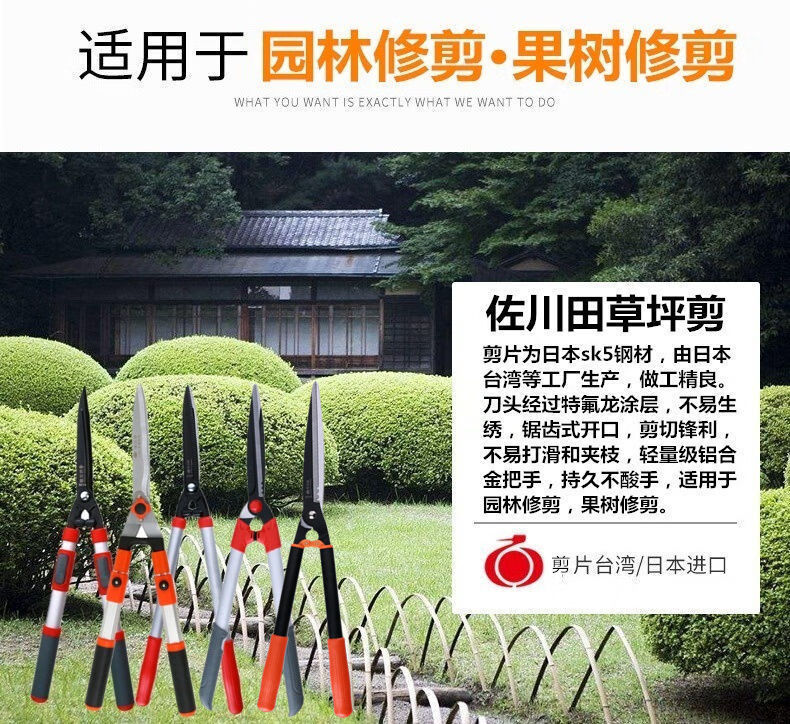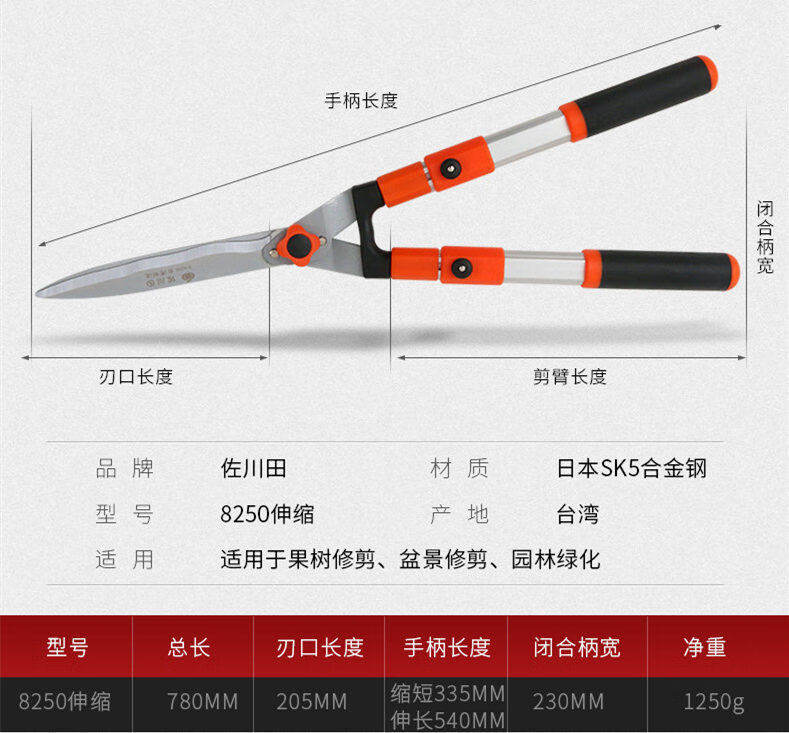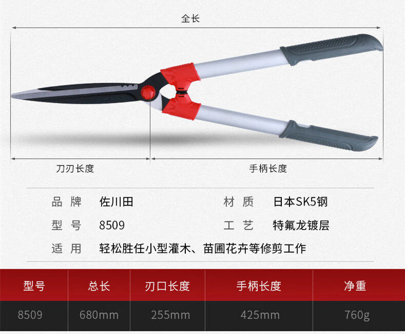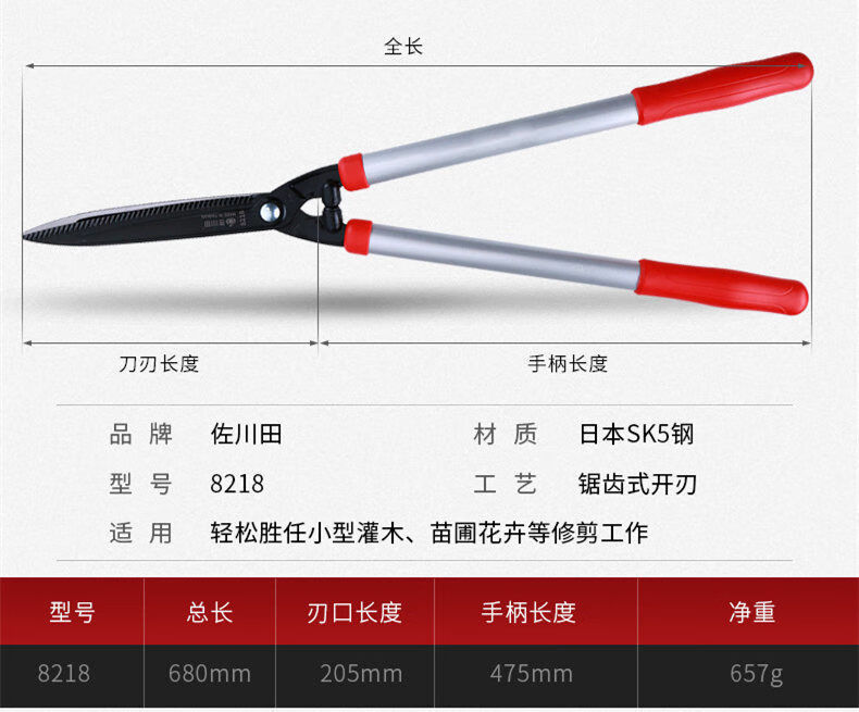 Huaiman Hedge Shears Labor-saving Large Scissors Pruning Shears Garden Lawn Flowers and Trees Pruning Tool 8218 Sawtooth Opening Regular Style