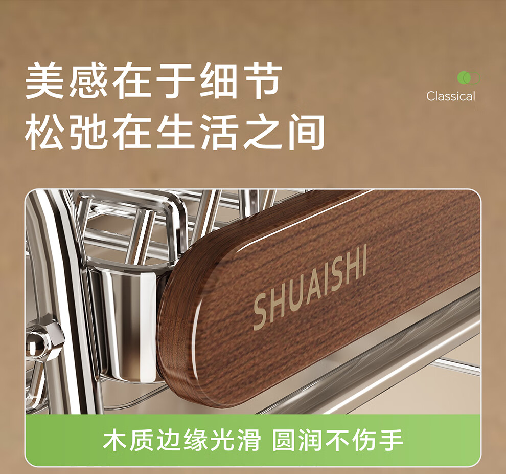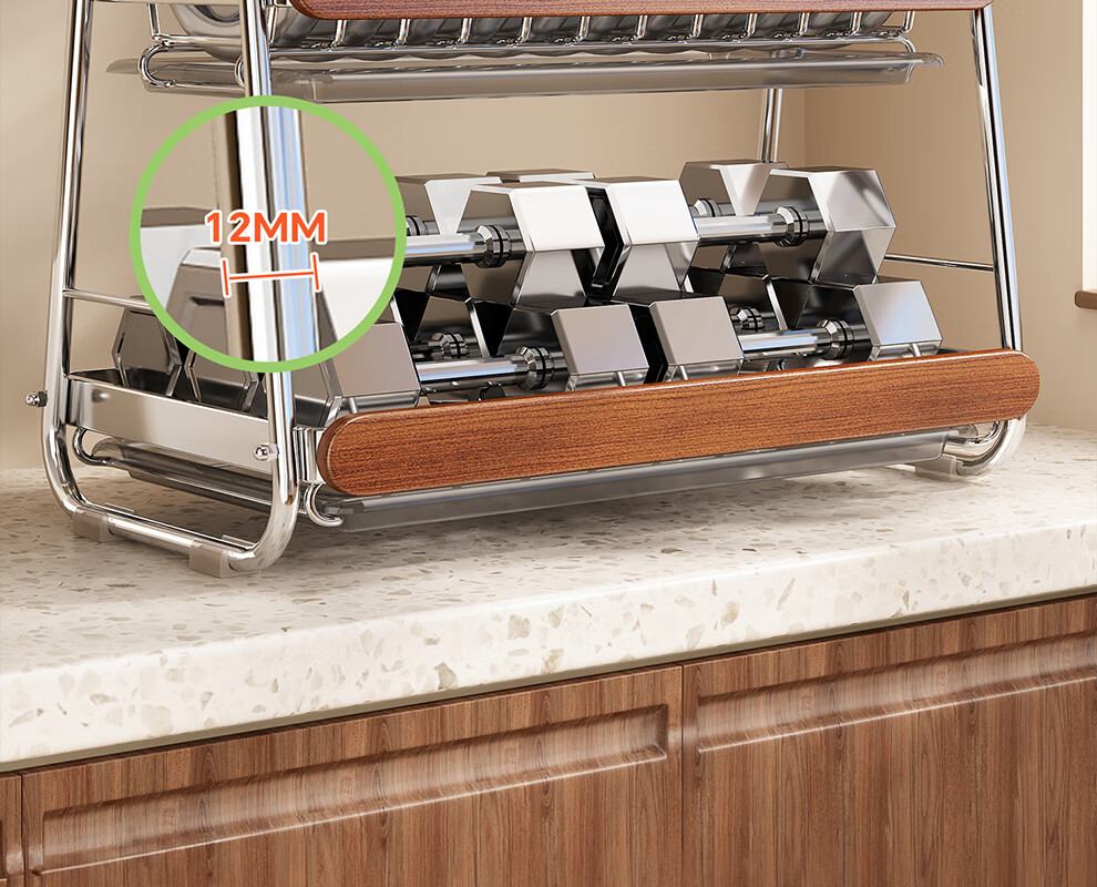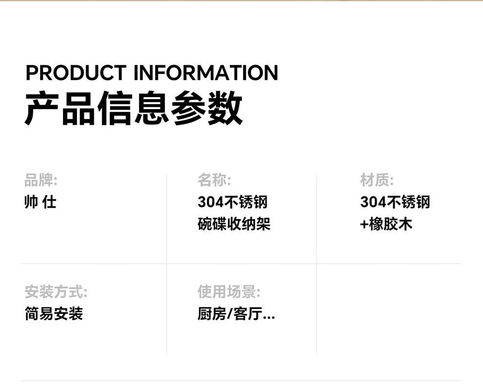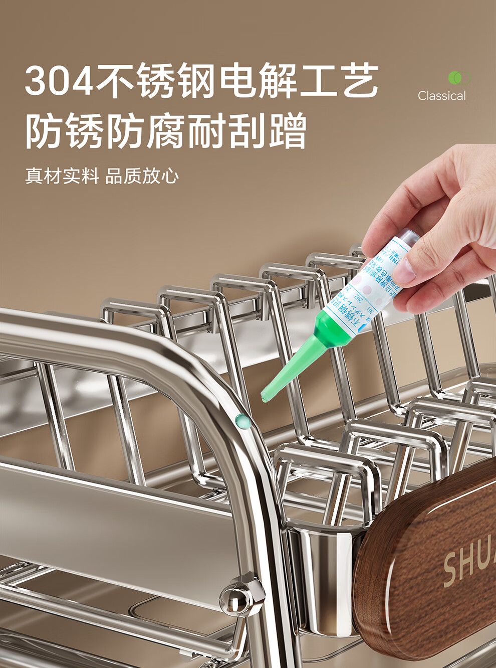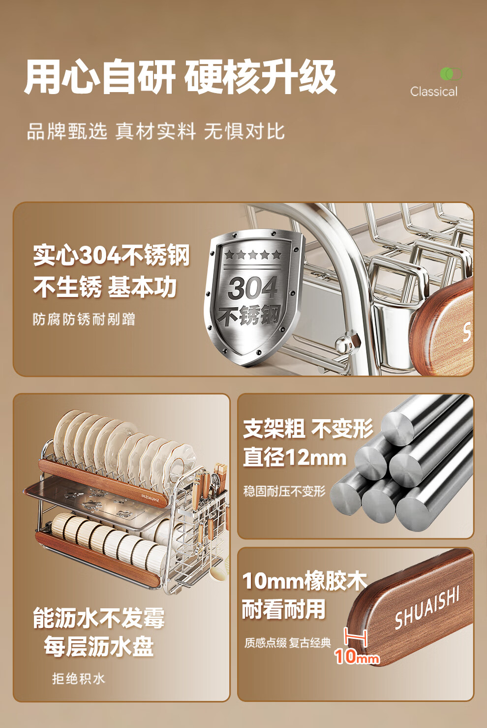 Shuaishi kitchen storage rack dish storage rack 304 stainless steel dish rack drain rack table top for dishes, chopsticks and cutlery cabinet 304 stainless steel 2 layers 44cm top - medieval style丨Solid solid wood