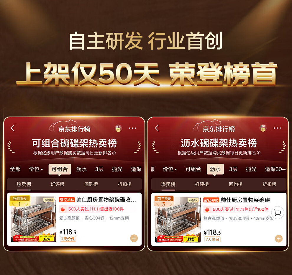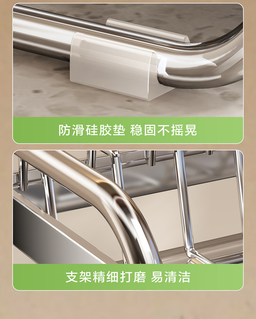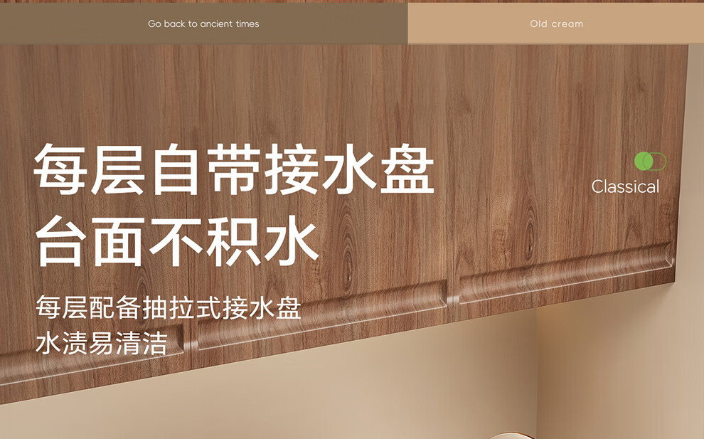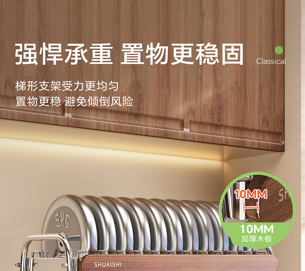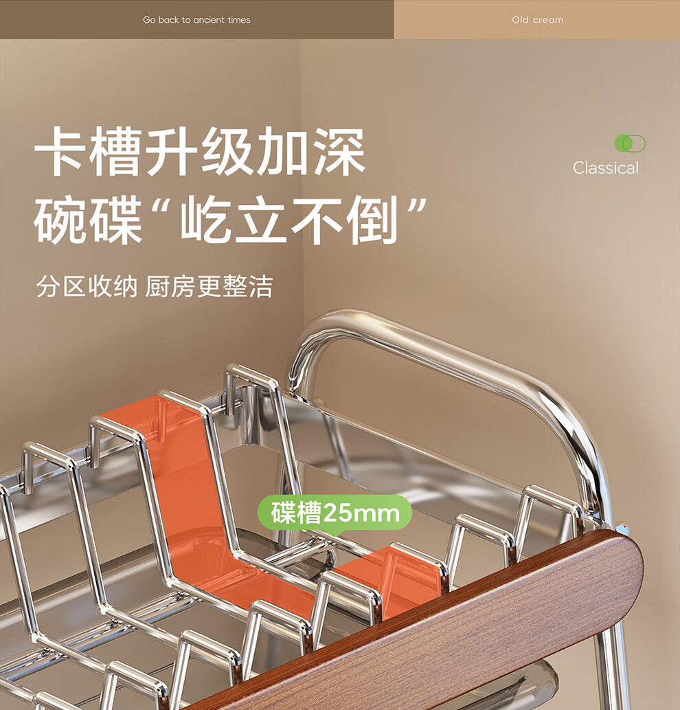 Shuaishi kitchen storage rack dish storage rack 304 stainless steel dish rack drain rack table top for dishes, chopsticks and cutlery cabinet 304 stainless steel 2 layers 44cm top - medieval style丨Solid solid wood