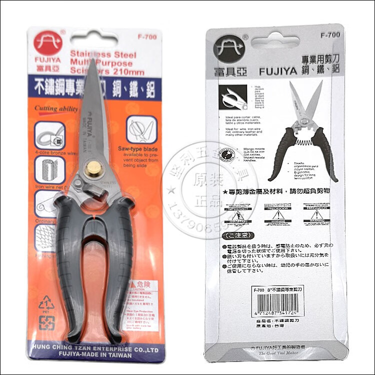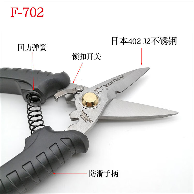 Huaiman F-700F-702 Electrical Wire Trunk Shears Iron Shears Gardening Fruit Branches Stainless Steel Kitchen Scissors F-702 7-inch full length 185mm with holes