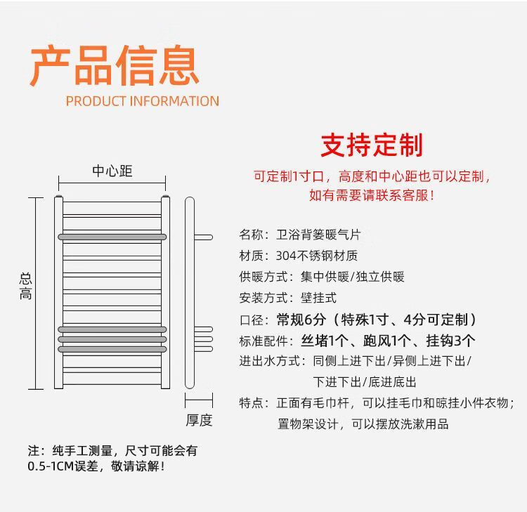 Vinoa stainless steel basket radiator floor heating household bathroom radiator water bathroom wall-mounted heating 400600cm*1 column
