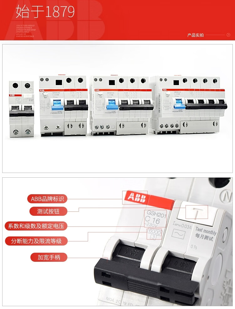 ABB charging pile dedicated A-type leakage protection GSH series leakage protection switch 10A 1P+N