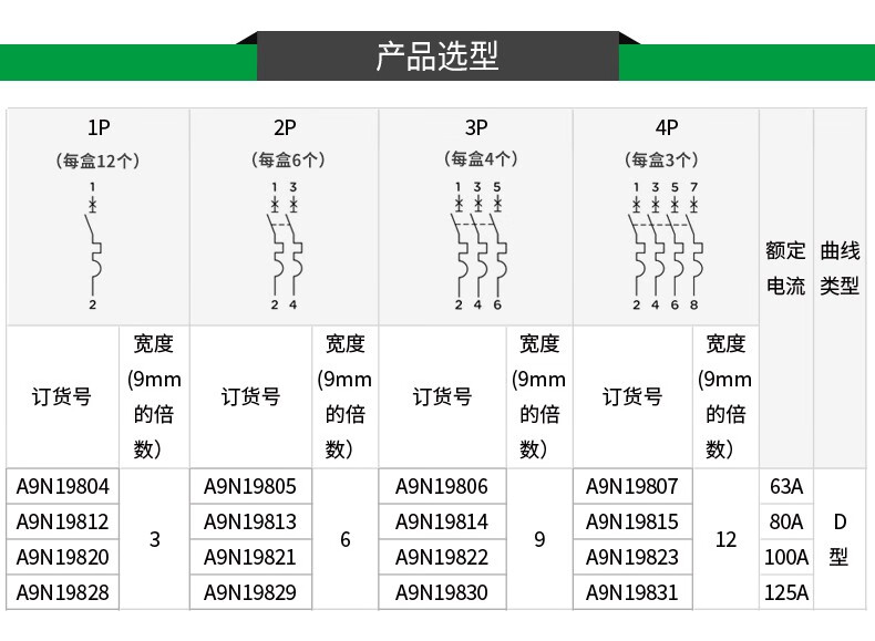 Schneider A9 air switch C120H circuit breaker 1P80A63 current 2P100A air switch 3P125A D 4p 125A