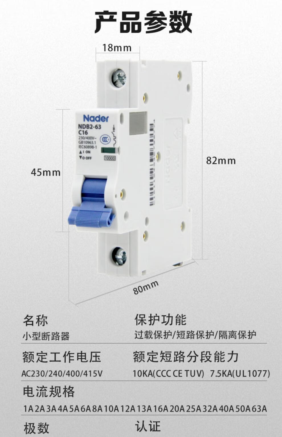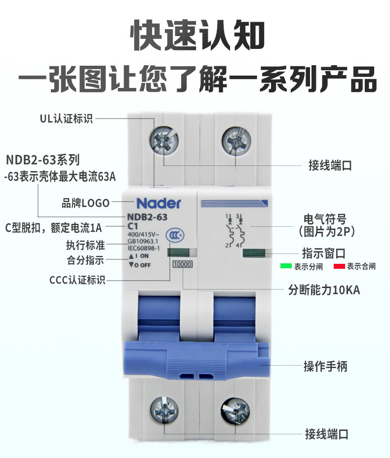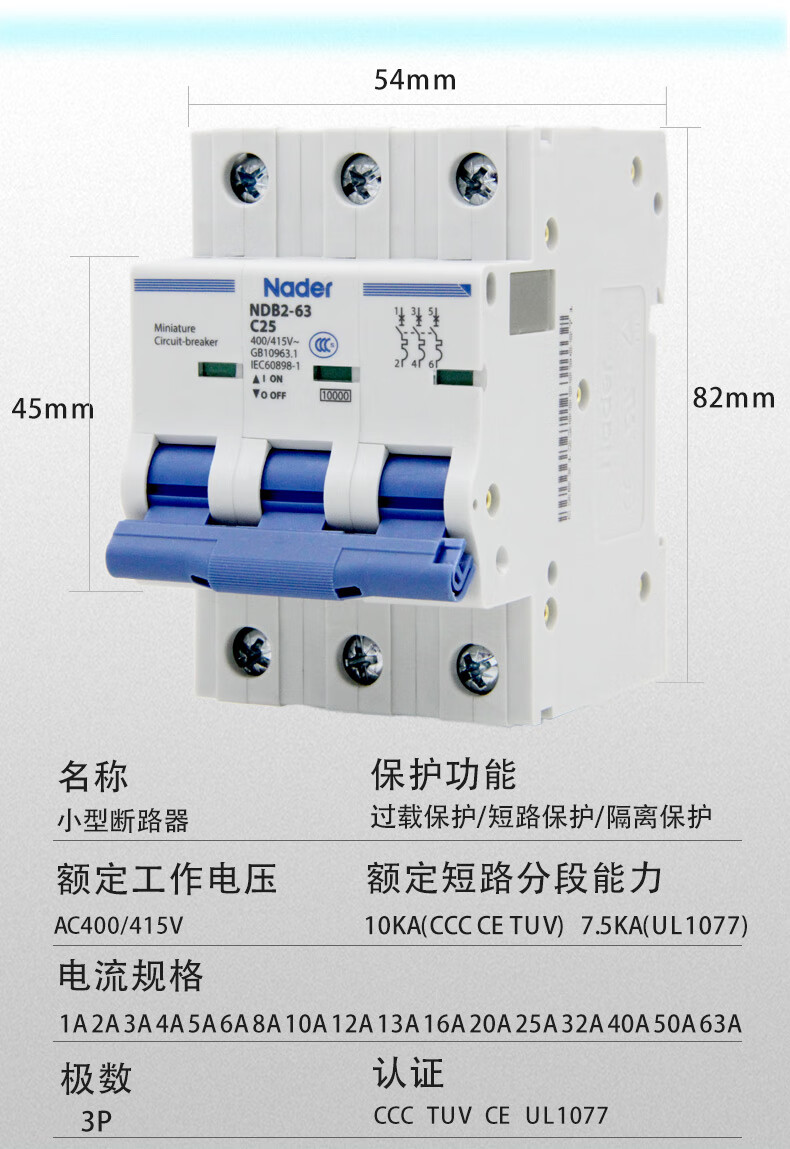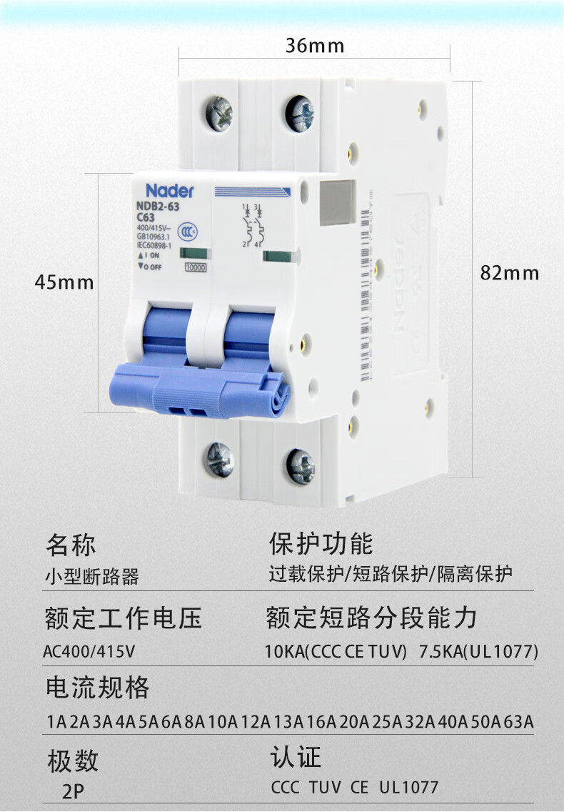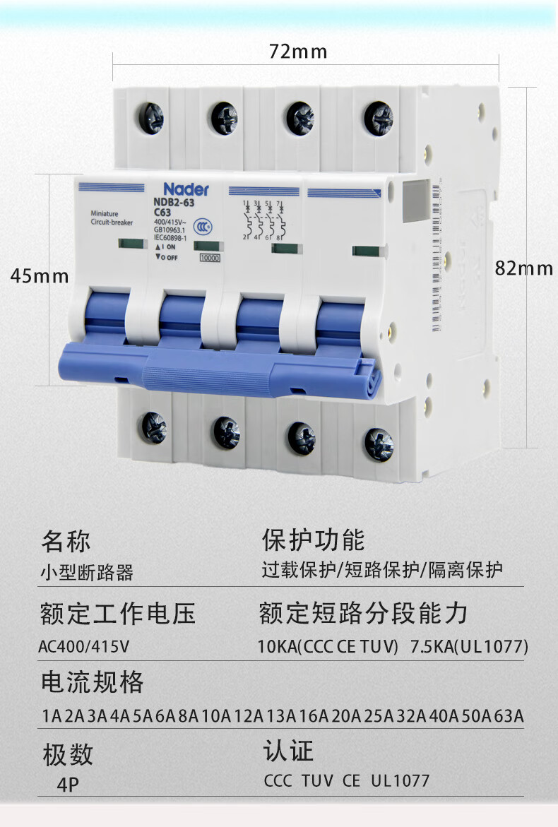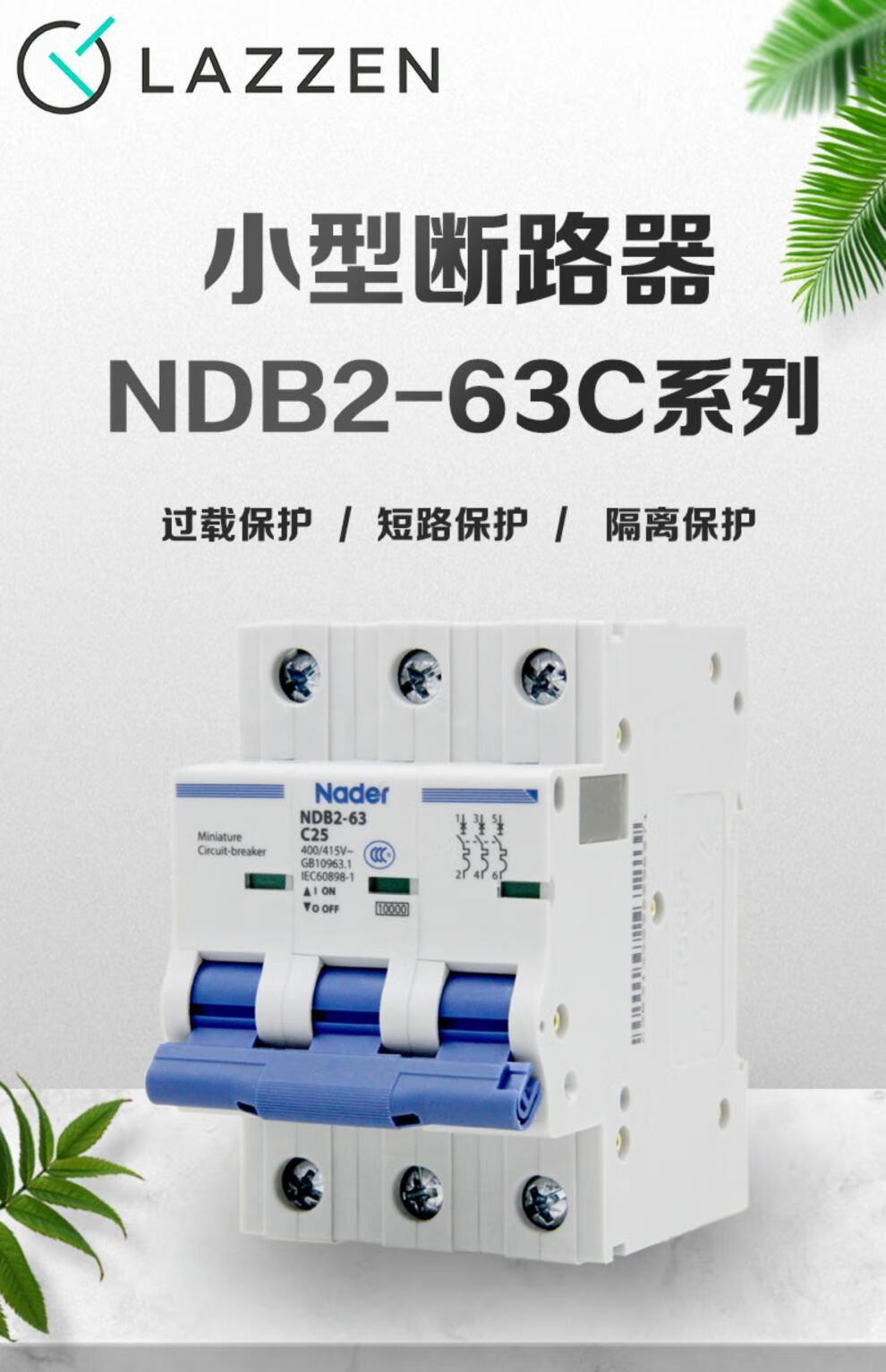 Liangxin NDB263C 4P Shanghai Nader circuit breaker air switch C type 4P small breaker 63A
