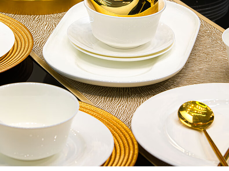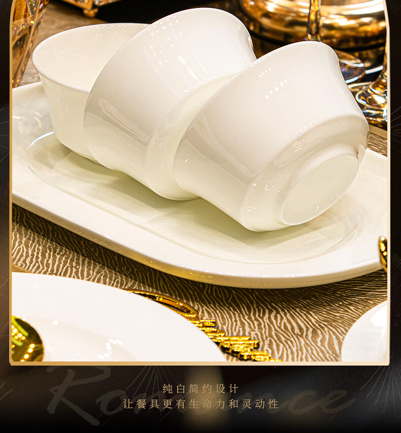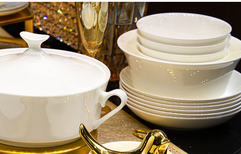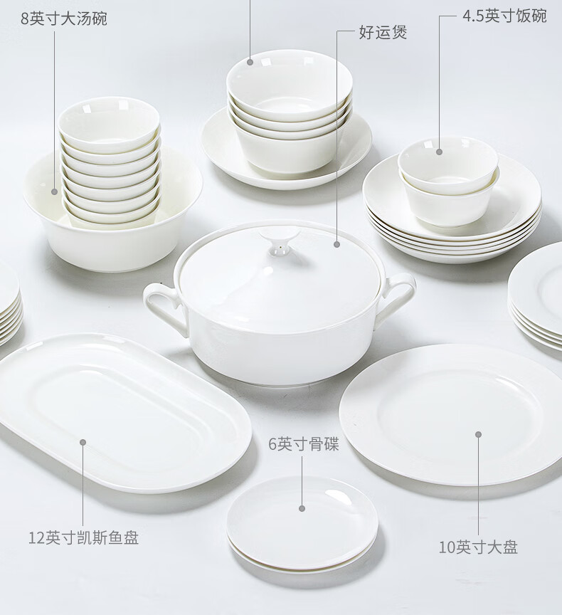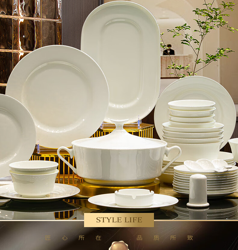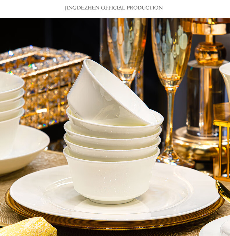 Qi Gongzi Jingdezhen bowl set high-end pure white underglaze color bone china tableware household dish set housewarming plates bowls and chopsticks 60 pieces with good luck pot microwave and dishwasher