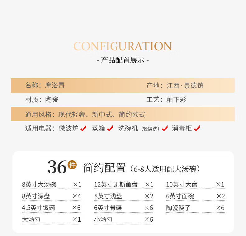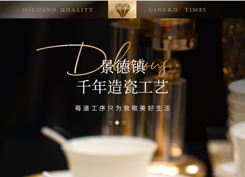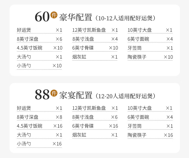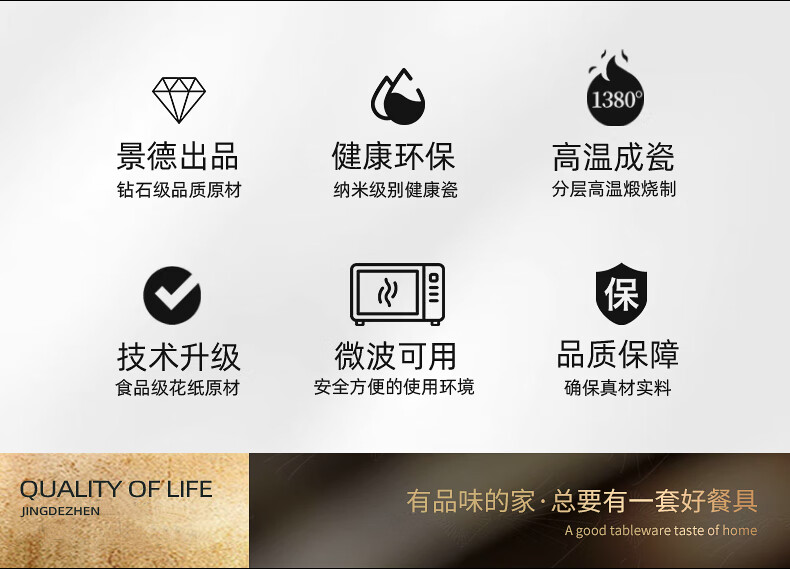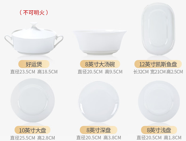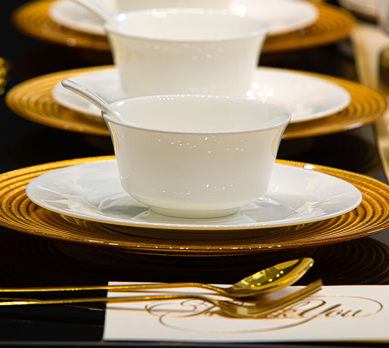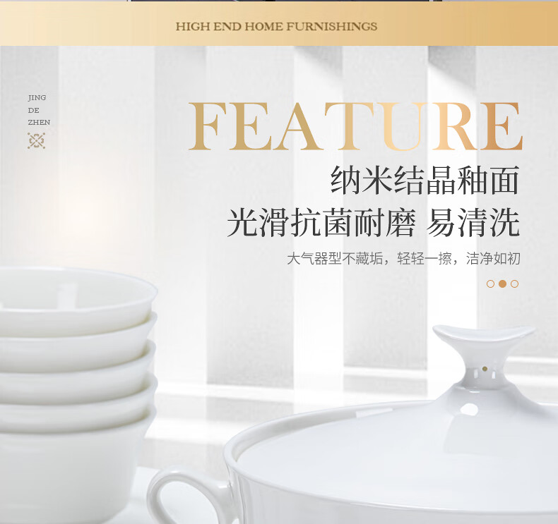 Qi Gongzi Jingdezhen bowl set high-end pure white underglaze color bone china tableware household dish set housewarming plates bowls and chopsticks 60 pieces with good luck pot microwave and dishwasher