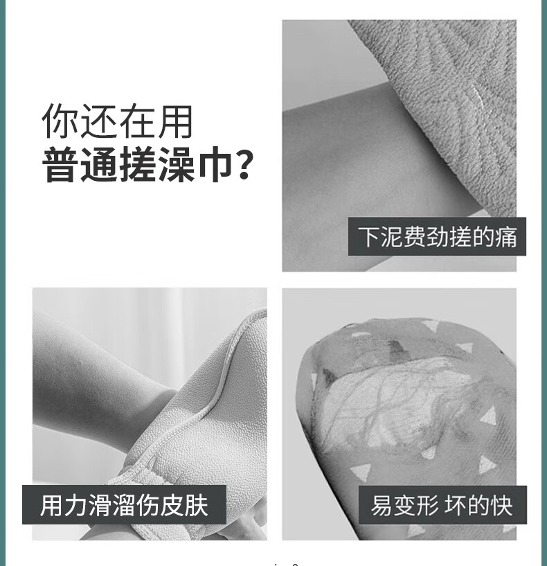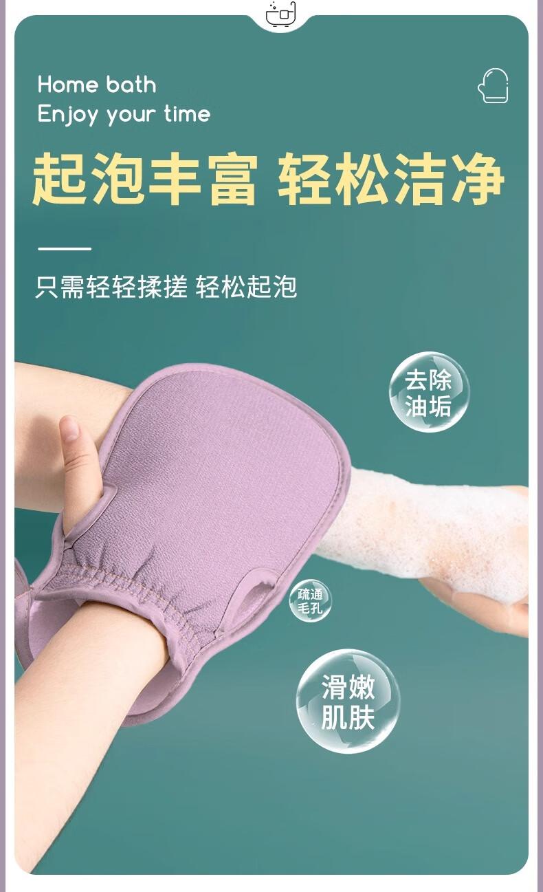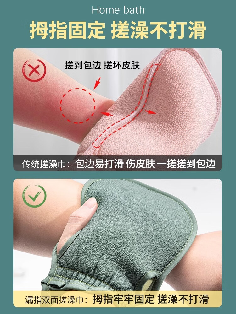 Fat Donglai's same style bath towel, strong mud rub and bath artifact, women's special fingerless gloves, new home style, thickened bath towel, dark green + pink + light purple + rice