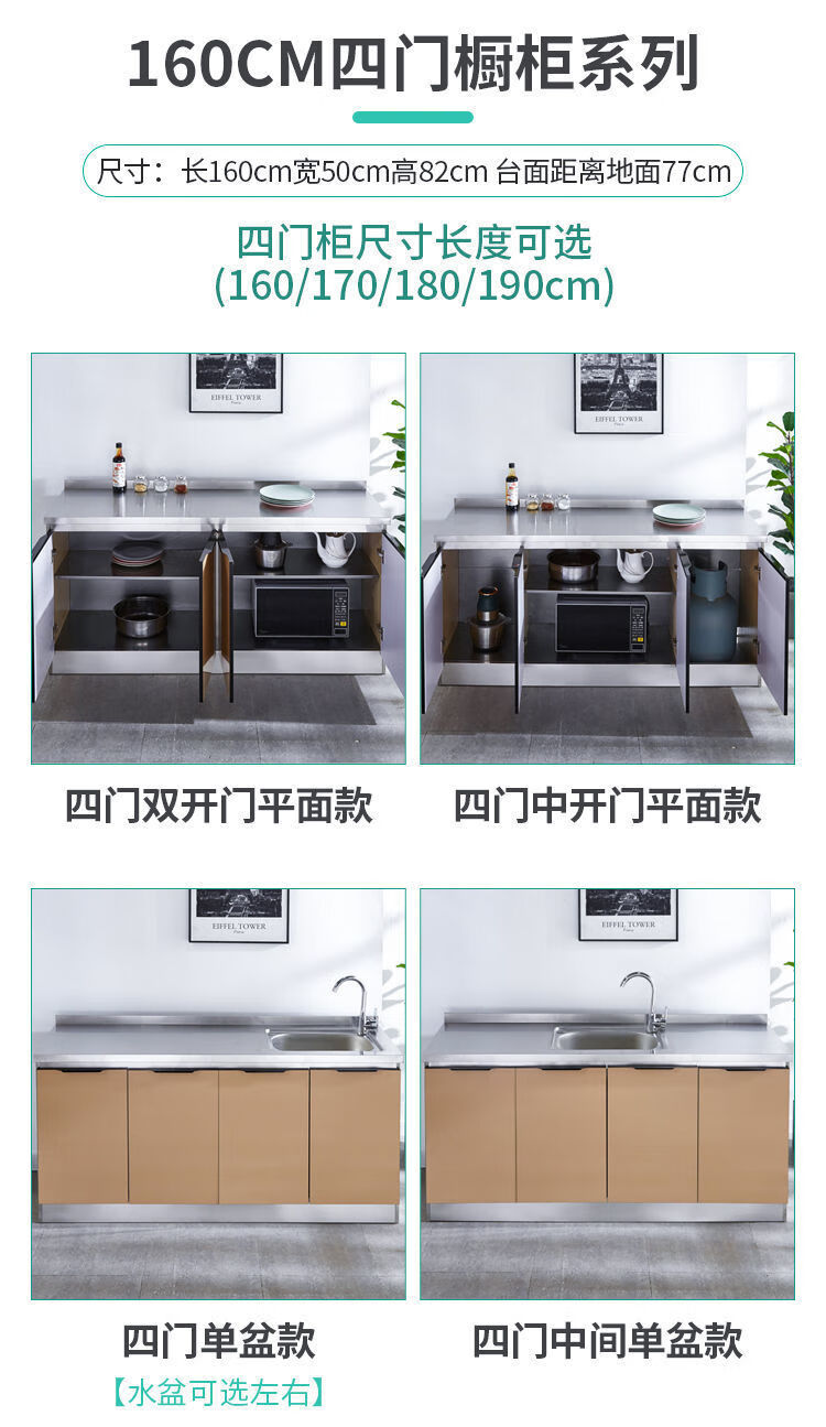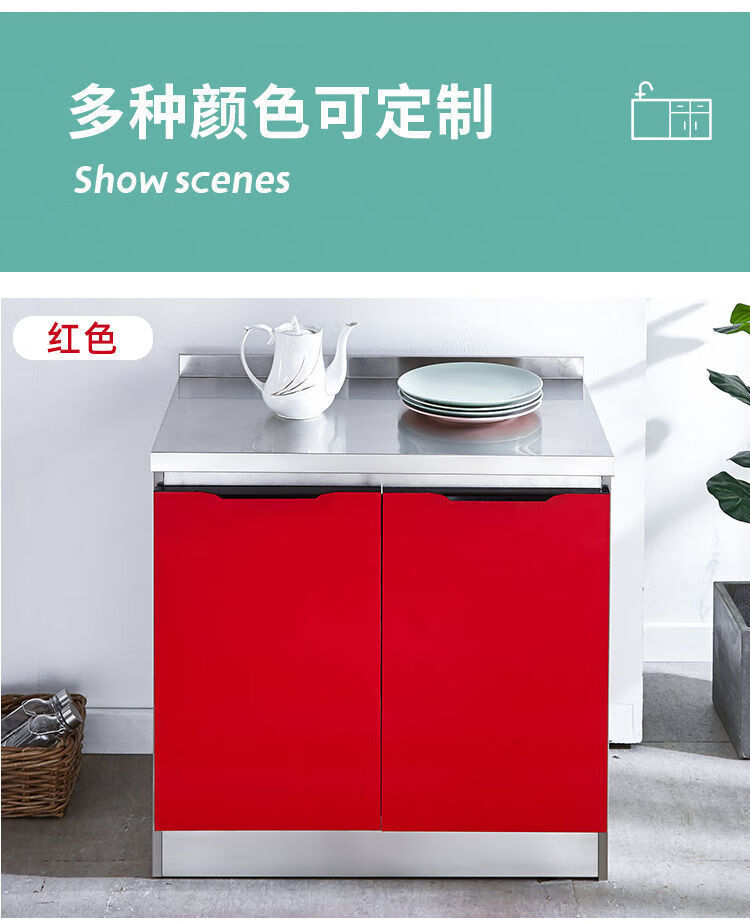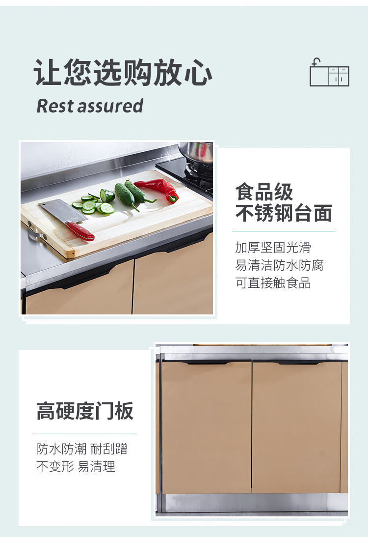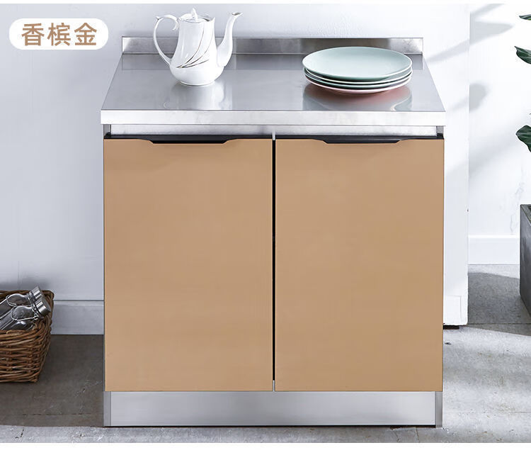 FANCYCHIC stainless steel kitchen cabinet glass door simple stove integrated household assembly cupboard economical sideboard sink 70cm double door plane
