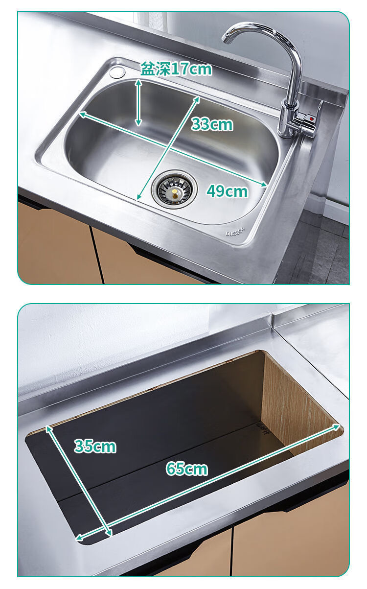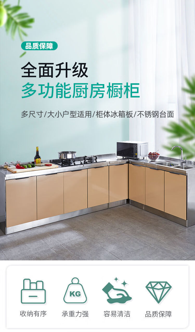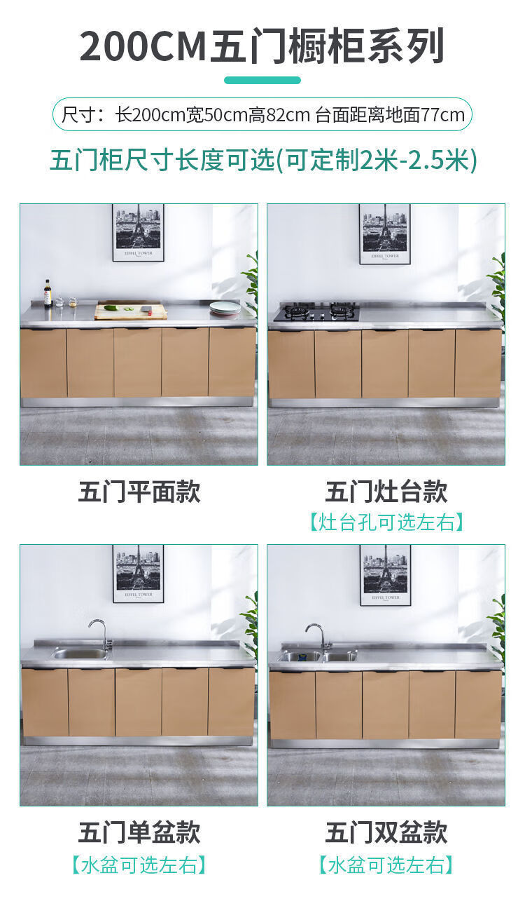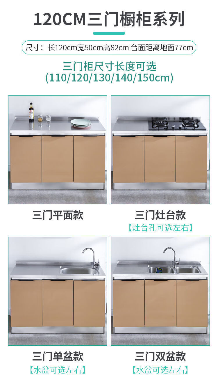 FANCYCHIC stainless steel kitchen cabinet glass door simple stove integrated household assembly cupboard economical sideboard sink 70cm double door plane
