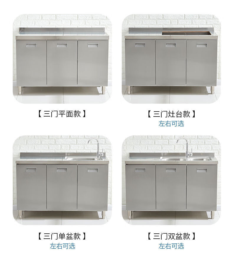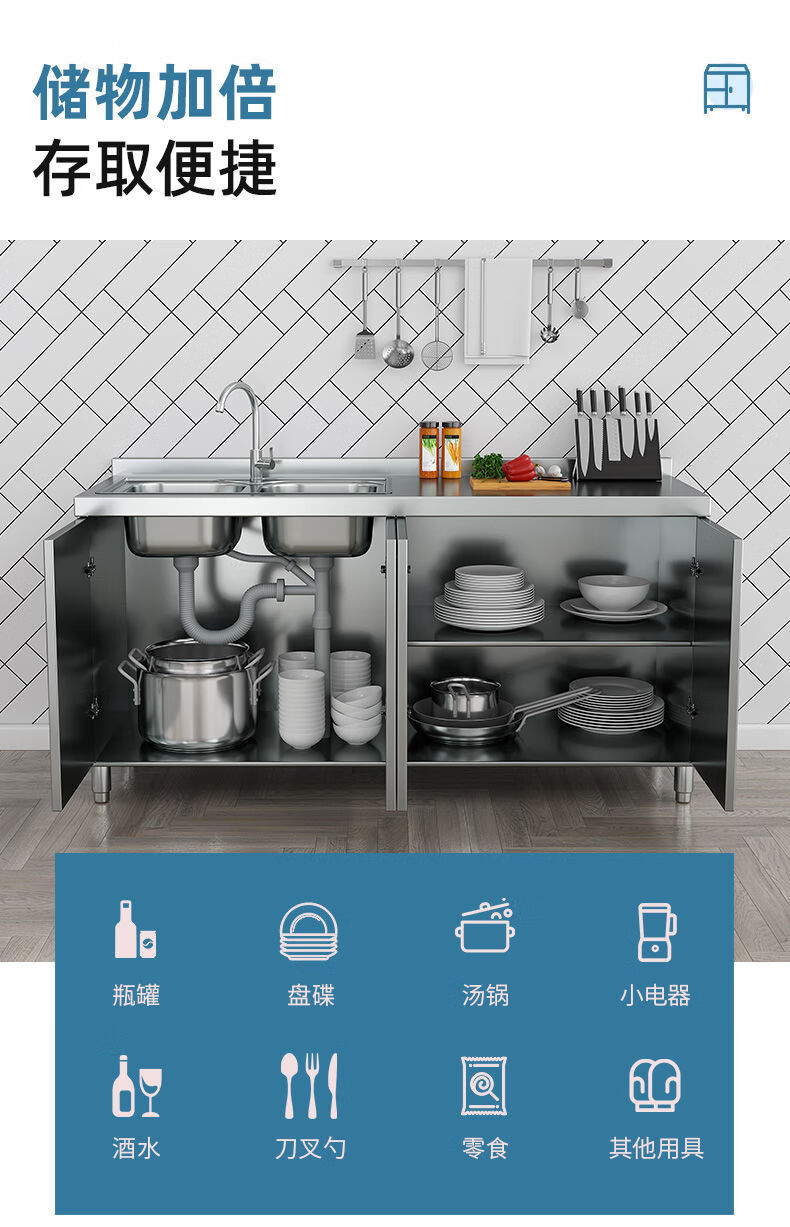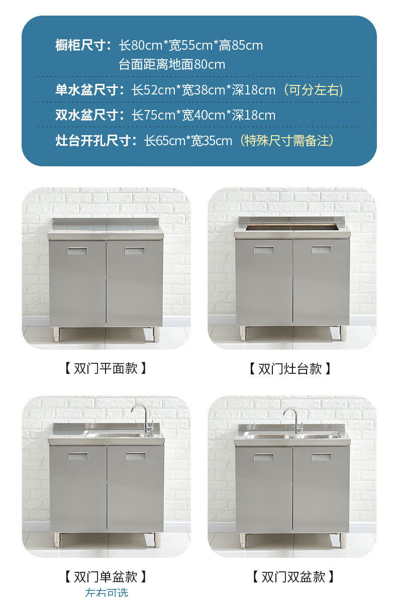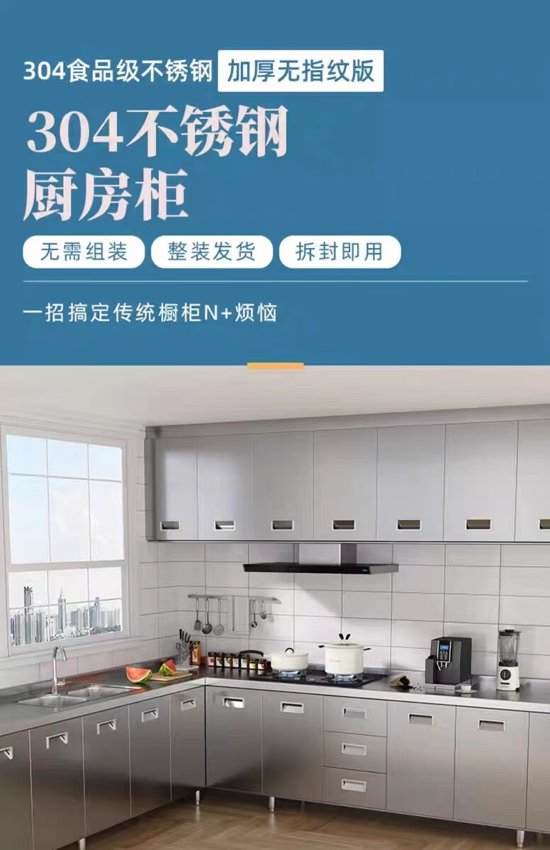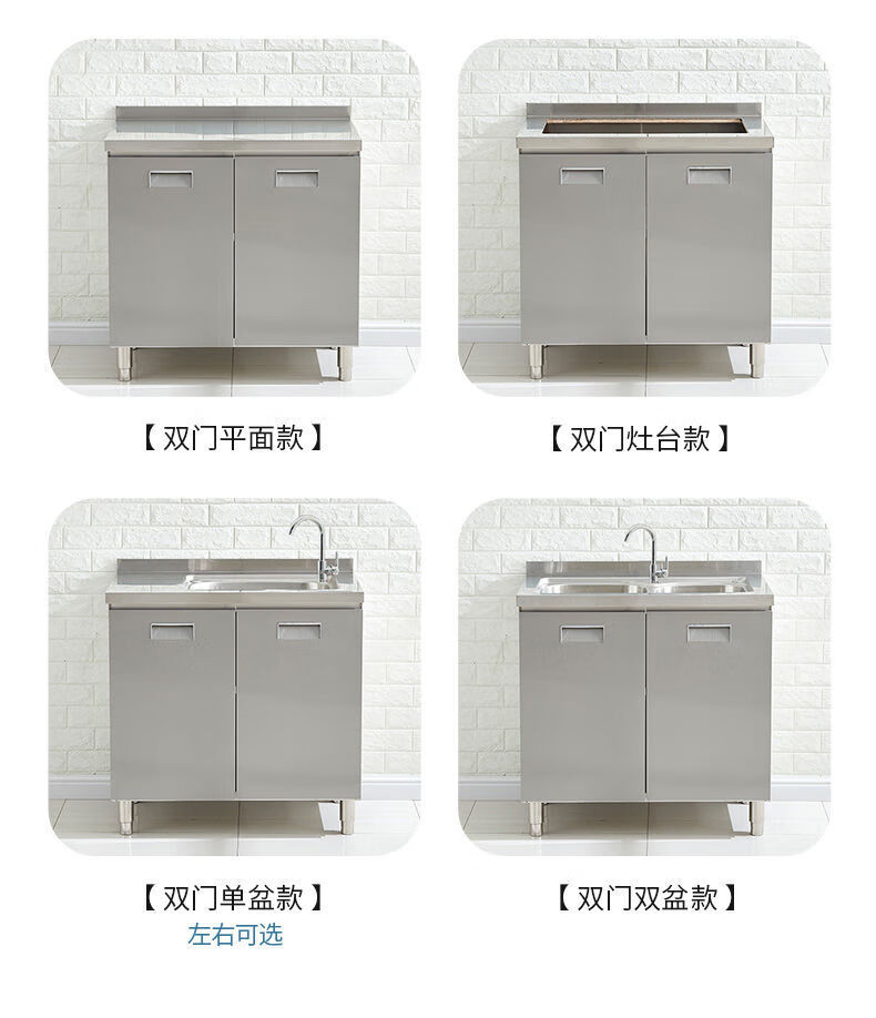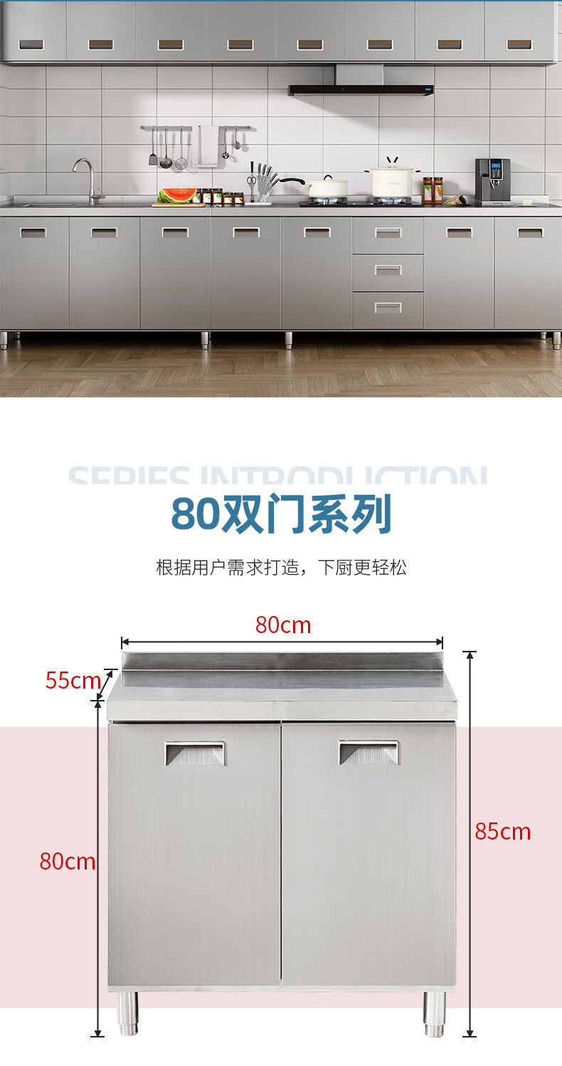 FANCYCHIC304 overall stainless steel kitchen cabinet simple stove integrated rural storage cupboard household small apartment 304 stainless steel thickened version 80cm double door flat version