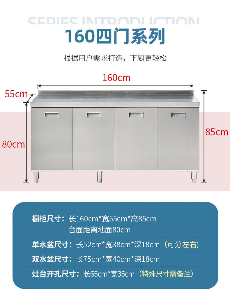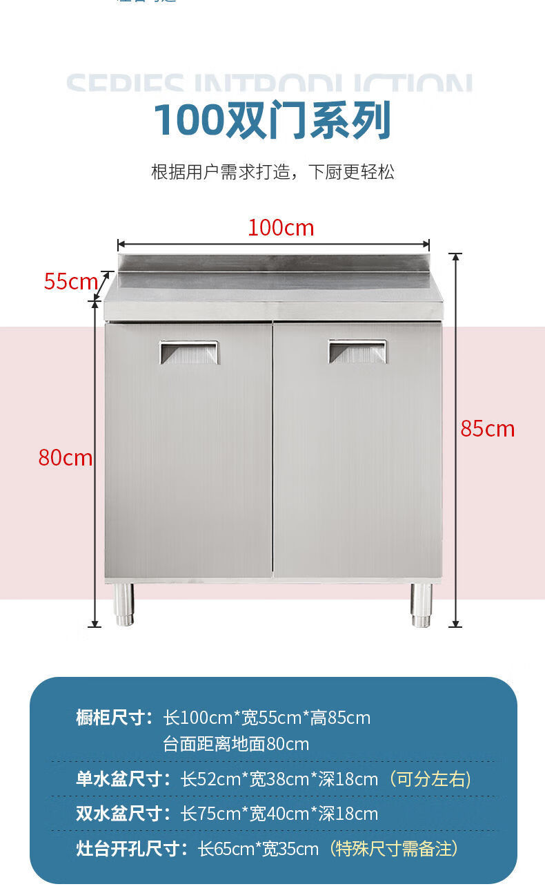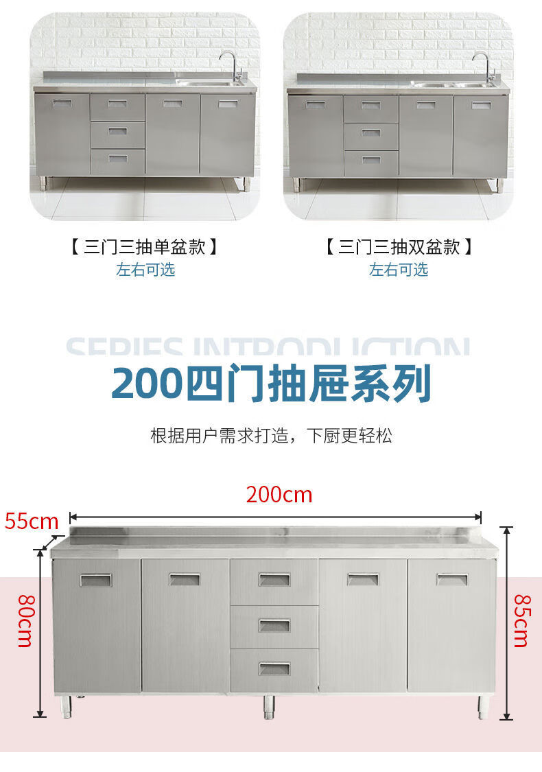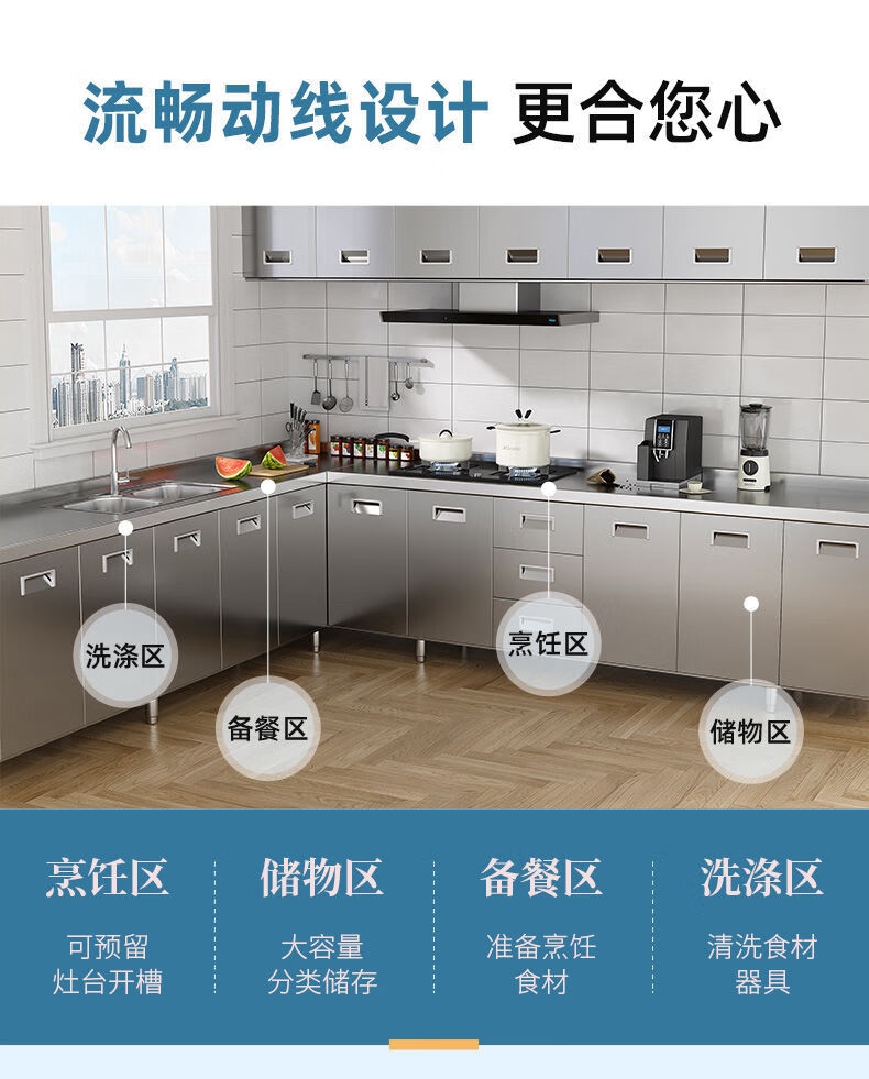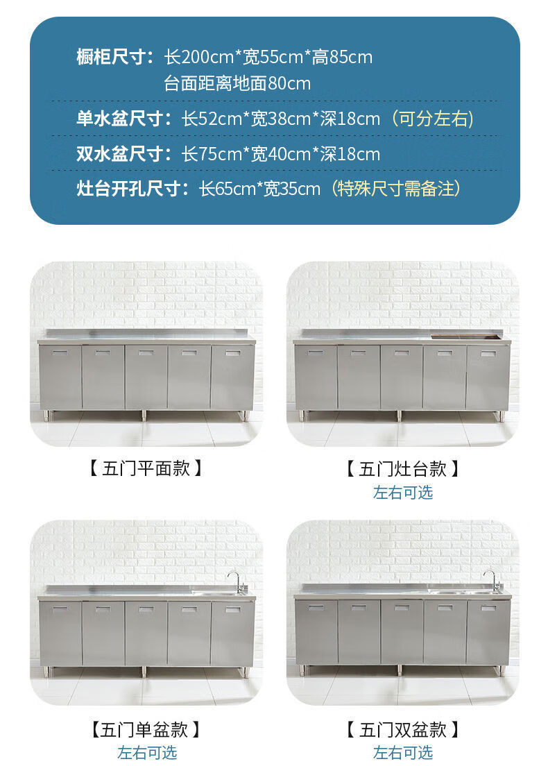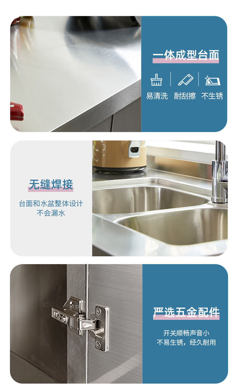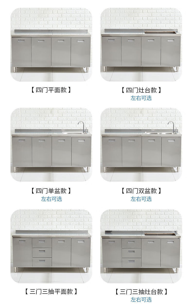 FANCYCHIC304 overall stainless steel kitchen cabinet simple stove integrated rural storage cupboard household small apartment 304 stainless steel thickened version 80cm double door flat version