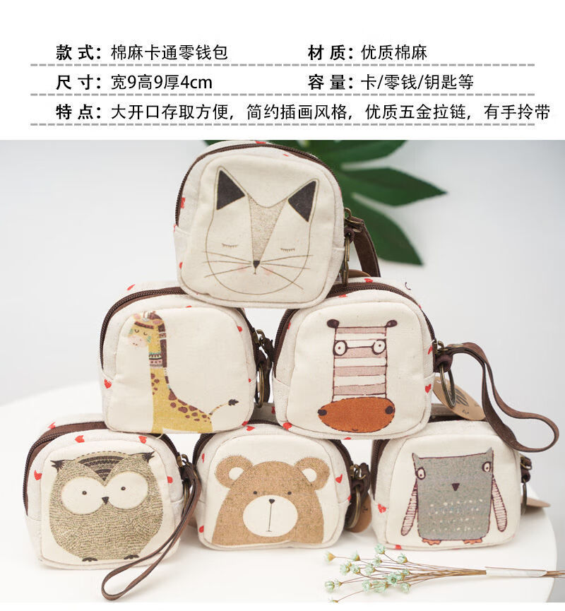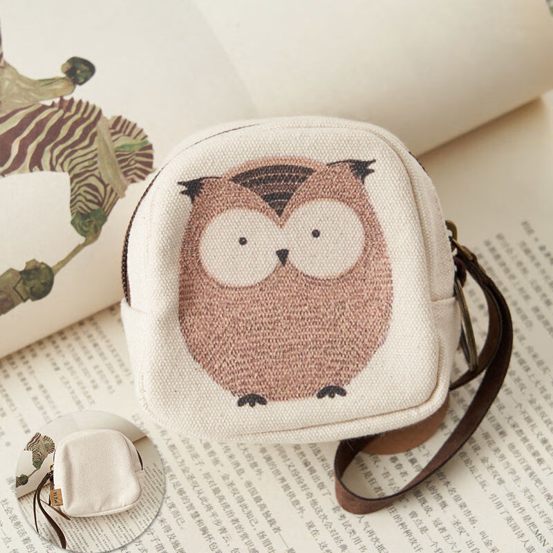 Ye Yunv small retro canvas wallet illustration style coin bag simple coin bag Owl
