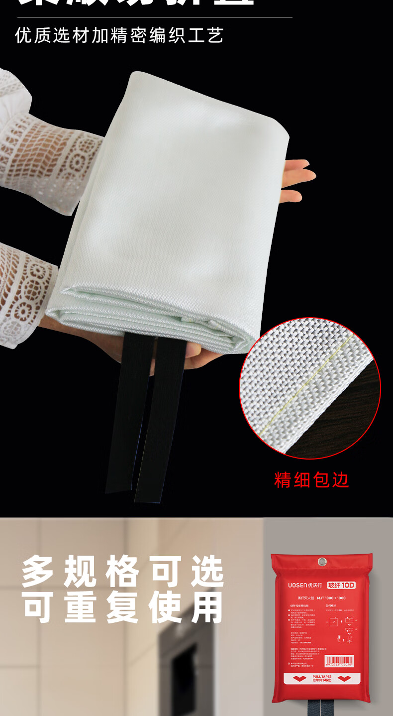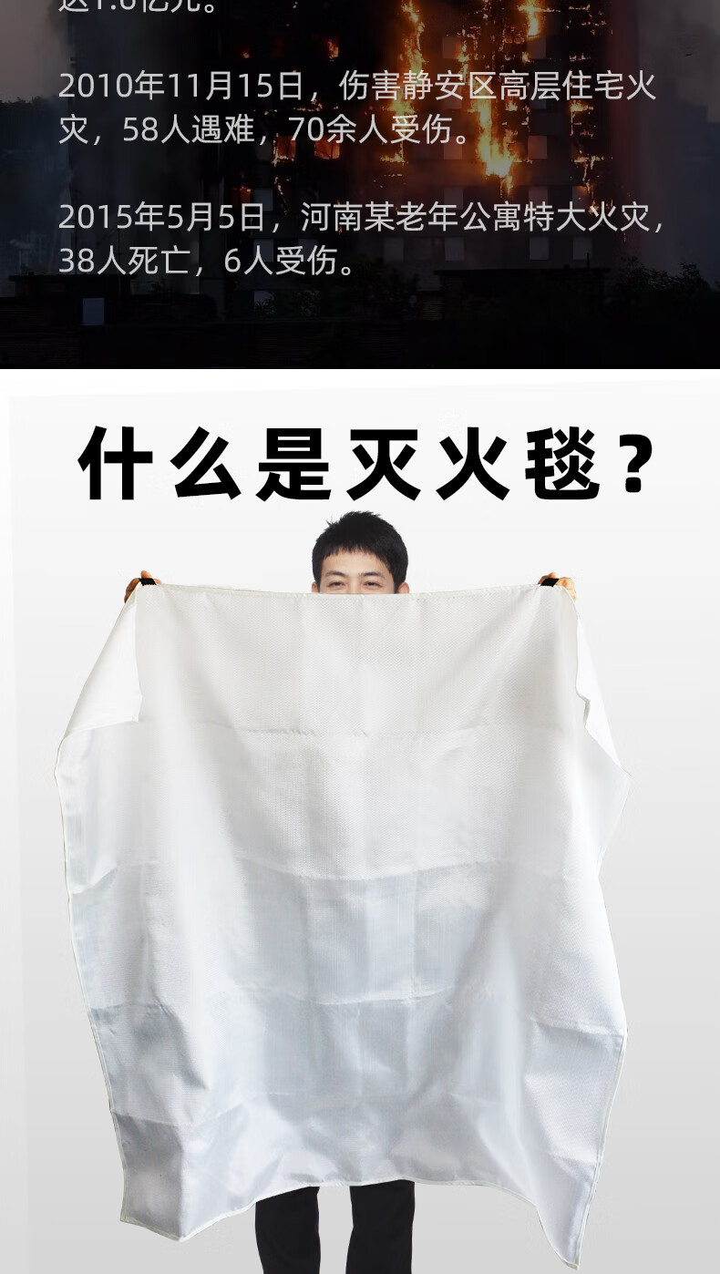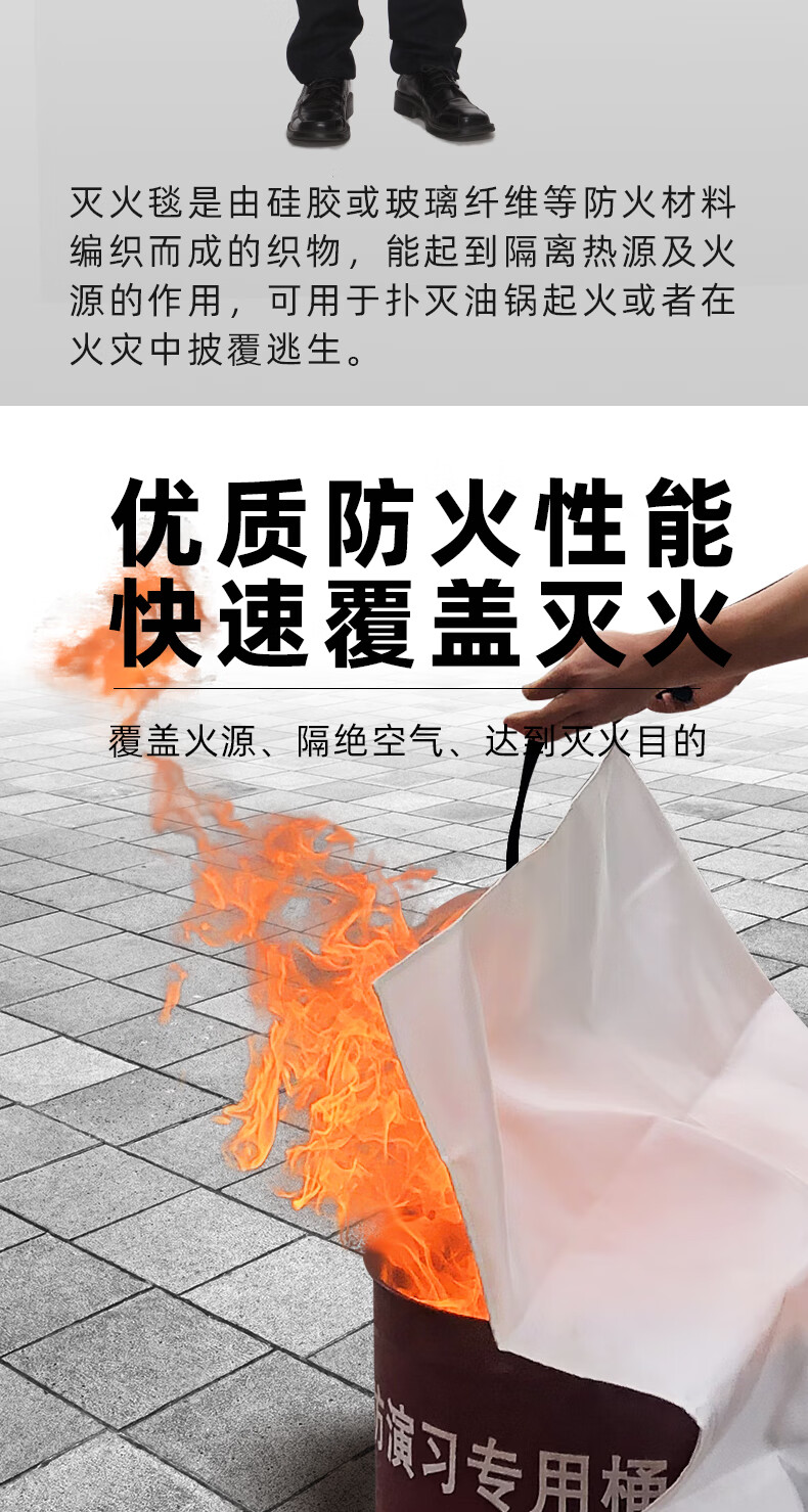 Special fire-extinguishing blanket for hotel fire protection, home commercial kitchen fiberglass fire-proof blanket, national standard fire-fighting equipment set, fiberglass fire-extinguishing blanket 1.2 meters * 1.2 meters __ free gloves and hooks