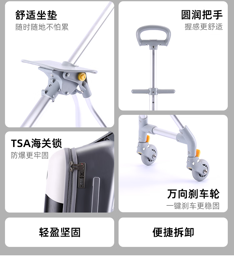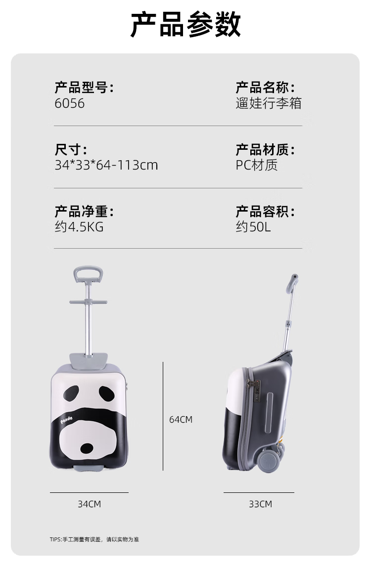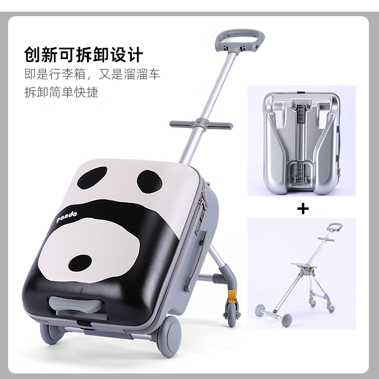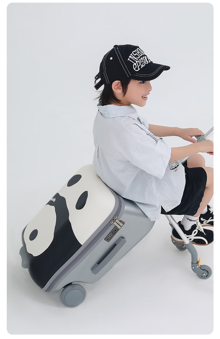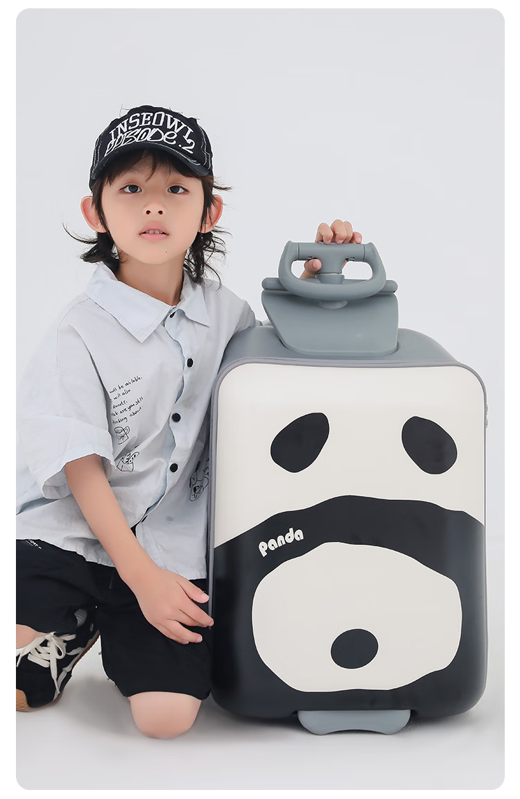 POINT KID children's suitcase that can sit and ride, boy and girl walking box, trolley box, balance car, baby cartoon suitcase, cartoon panda 20 inches