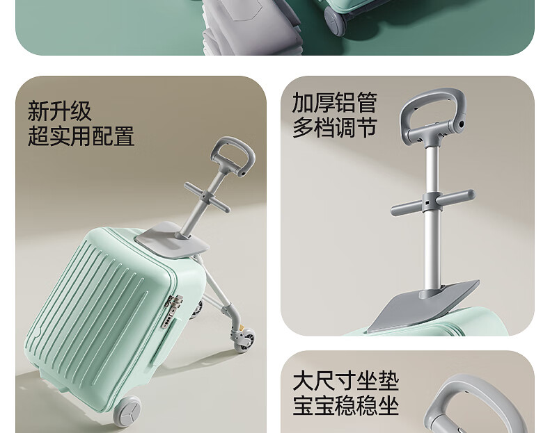 POINT KID children's stroller suitcase, sit and ride suitcase, 20-inch trolley suitcase, boys and girls boarding suitcase, pink 20 inches