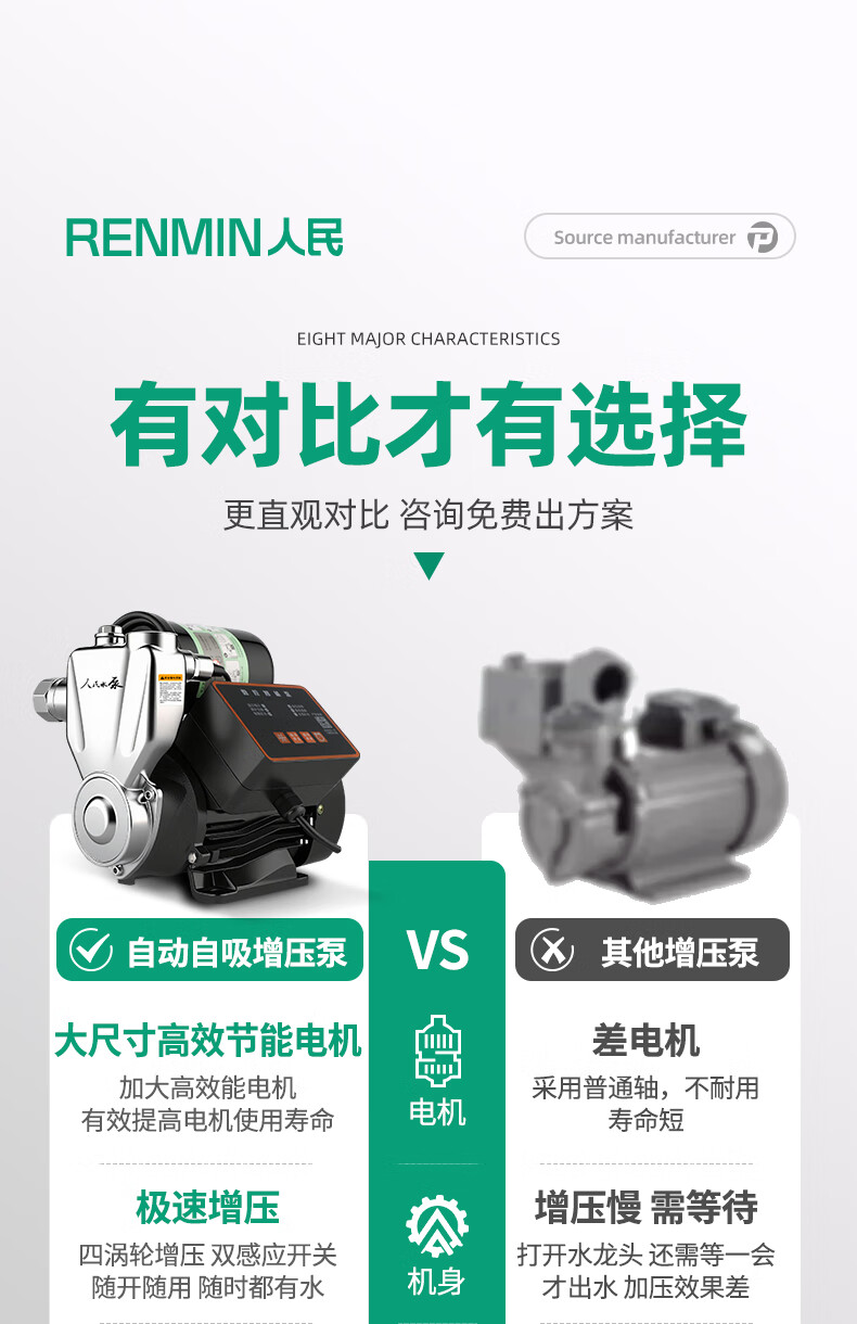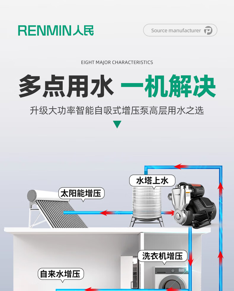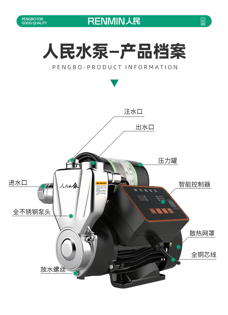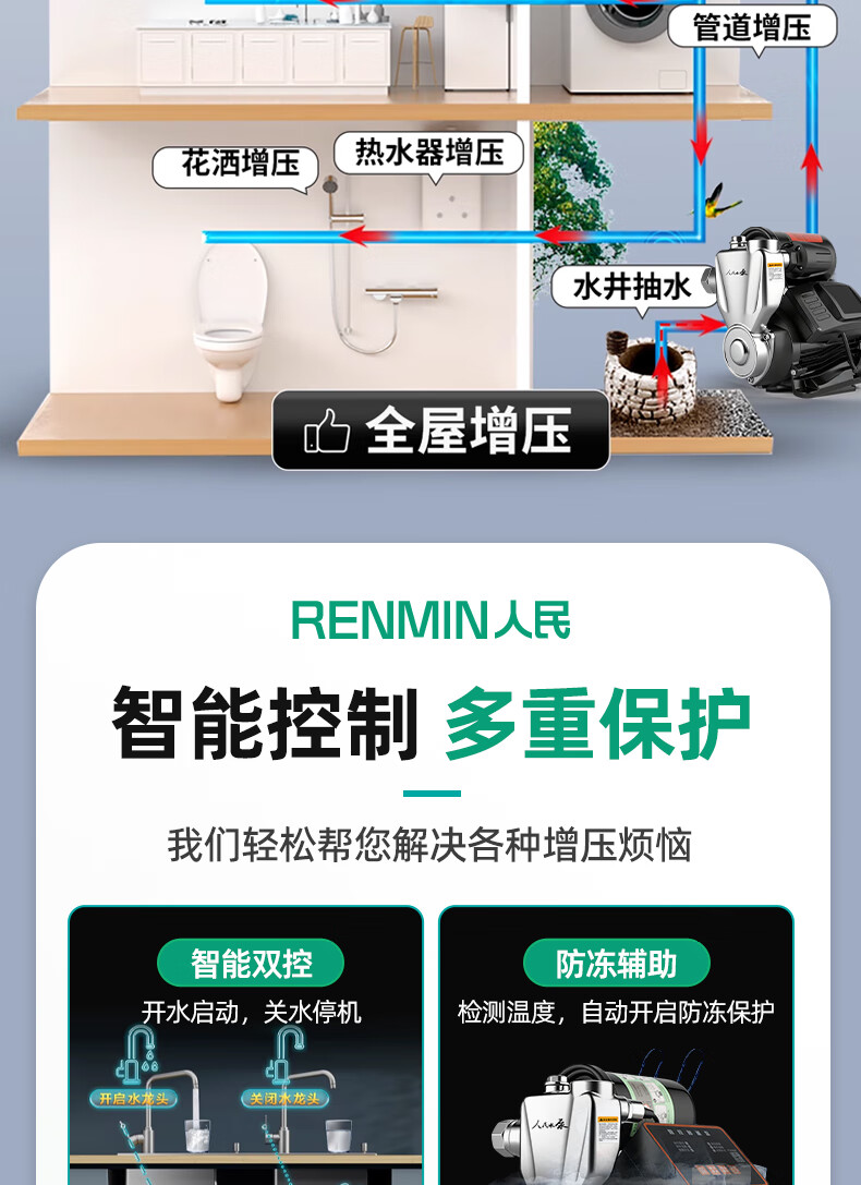 Kechuang People's Water Pump People's Booster Pump Self-priming Pump Household Fully Automatic Tap Water Pump Water Heater Shower Booster Pump 2025 High Efficiency Version 370w Fully Automatic Digital Display Model