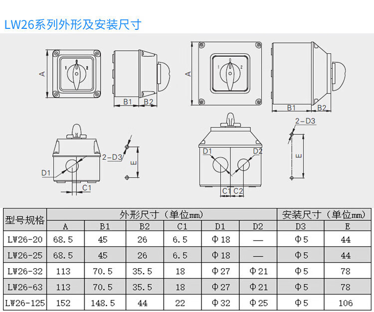 11 Maintenance load isolation switch box outdoor waterproof LW42 rotating power cutoff LW26 transfer switch LW42-20A LW26-20A
