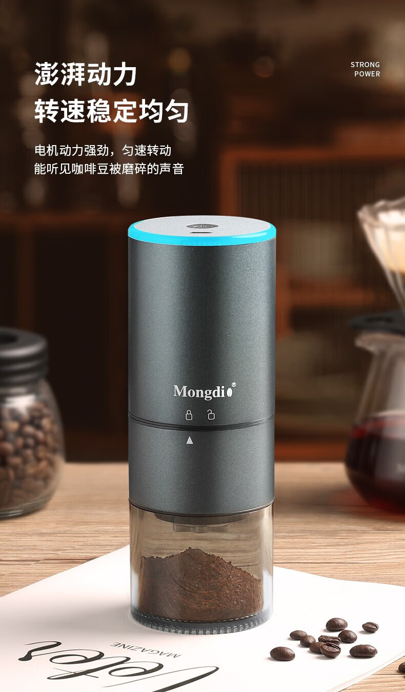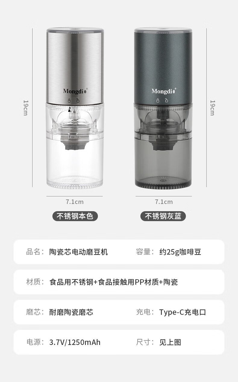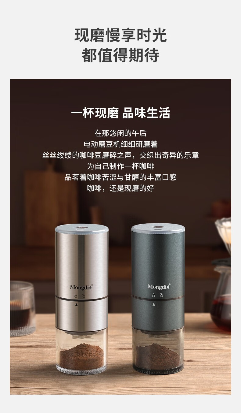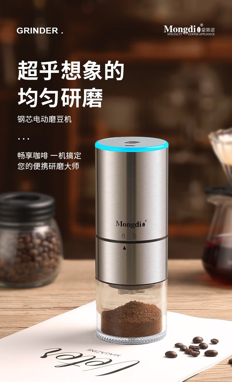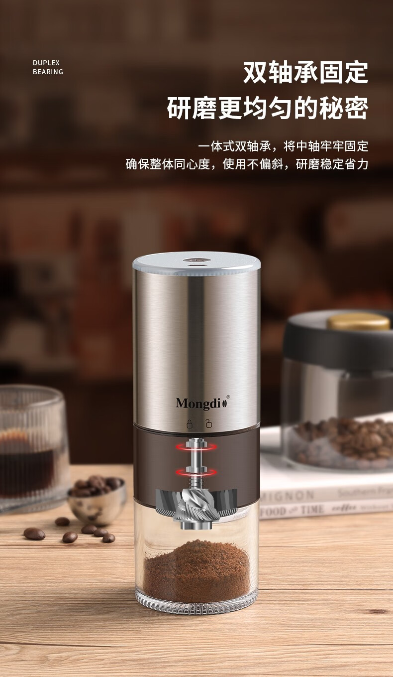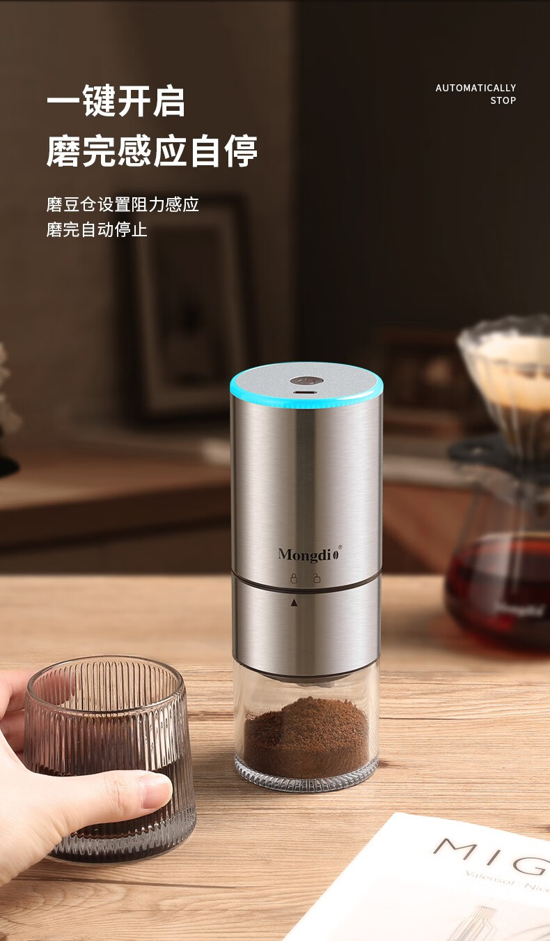 Mongdio electric coffee grinder fully automatic grinder rechargeable stainless steel color - steel core (double shaft)