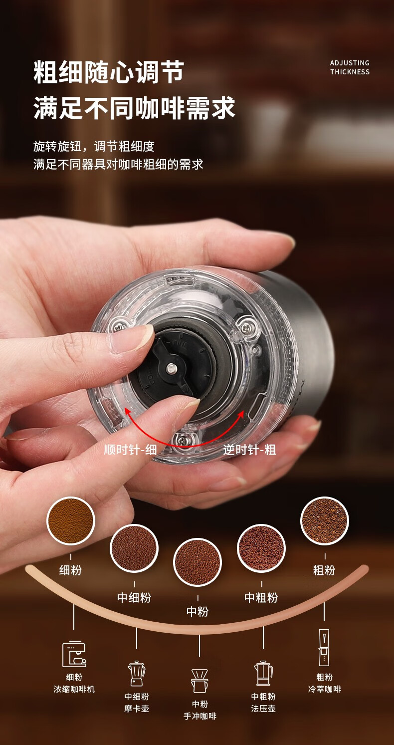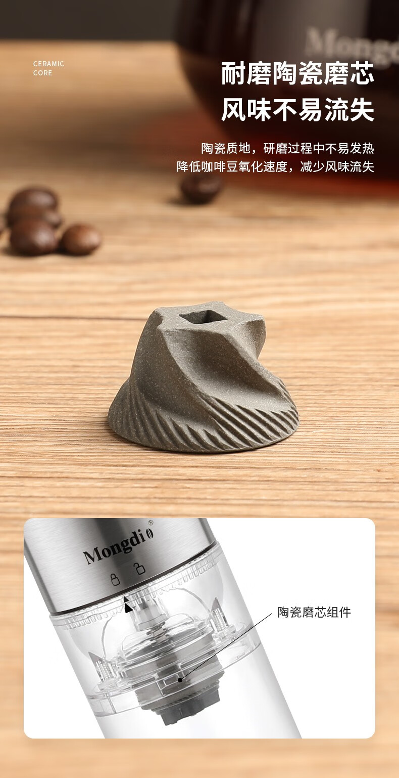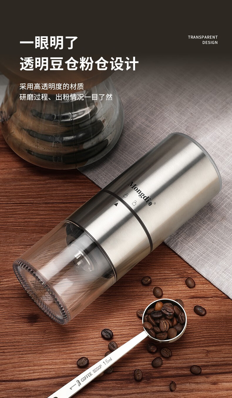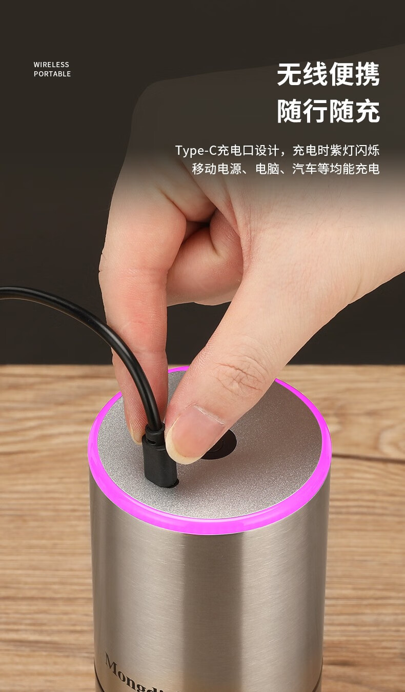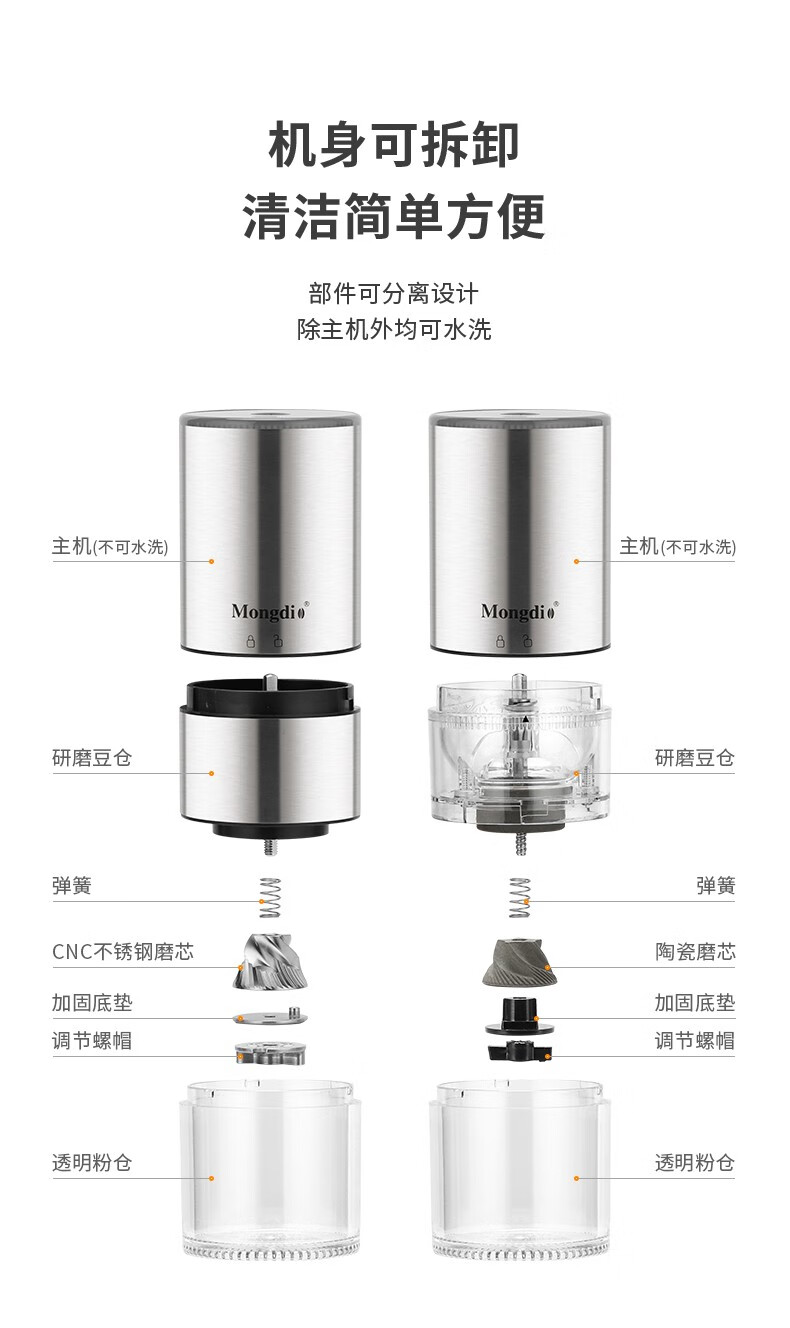 Mongdio electric coffee grinder fully automatic grinder rechargeable stainless steel color - steel core (double shaft)