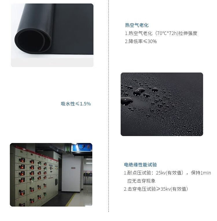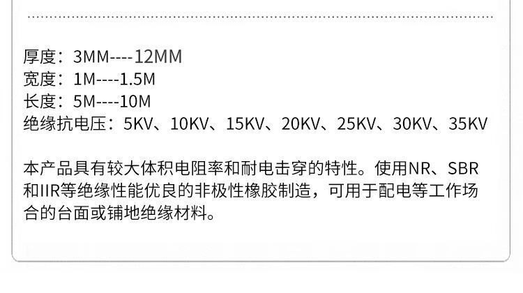 Rubber pad shock-absorbing pad insulation 10kv black rubber plate thickened flat floor mat high voltage distribution room insulation pad black 3mm thick 1 meter wide 1 meter long