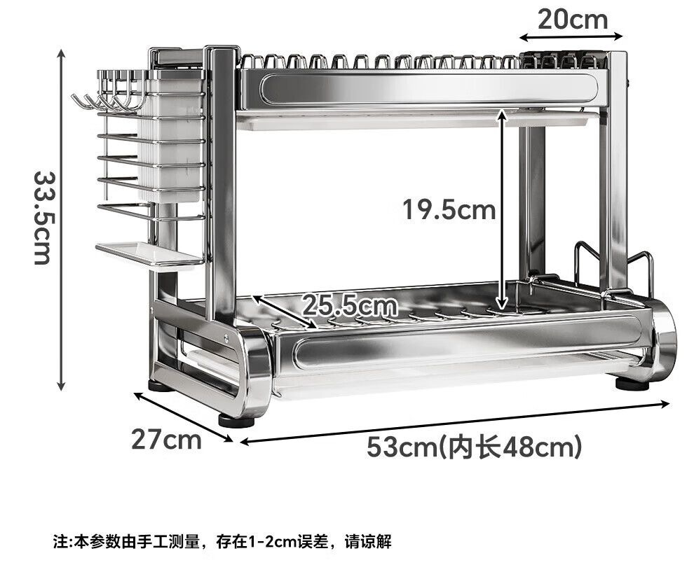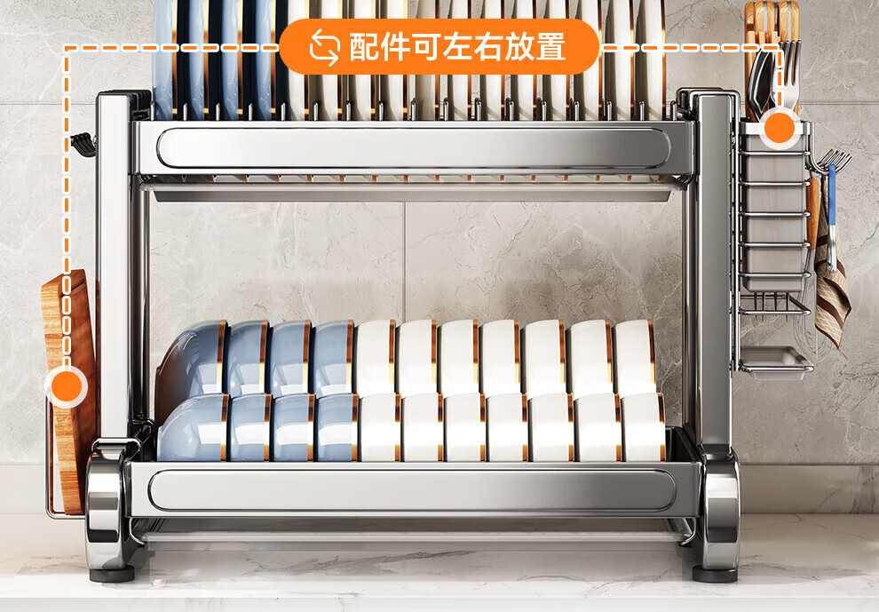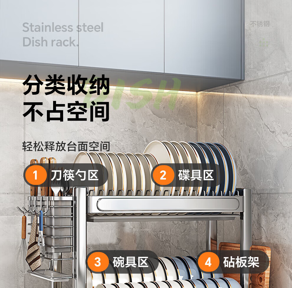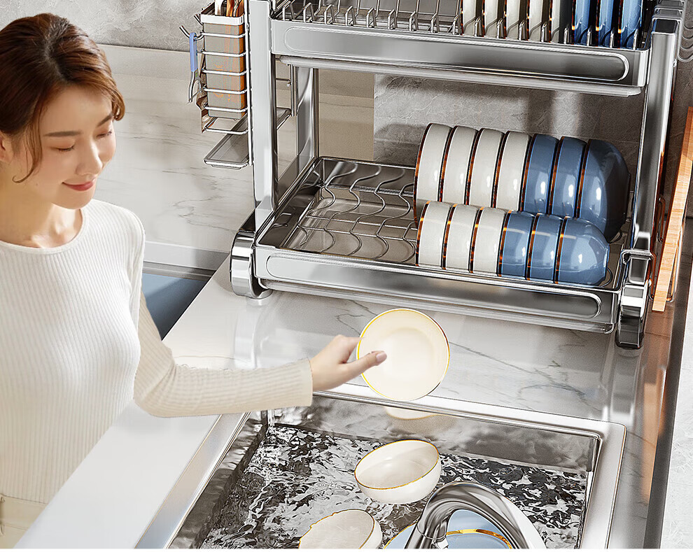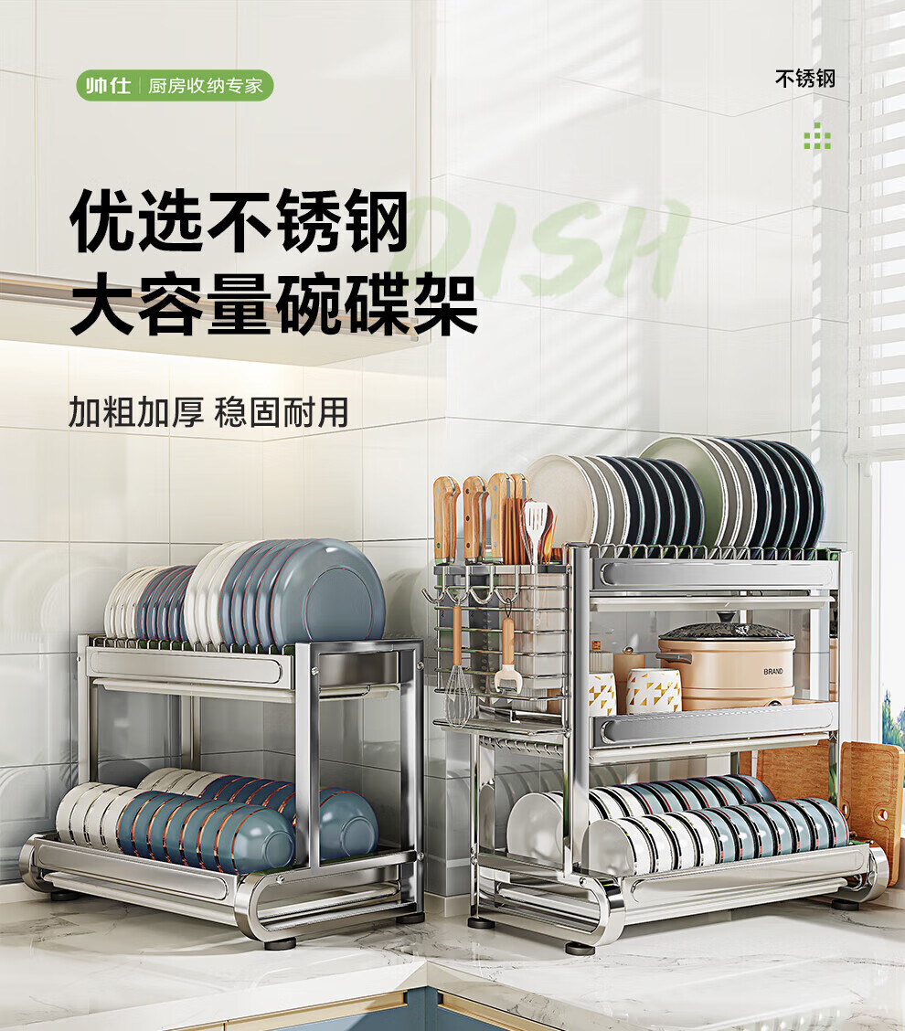 Shuaishi stainless steel drain bowl rack multi-functional kitchen rack to store dishes 201 stainless steel 2 layers 43 long complete set