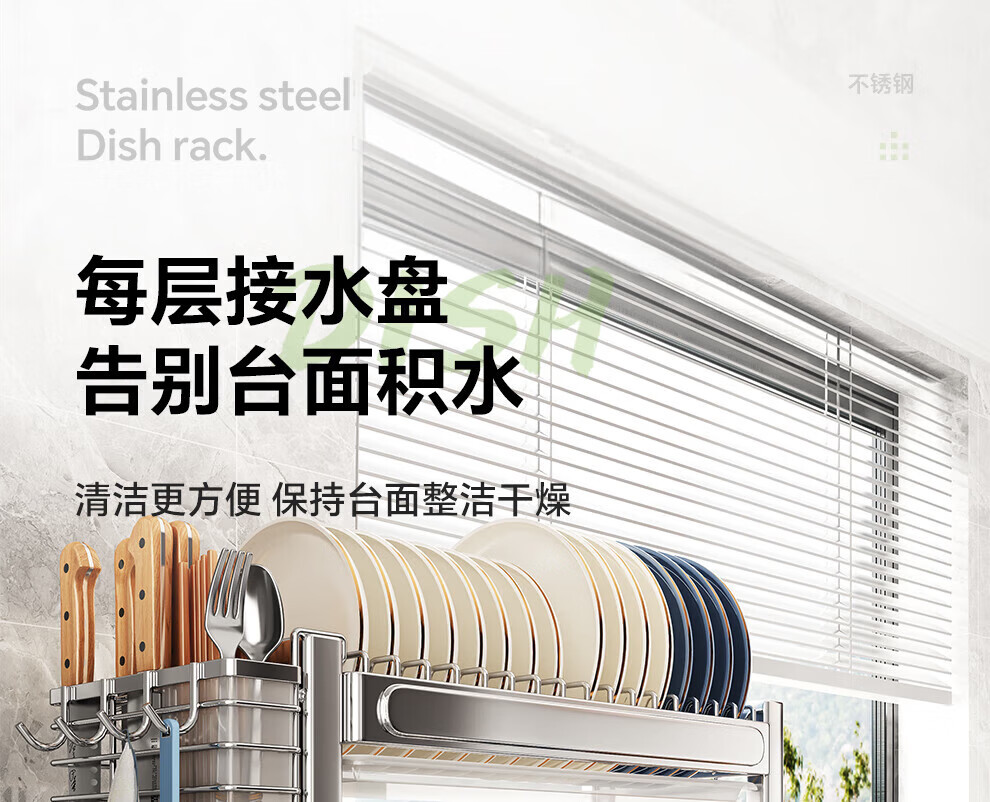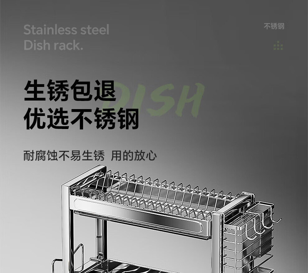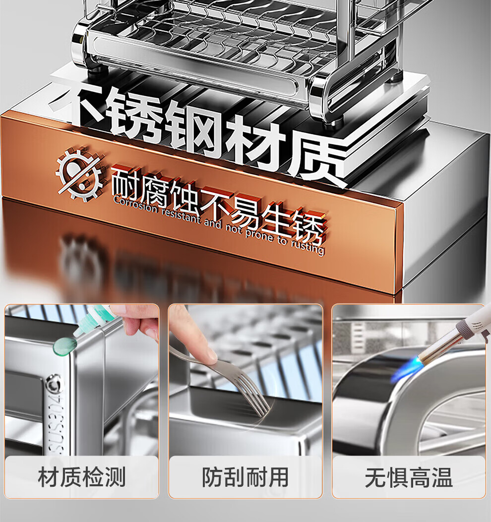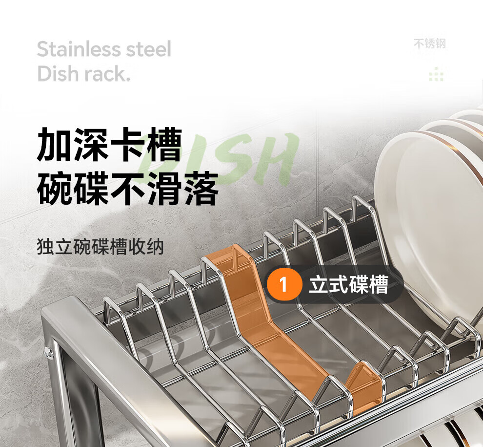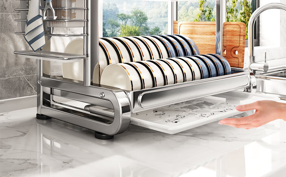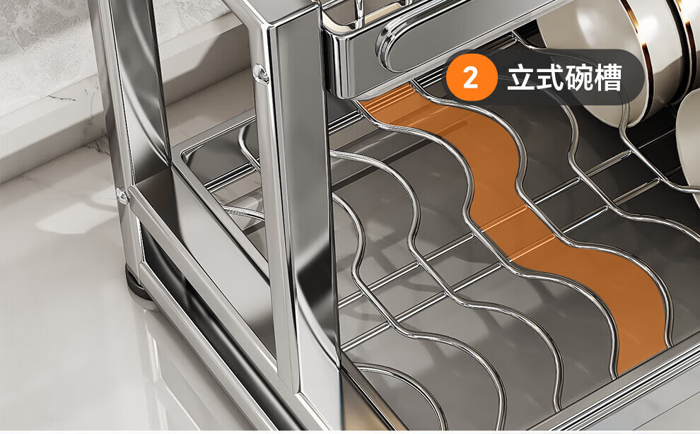 Shuaishi stainless steel drain bowl rack multi-functional kitchen rack to store dishes 201 stainless steel 2 layers 43 long complete set