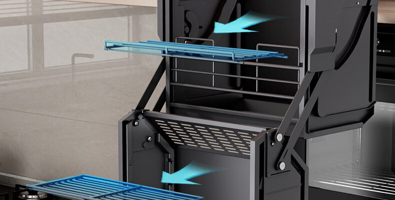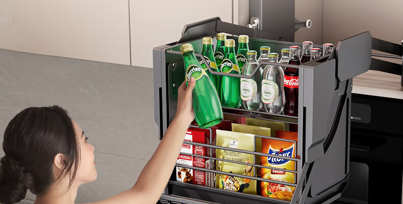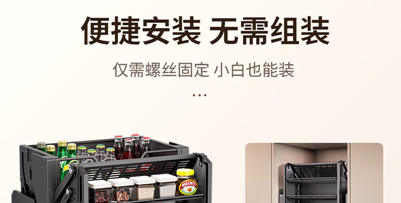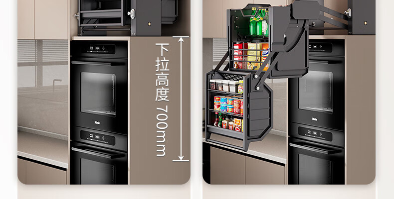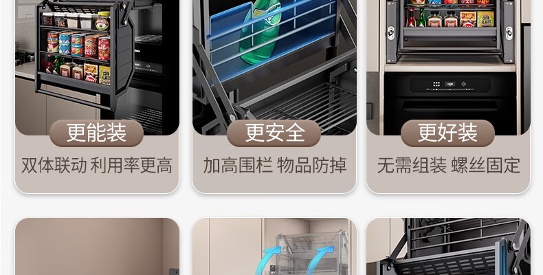 Renjuyi wall cabinet lifting basket kitchen cabinet storage rack refrigerator high cabinet pull-down seasoning basket double wall cabinet linkage basket hinge precautions multi-layer pull-down type