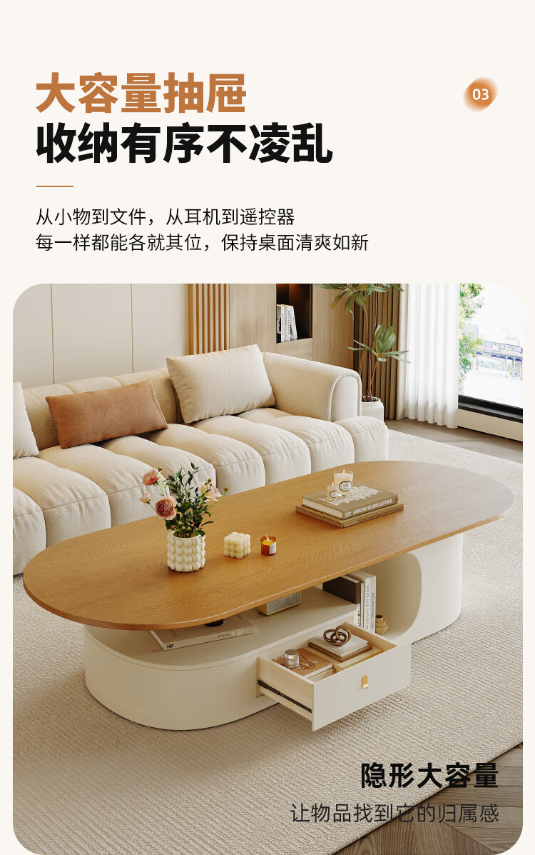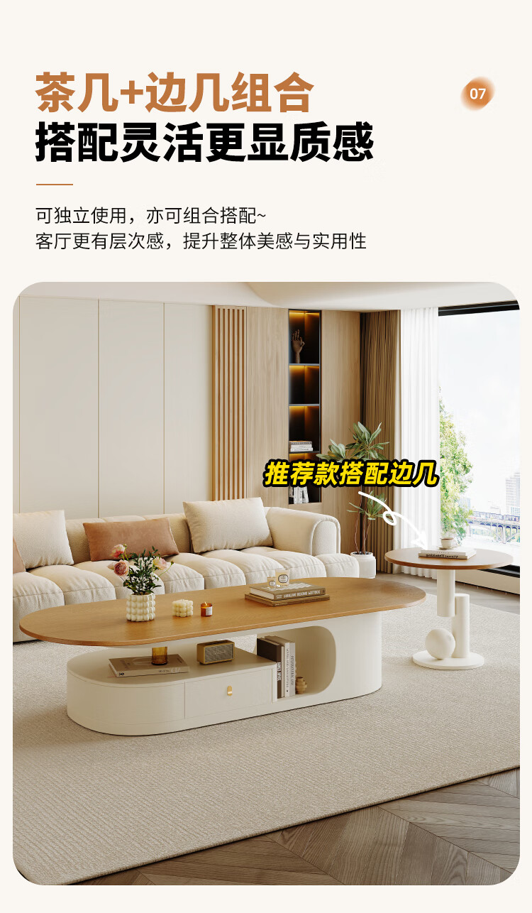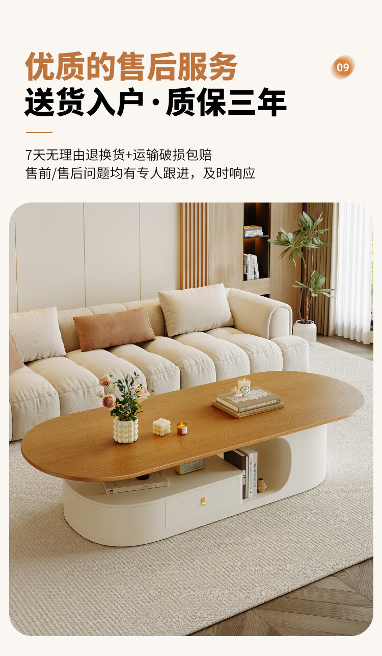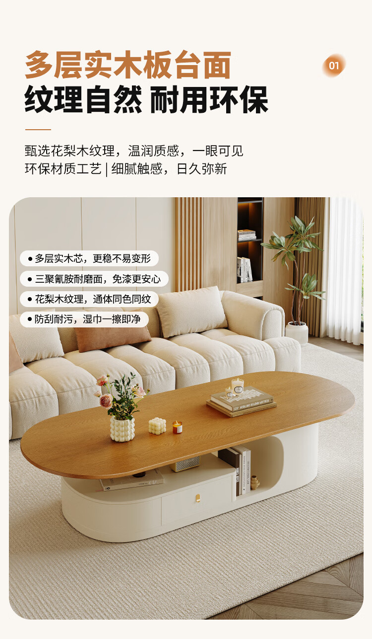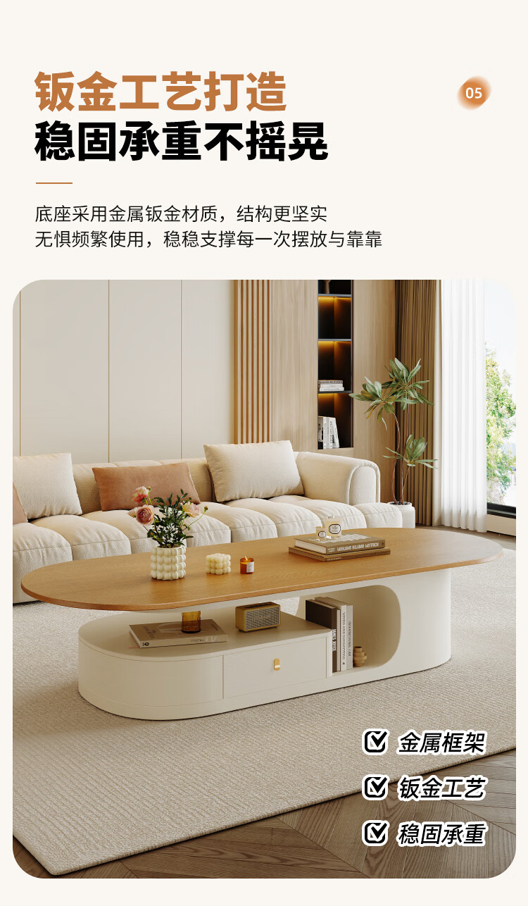 Home cream style living room solid wood coffee table small apartment home light luxury oval table tea table antique style high-end tea table solid wood countertop rosewood color oval coffee table 120*60*42cm