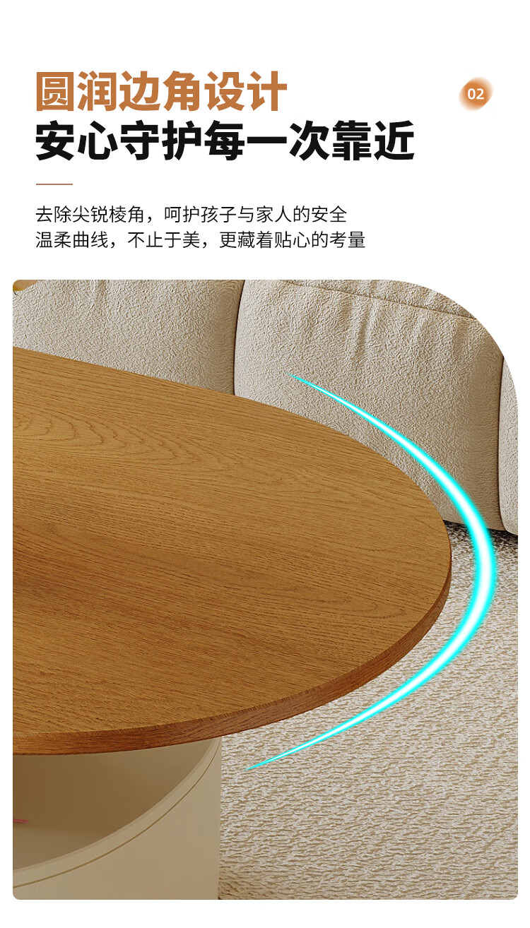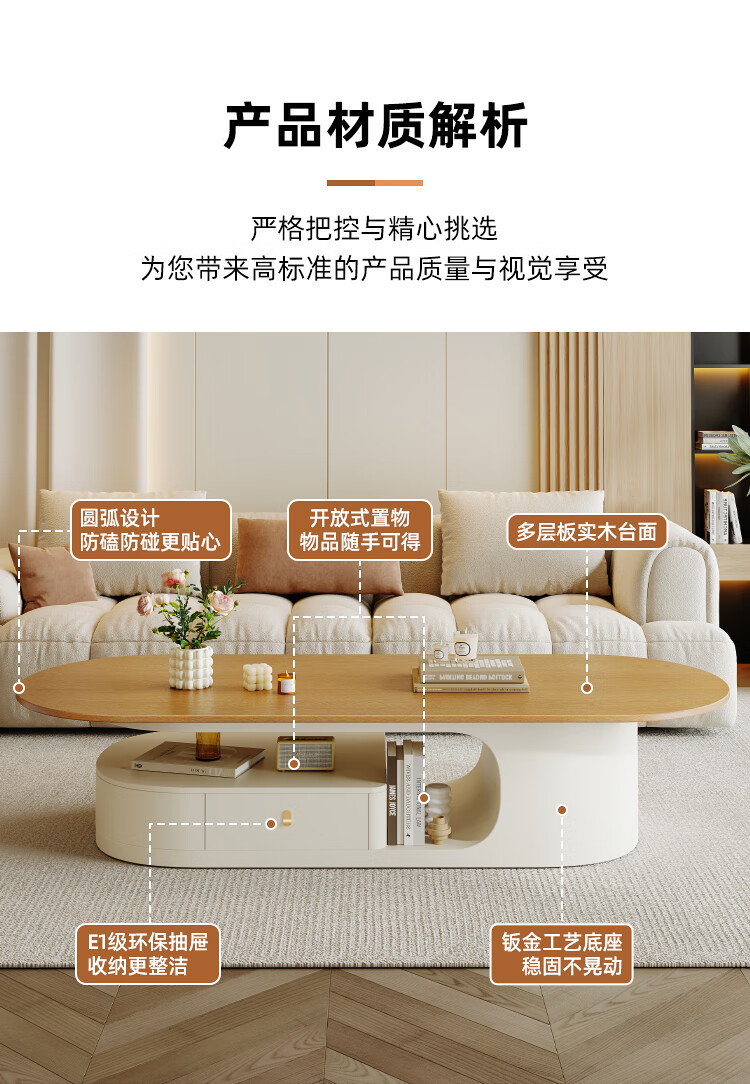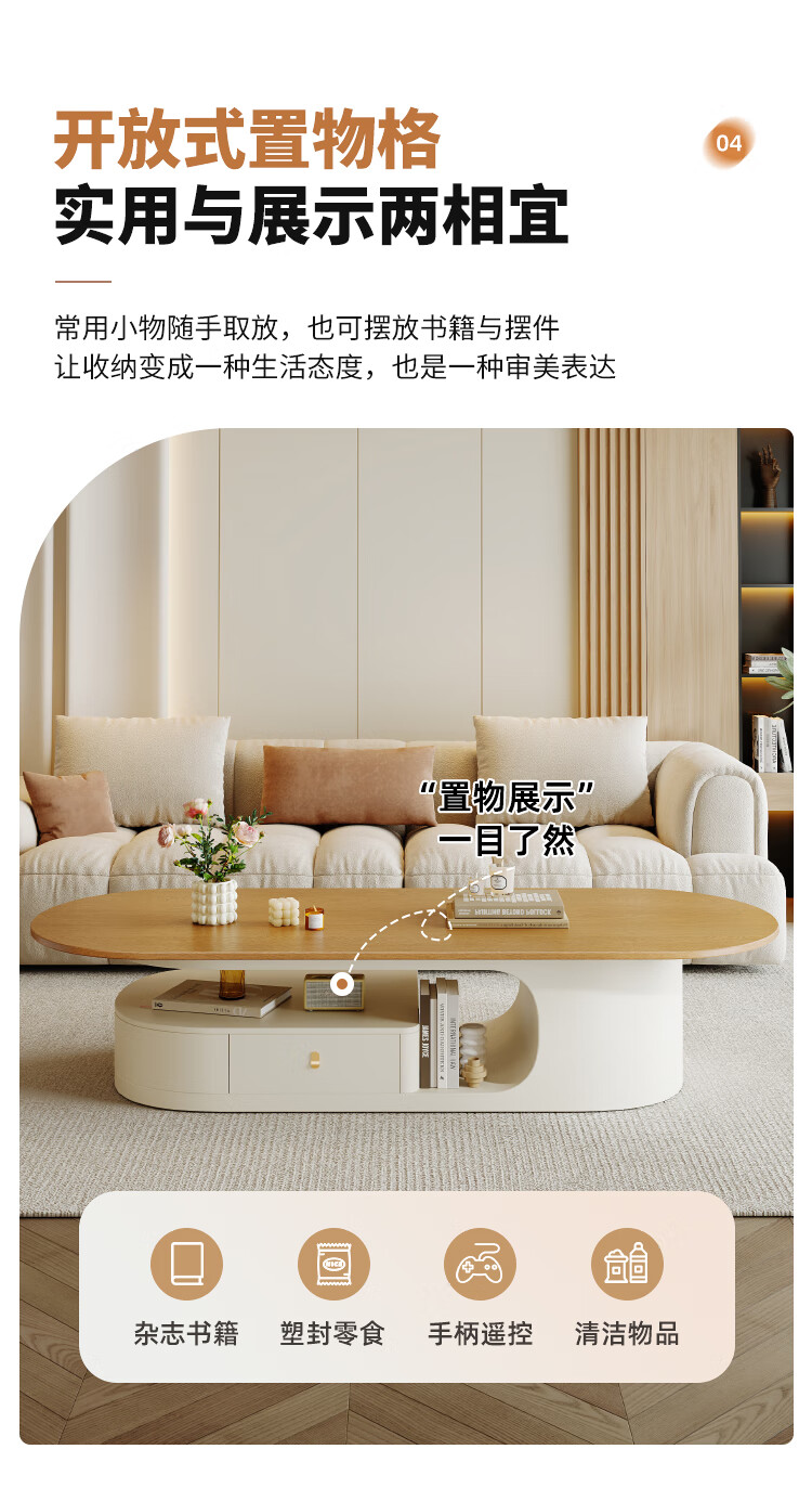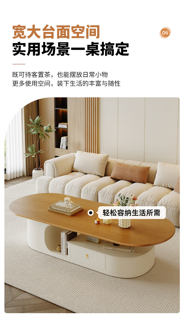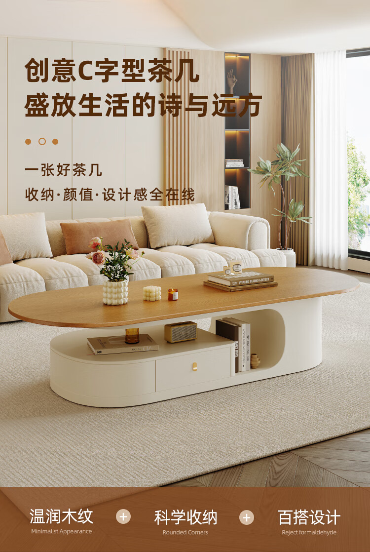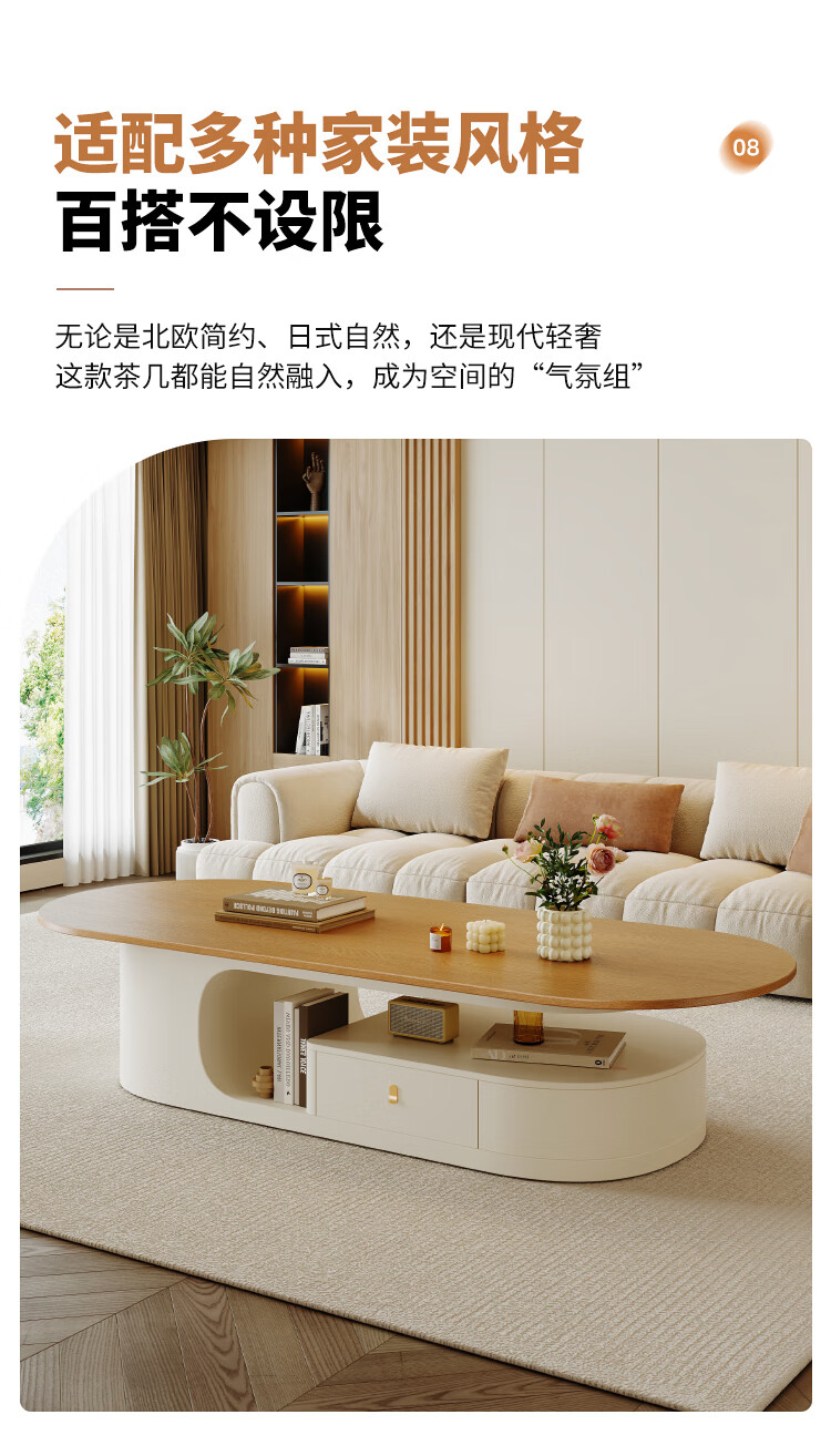 Home cream style living room solid wood coffee table small apartment home light luxury oval table tea table antique style high-end tea table solid wood countertop rosewood color oval coffee table 120*60*42cm