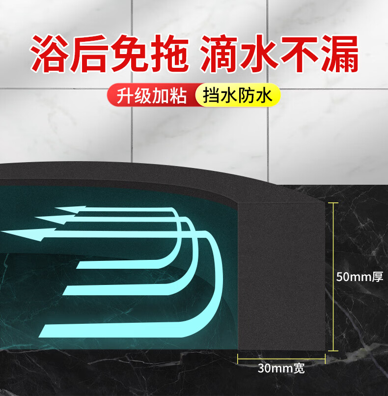 Mileqi water retaining strip bathroom heightening waterproof strip waterproof sticker bendable bathroom threshold dry and wet separation shower room water-proof self-adhesive floor barrier black high-density eva sponge strip 20MM wide * 2 meters * 10MM thick
