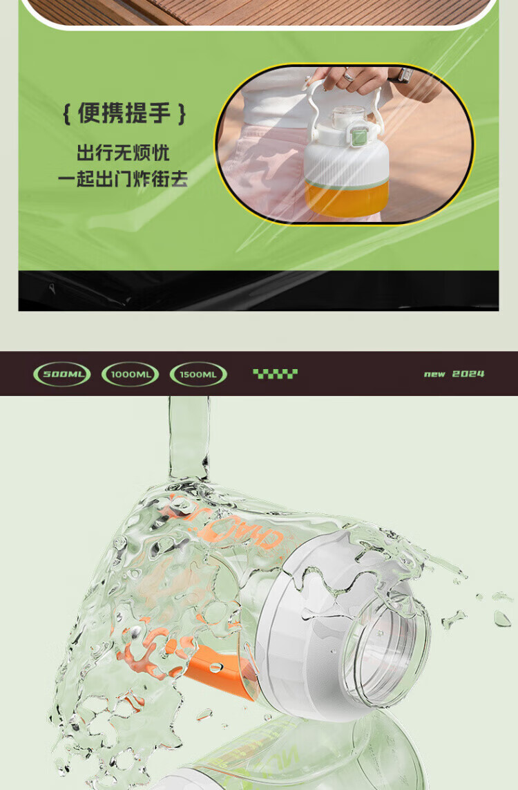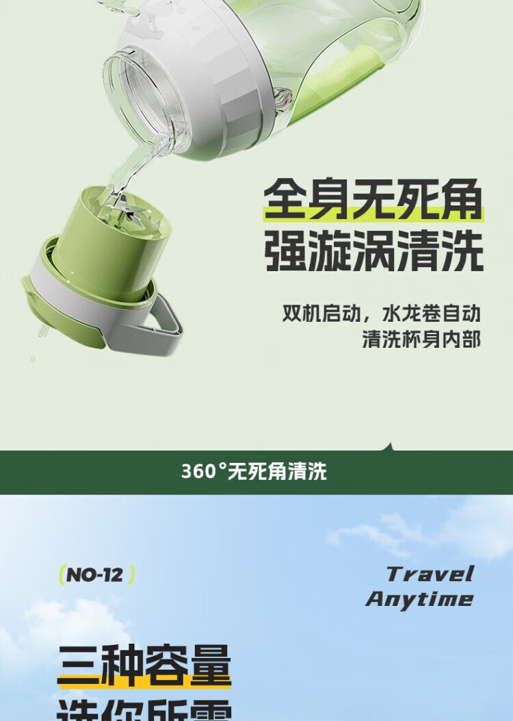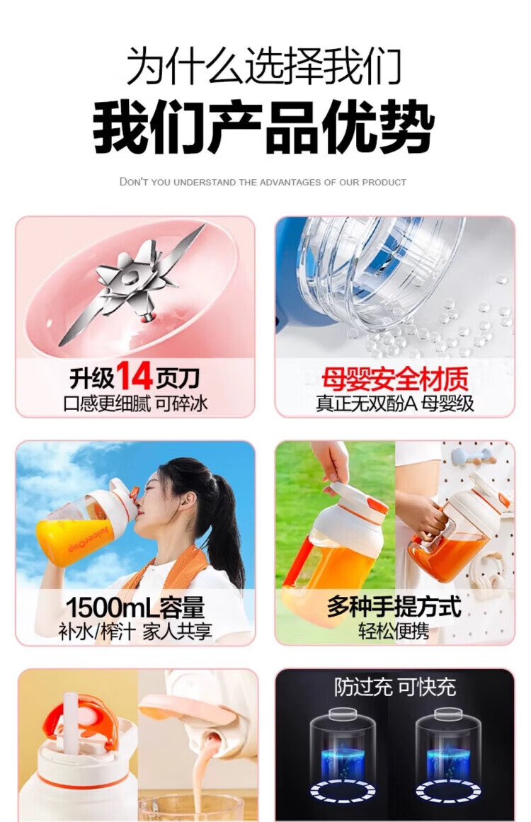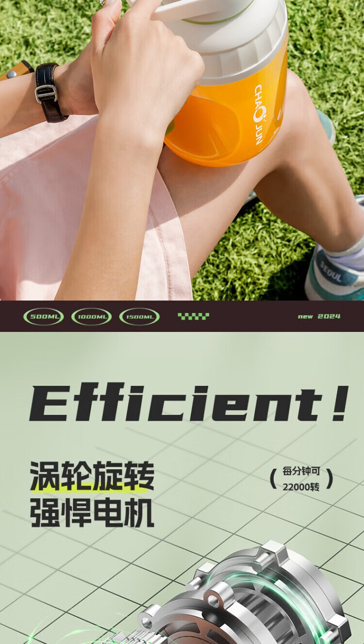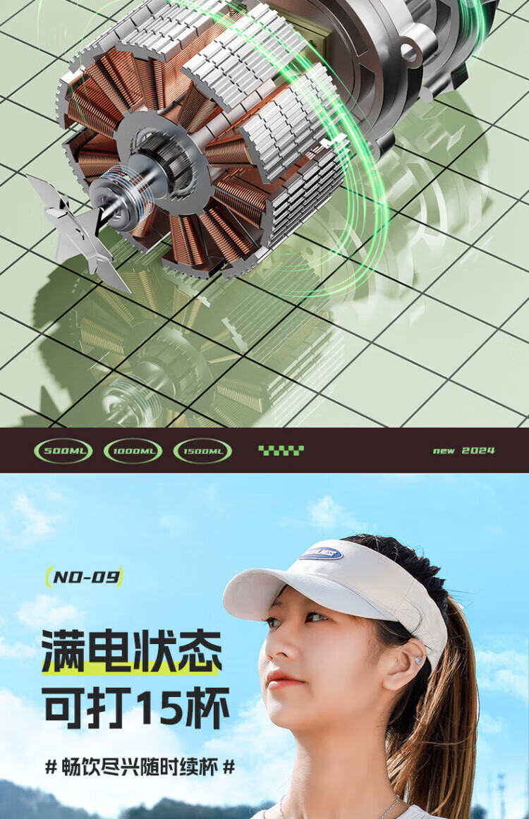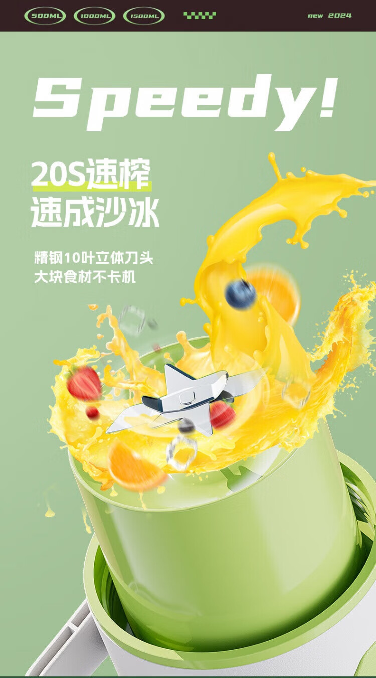 Michael Cool Germany 2025 New Wireless Juicer Portable Home Large Capacity Fully Automatic Juice Machine Ton-ton Bucket Juicing Cup Fast, Convenient and Easy to Crush Ice Fresh Green 1500ML One Cup and One Cover 14-Blade Blade