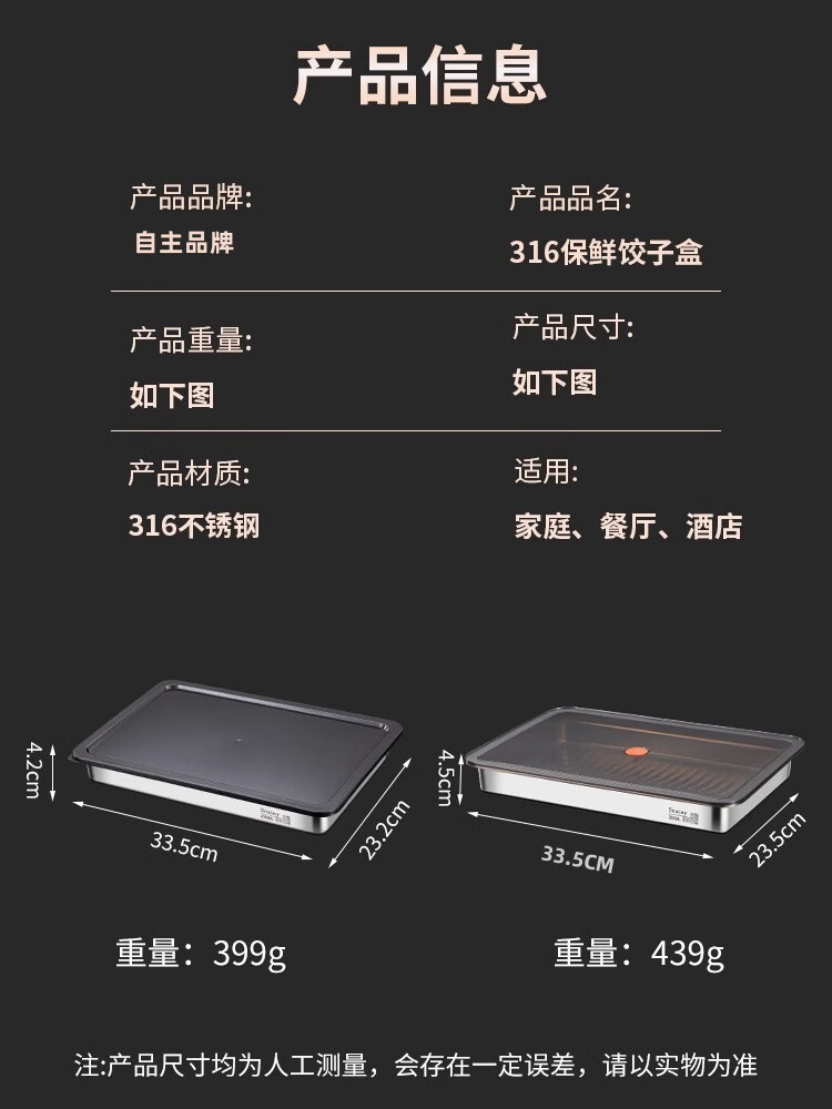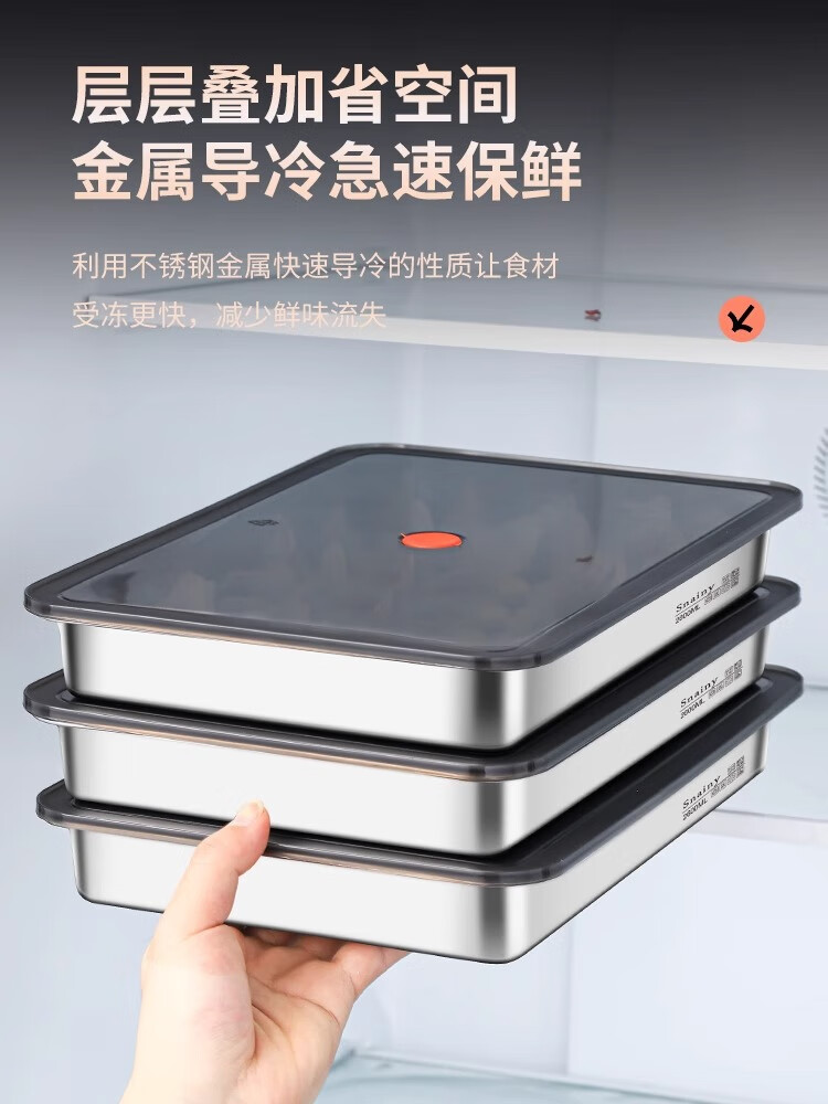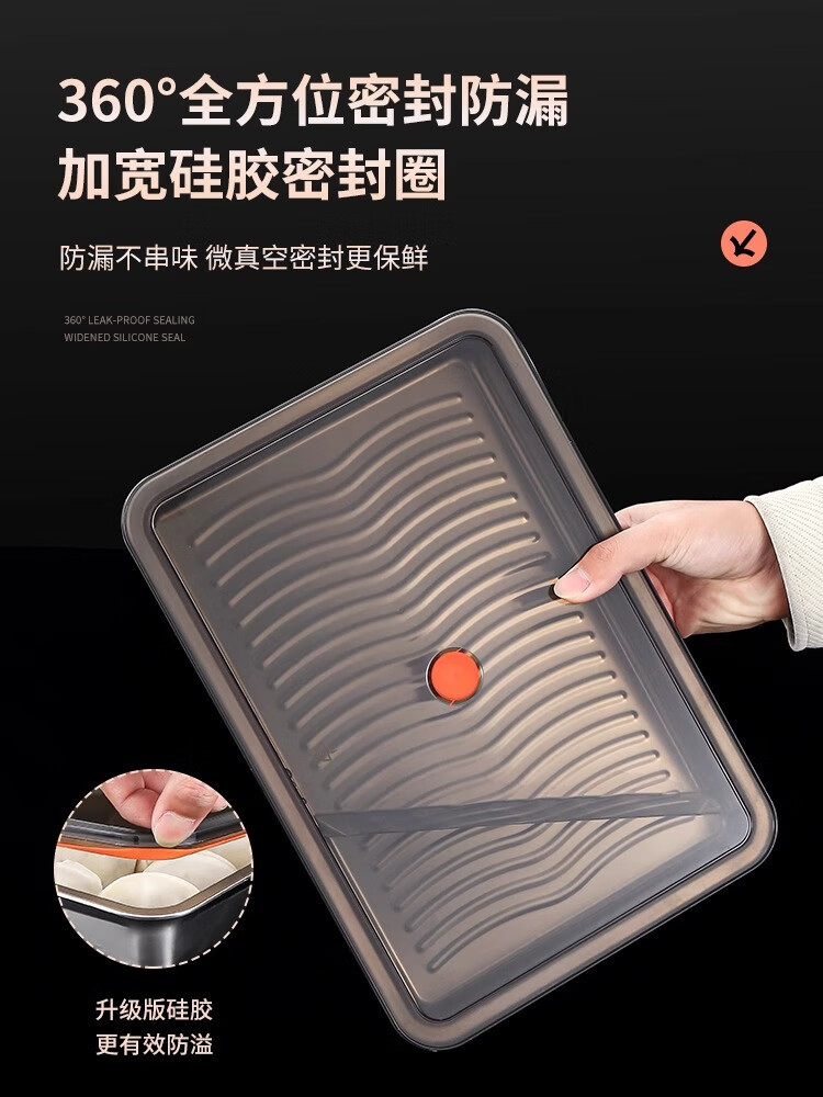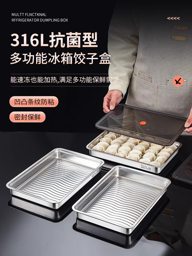 Yingtang Extra Thick 316 Dumpling Box Stainless Steel Food Grade Dumpling Preparation Tray Fresh Box Refrigerator PP Sealing Cover Freezer Box 316 Steel-Dumpling Tray Sealing Cover