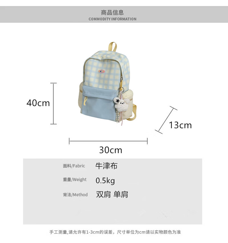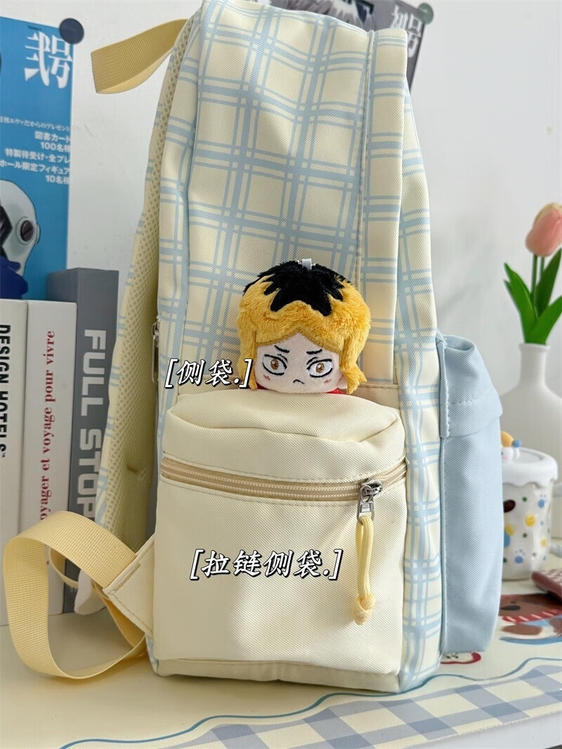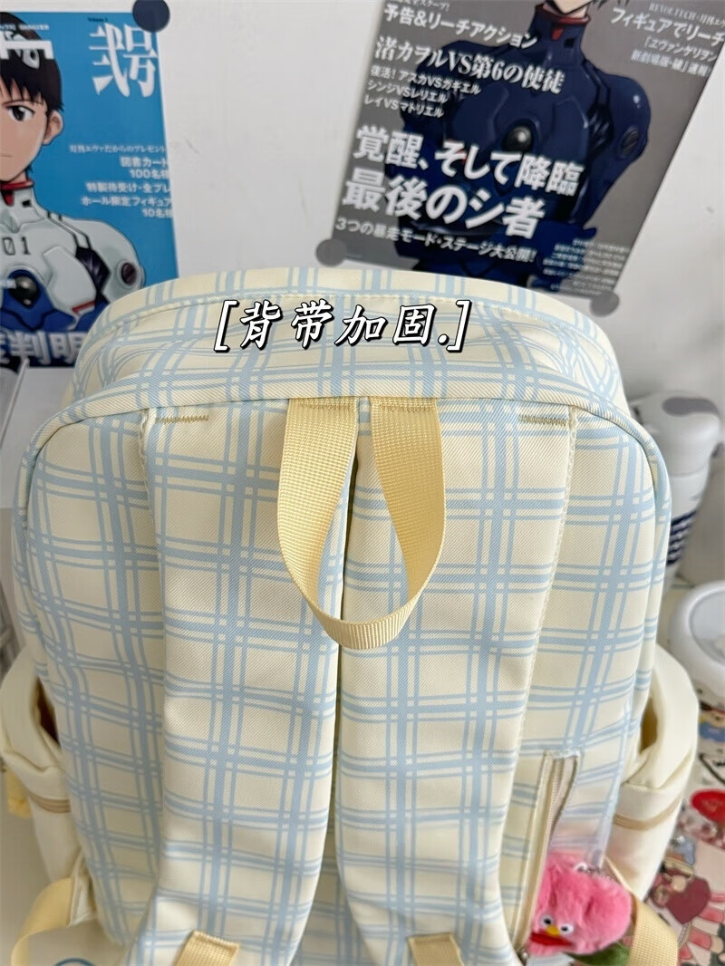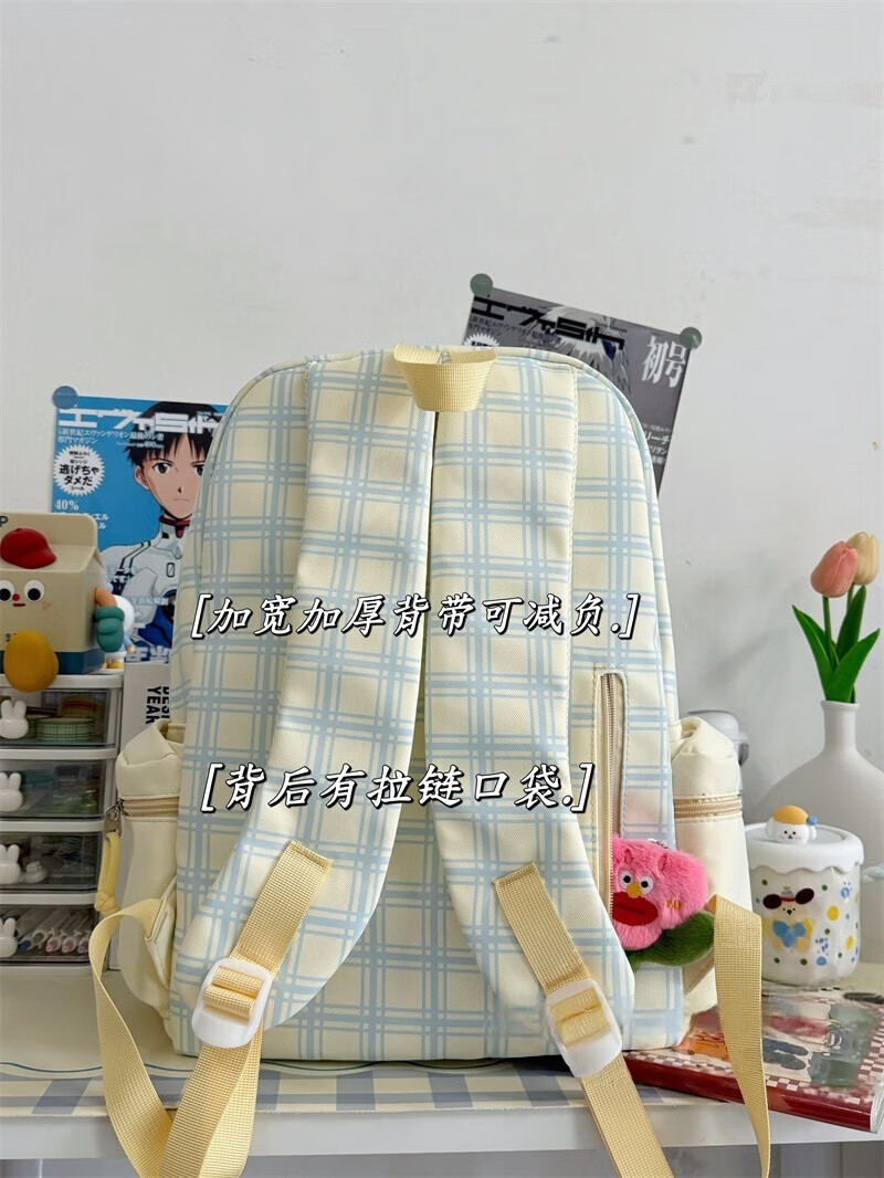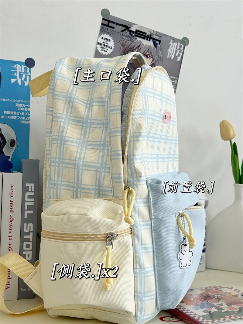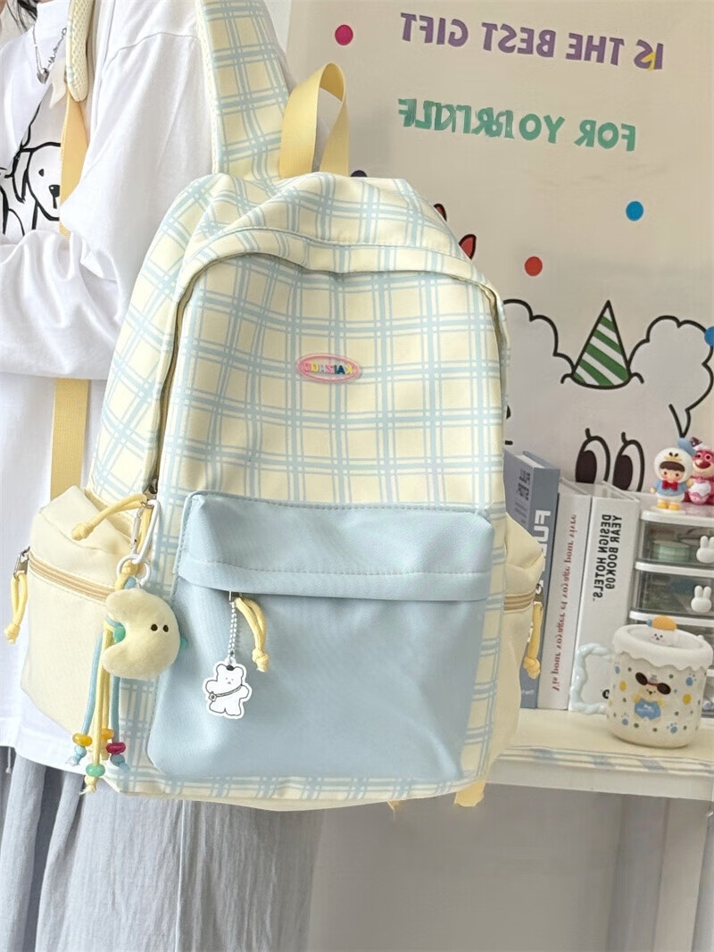 Yookdd (yookdd) schoolbag junior high school girl high-looking plaid school backpack Japanese style ins style high school student backpack blue and yellow plaid schoolbag with pendant
