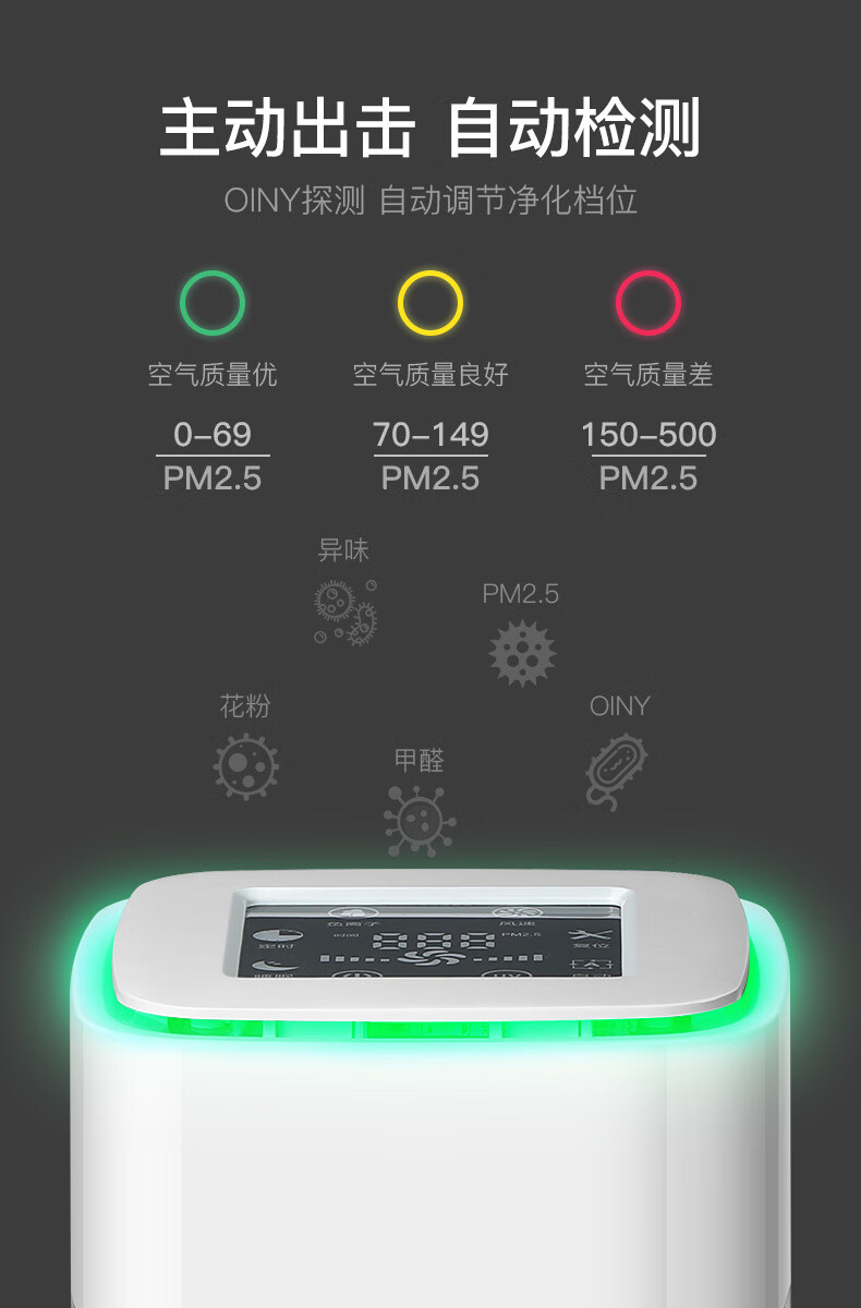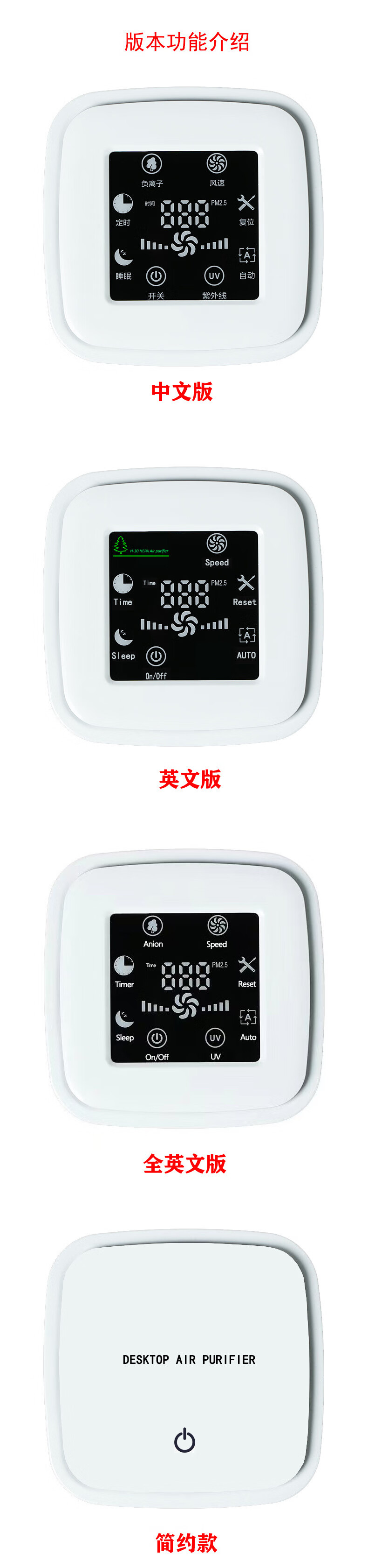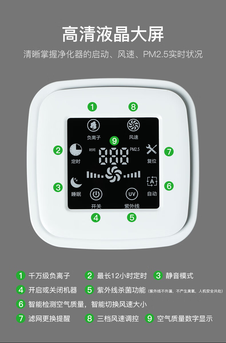 Desktop home countertop air purifier office smoke dust odor removal negative ion digital display purifier formaldehyde removal full English version