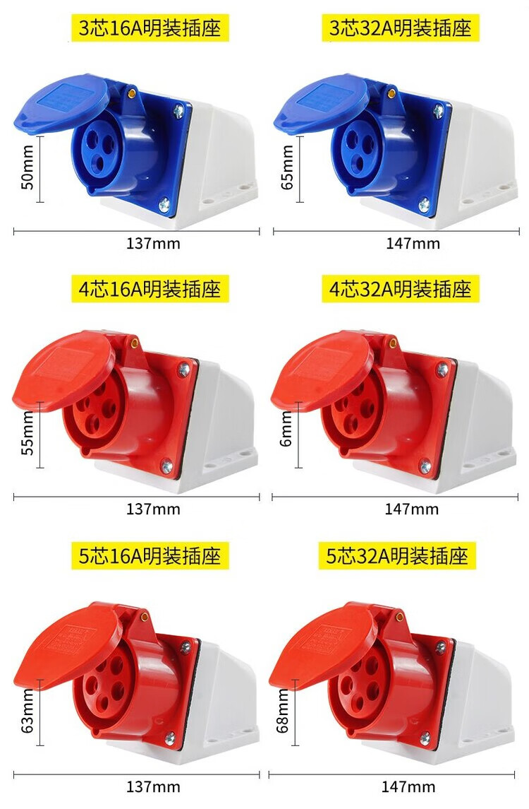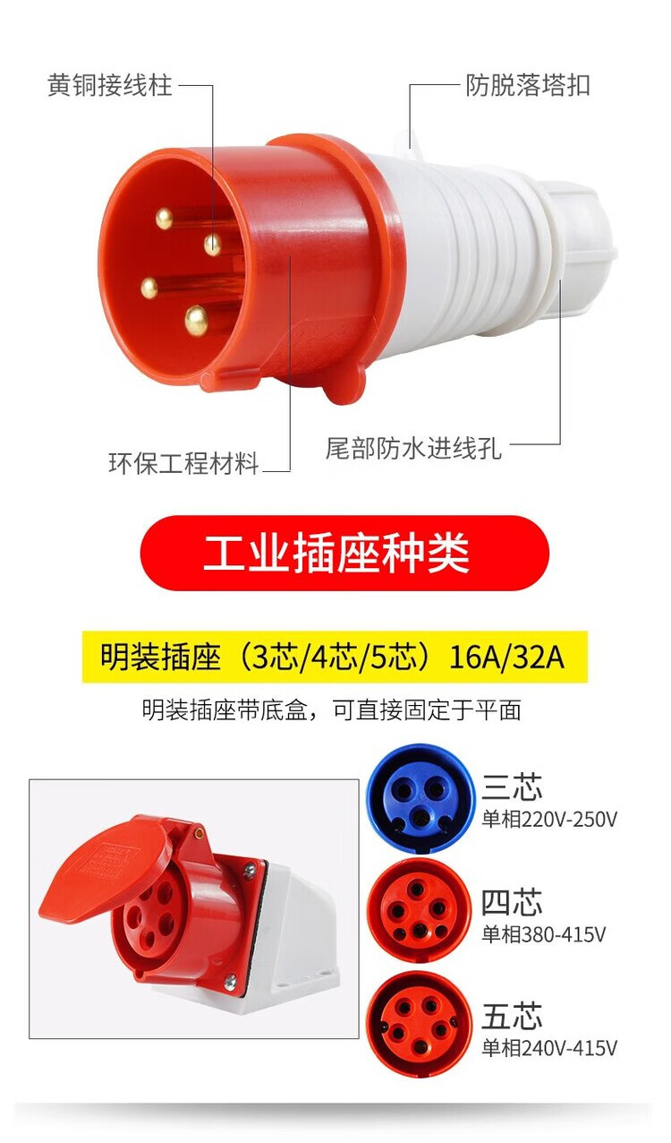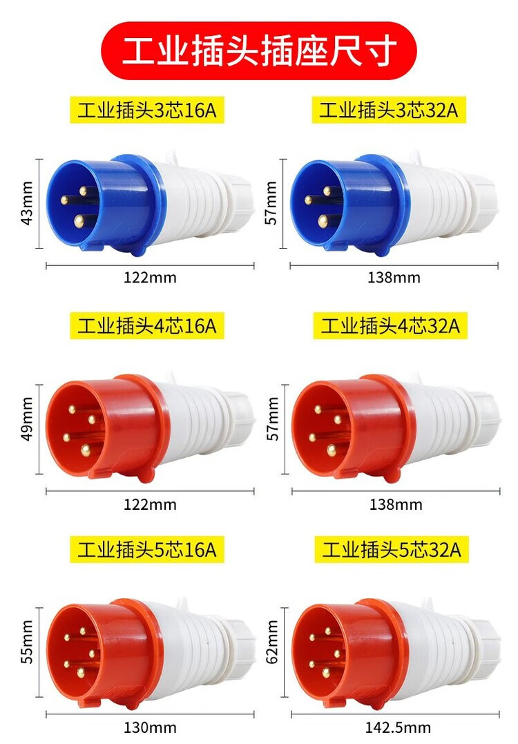Explosion-proof socket construction site special 10-pack 16A industrial aviation plug three-phase 4-core 5-hole 32A male and female connector waterproof plug (10 pieces) 3-core 16A